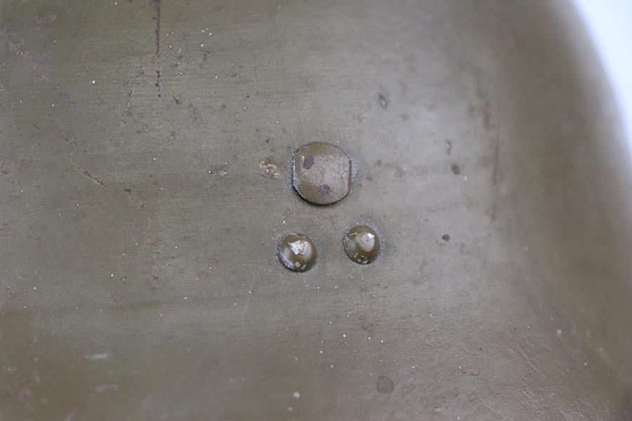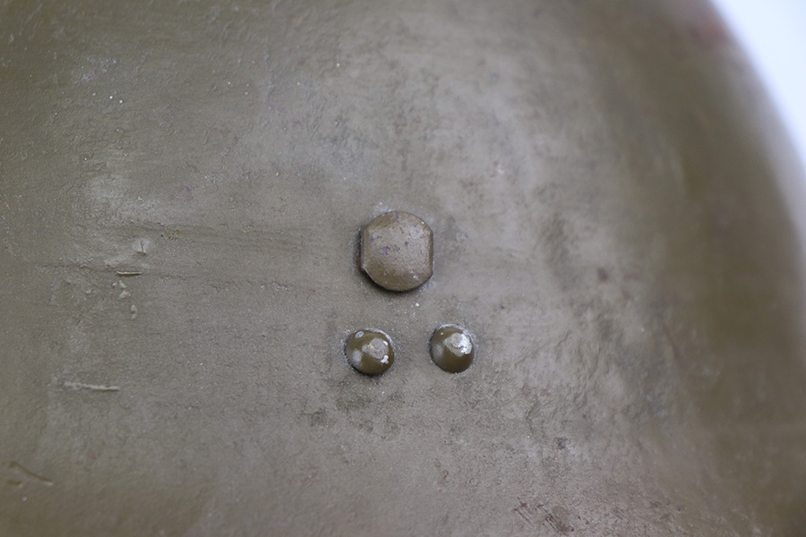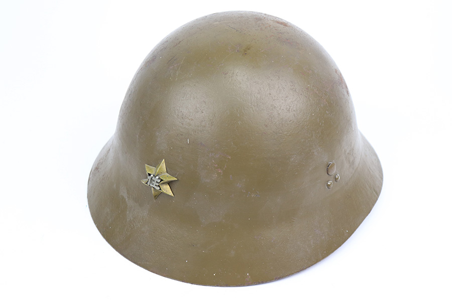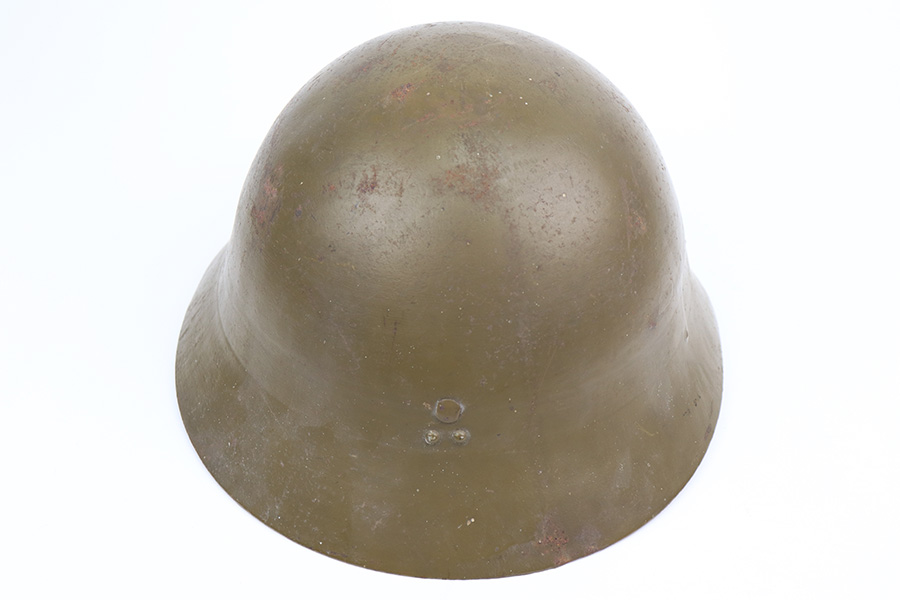 3/9/22 – This is an original WW2 Japanese Civil Defense helmet. The helmet is in great overall condition with a Japanese star emblem on the front. The shell has no dents or notable flaws and excellent olive green paint throughout. There’s some mild paint loss around the rim, but this is typical. The interior liner is original and intact without any notable flaws.