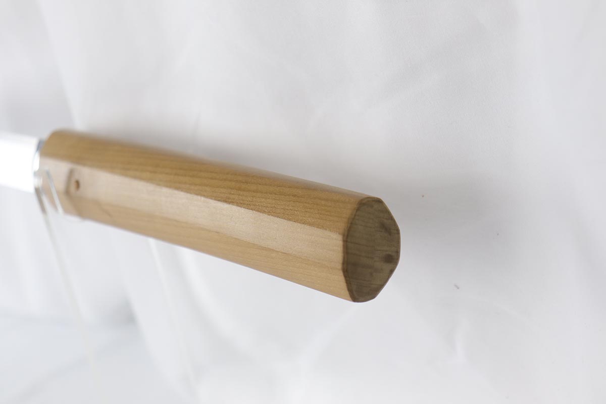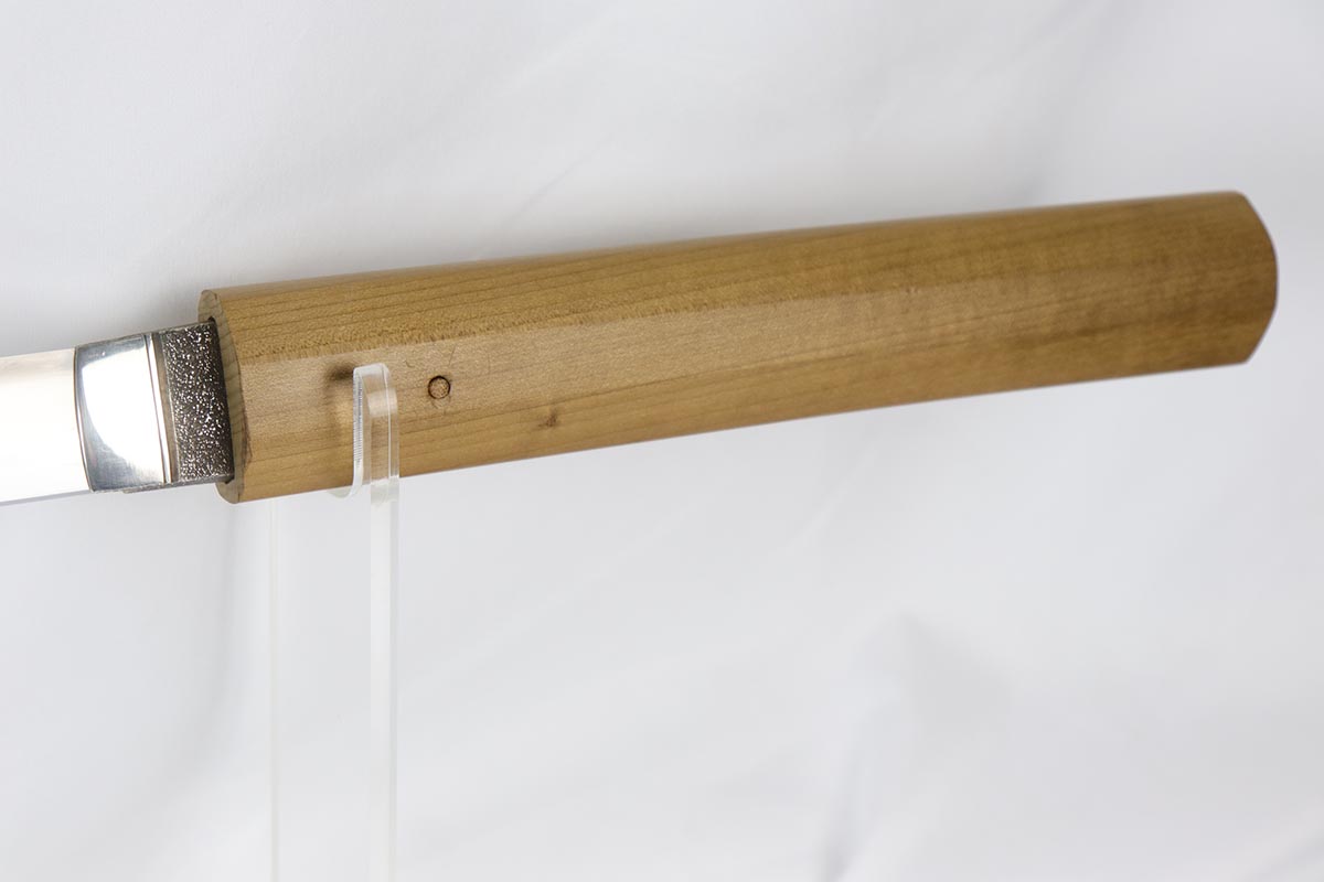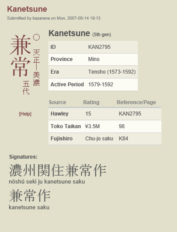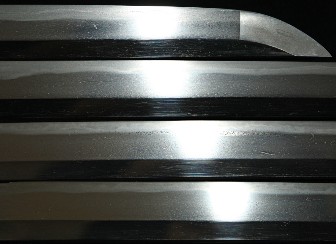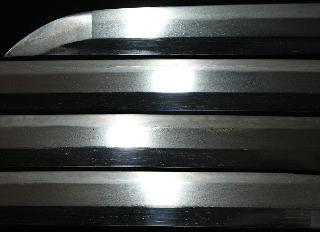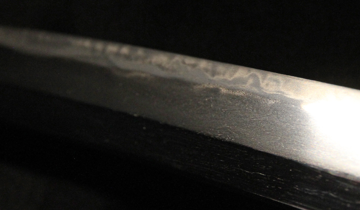 9/5/18 – This is an original, late Muromachi period Katana with a Society for the Preservation of Japanese Art Swords (NBTHK) Nihonto Origami (Japanese Sword Authentication Paper). The “Yellow Paper” certificate, dated 26 May 2014, is from the current rating system (1982 – Present) and grades the blade as Hozon (Worthy of Preservation). The Nagato (tang) is signed by maker “Kanetsune.” He worked exclusively in Mino Province between 1573 and 1592. Kanetsune is included in Fujishiro’s Nihon Toko Jiten (published in 1935) which rates 1,500 swordsmiths; his work is evaluated as Chu-jo saku (Superior Medium Made or Above Average). The workmanship exhibited in this Katana is exceptional; the blade has a long cutting edge of 67.6 cm / 26.6 inches. The Hamon (tempered cutting edge) is Sugu Midare (straight with irregular edge). The blade is housed in a traditional wooden storage scabbard (Shirasaya). The original yellow paper, along with additional documents are included. This came from the Rick Ricupero collection. Guaranteed original and authentic.