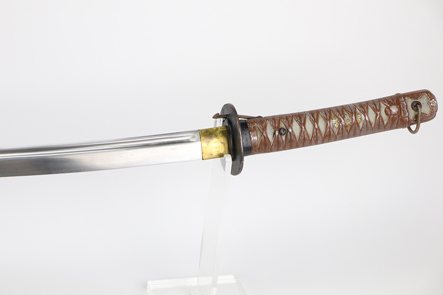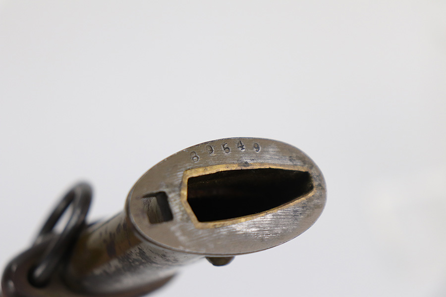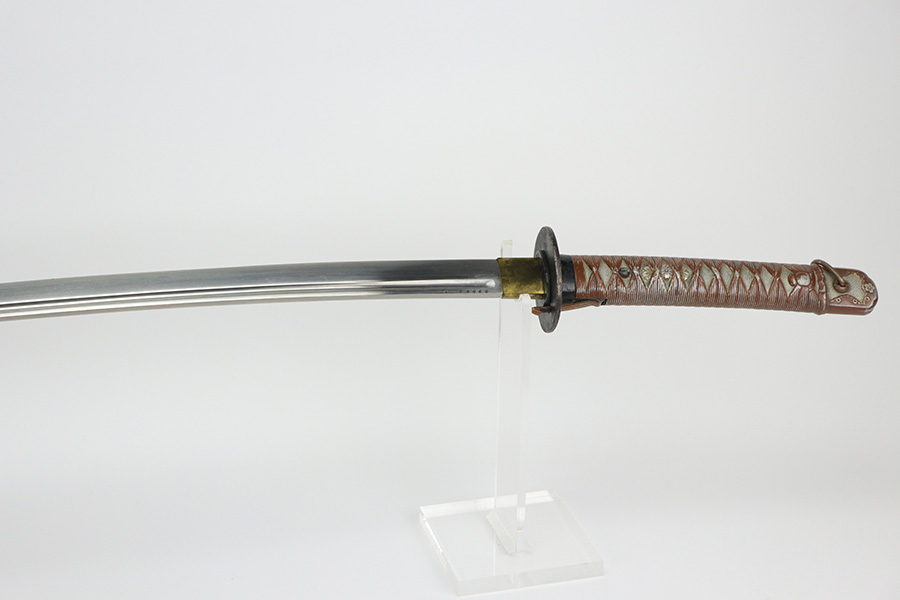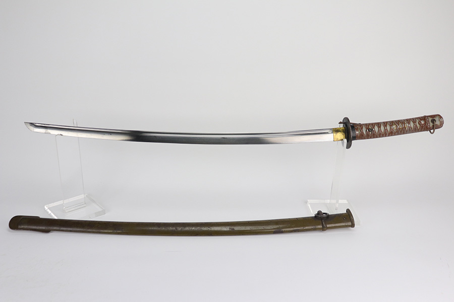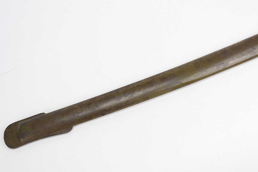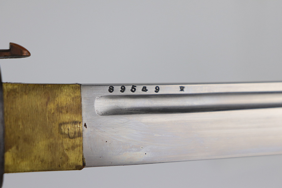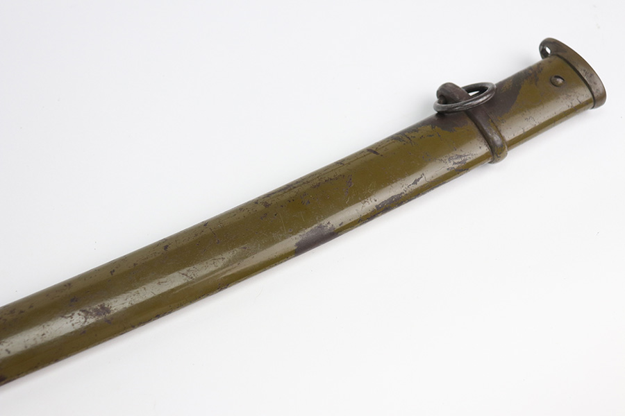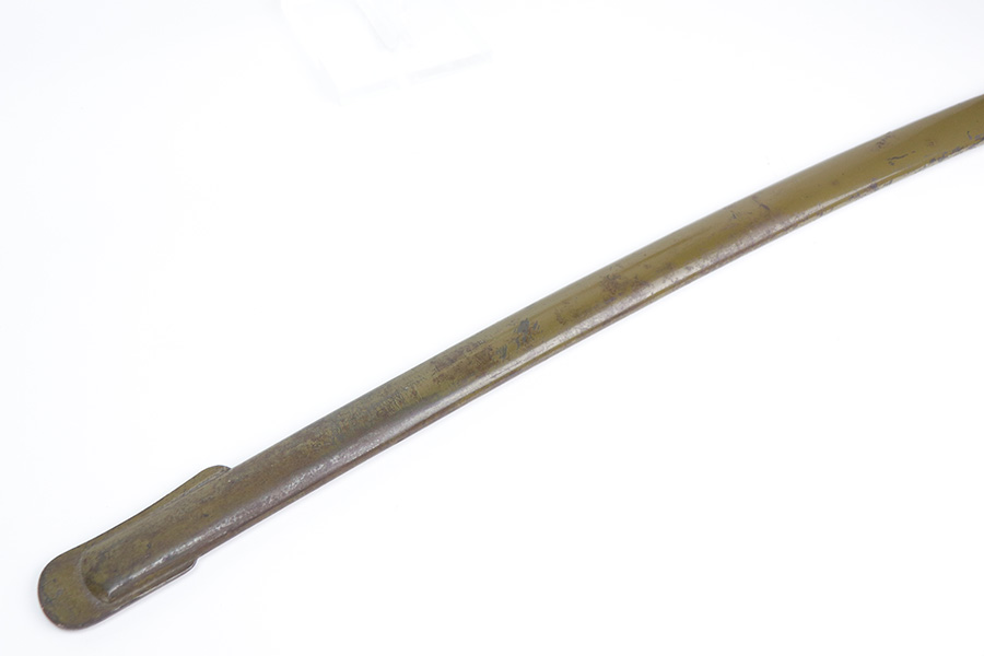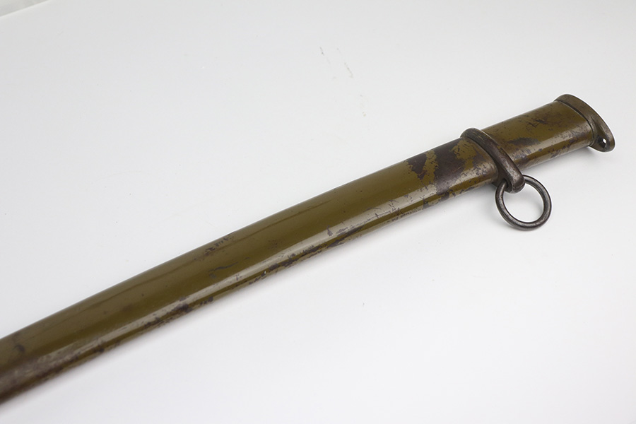 8/31/21 – This is an original WW2 era Japanese NCO Sword. The sword has a metal handle with mild edge wear / paint loss throughout. The blade is in great condition and clean throughout. Both the blade and the scabbard are numbered “89549”. The scabbard has no dents or major issues, but there is some paint loss and patina throughout – mostly near the toe of the scabbard. A nice, all original piece.