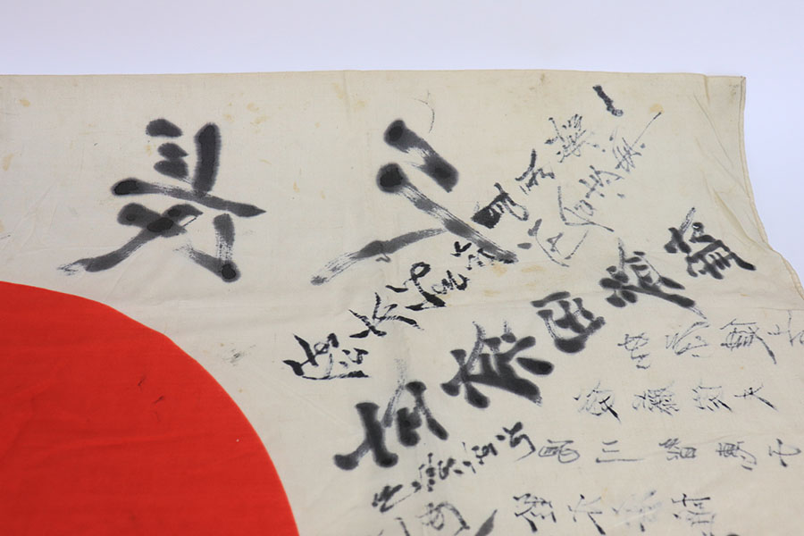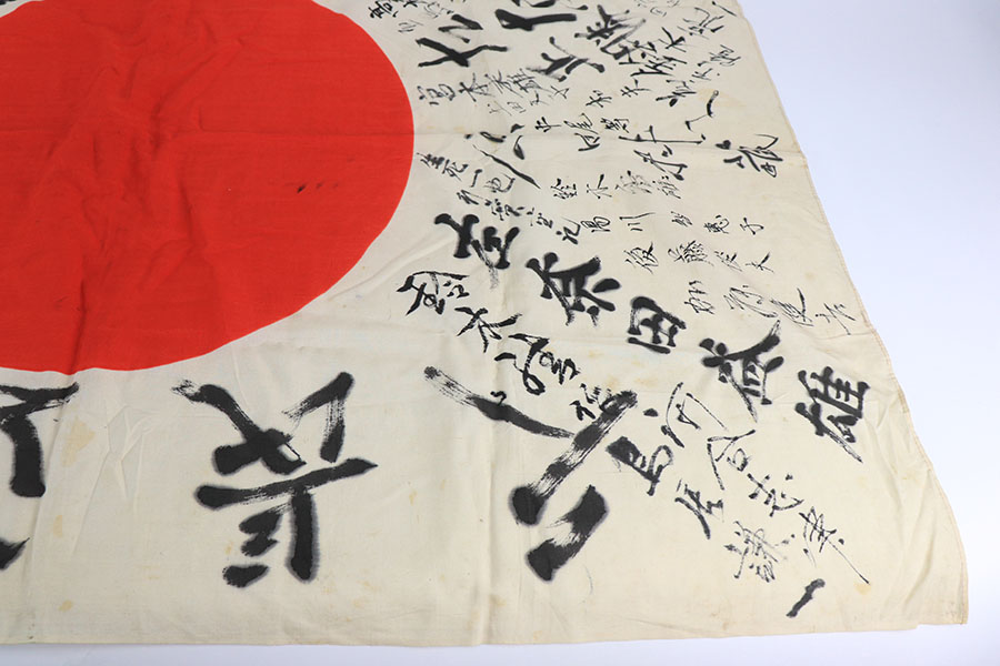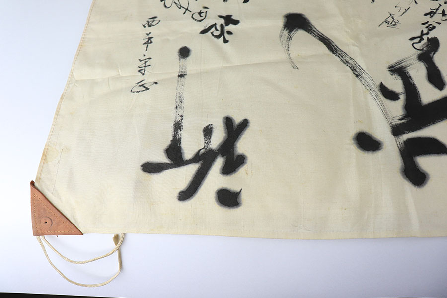 7/29/21 – This is an original Japanese Japanese Prayer flag from WW2. Excellent condition, made of silk. Some mild stains but no rips, tares, or major issues. No stitching issues. Measures 40×29 inches.