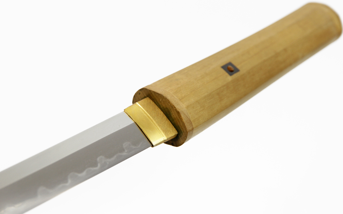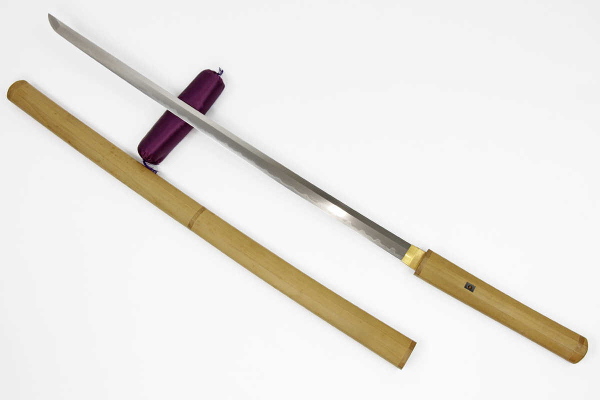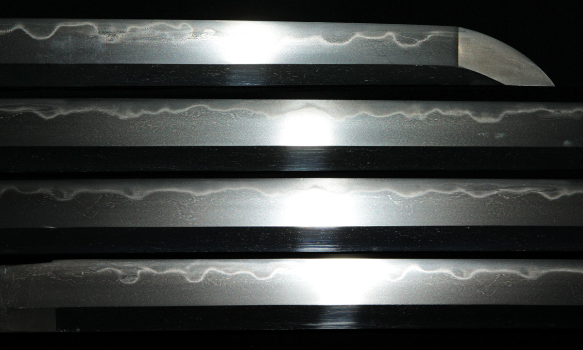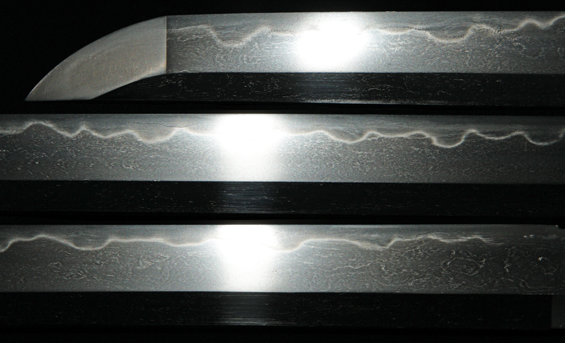 1/13/17 – Early Edo Katana with a highly coveted Nihonto Origami (Japanese Sword Authentication Paper) from the Society for the Preservation of Japanese Art Swords (NBTHK).  The “Brown Paper” certificate grades the blade as Tokubetsu Hozon (Especially Worthy of Preservation).  The Tokubetsu Hozon rating is the second of four current certification levels and is very difficult to achieve.  The Nakago (tang) is completely unaltered and signed by swordsmith “Echizen-Ju Shimosaka Kunihiro,” which translates to “Shimosaka Kunihiro, resident of Echizen.”  Kunihiro, whose original name was Shimosaka Gorobei, was a student of Omura Kabuko, a high ranking smith based in Edo (Tokyo).  Kunihiro worked in Edo and the provinces of Mito and Echizen during the period 1624 – 1661.  He is well known for the prominent Jihada (surface grain) easily visible in his blades.  The condition of this Katana is exceptional.  The length of the blade remains unaltered with a cutting edge of 26.87 inches. The Hamon (tempered cutting edge) is Gunome (wave of semi-circles).  The blade is housed in a traditional wooden storage scabbard (Shirasaya).  A rare opportunity to purchase a collector-grade Japanese sword with NBTHK papers!