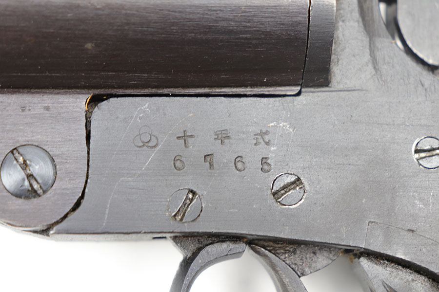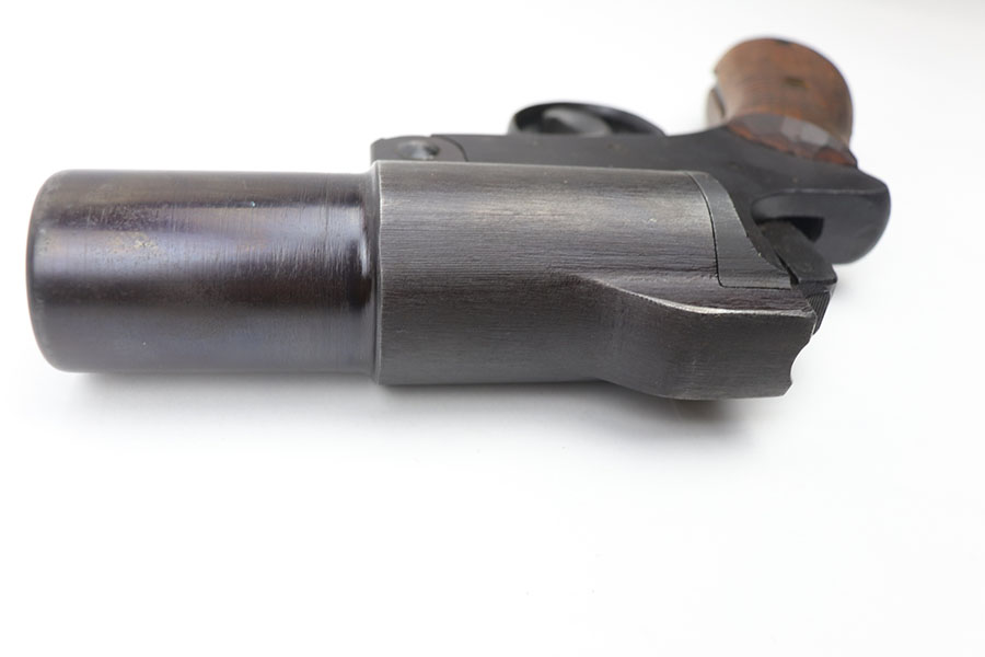11/30/20 – This is an excellent, original Japanese Type 10 single barrel flare pistol. Beautiful exterior bluing is minty with only some light muzzle wear. Excellent original wood grips still in tact. Serial numbered on one side of the frame. Mechanically sound with a clean bore. The screws show minor signs of tampering, but this is not excessive – likely due to a previous owner’s inspection.