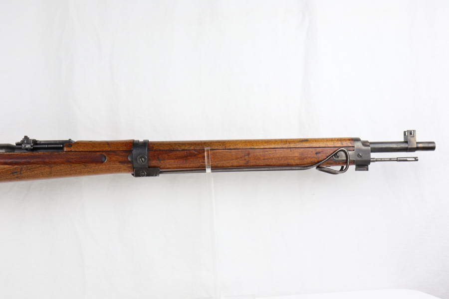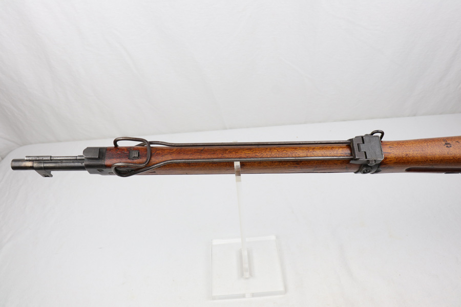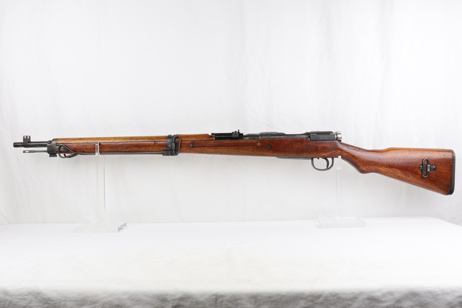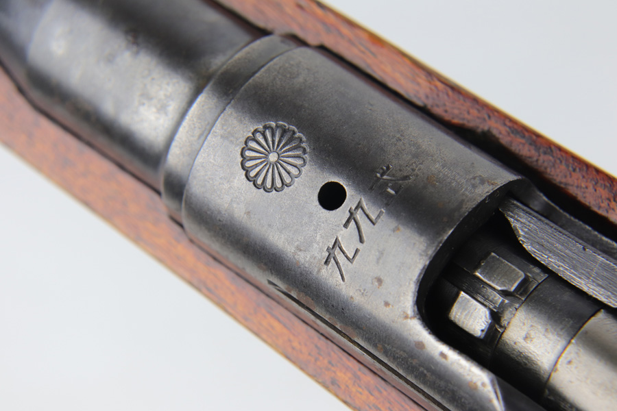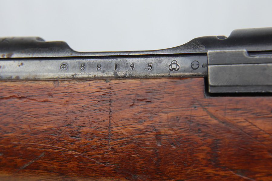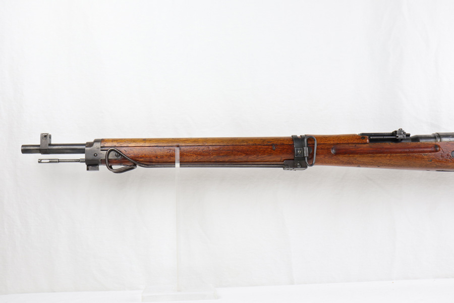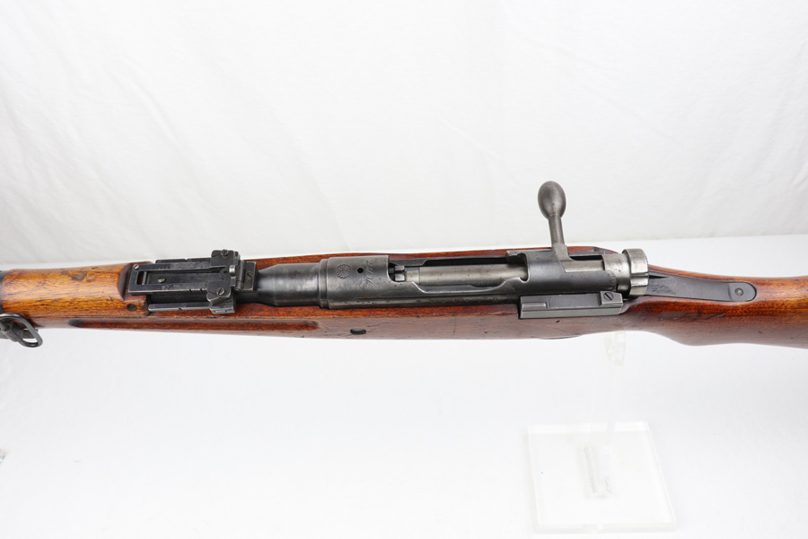 7/8/22 – Early WW2 production Toyo Kogyo Hiroshima Prefecture 31st Series Japanese Type 99 Service Rifle with all matching serial numbers and full, untouched mum marking on receiver. Very scarce battle captured rifle and not an ordinary vet bring back rifle. This is a very early production rifle and has early production original features such as the monopod, chrome lined barrel, full length cleaning rod, and the anti-aircraft sights. Weapon is without dust cover. This is exactly what you are looking for if you want a main line captured in battle Japanese Army rifle. All matching serial numbers including receiver, bolt, safety, and firing pin. Bayonet lug is unmarked and not numbered. Small counterbore at the muzzle end of bore apparently done by the Japanese during the war to improve shooting accuracy. Bore condition looks very nice about excellent, chrome lined. Unnamed US Vet captured rifle during the war the receiver mum on this rifle is entirely intact and untouched as made. Battle captured serial numbers matching Japanese rifles such as this one have always been scarce as most of these rifles were surrendered and mums ground off at the emperor’s direction at the close of WWII. This was the standard early issue 7.7 mm Japanese rifle of the Pacific War. Although it never fully replaced the 6.5 mm Type 38 rifle In the Japanese Army it was the most commonly encountered rifle outside of the the China Theater. The Type 99 rifle was a very innovative design for a bolt action rifle, and while it may have been a dated and obsolete design by the standard of the semi auto rifles such as the Garand, it was very well suited for tropical service in harsh jungle conditions and it was a prized Army and USMC war trophy. Not import marked.