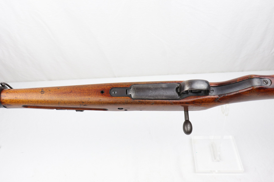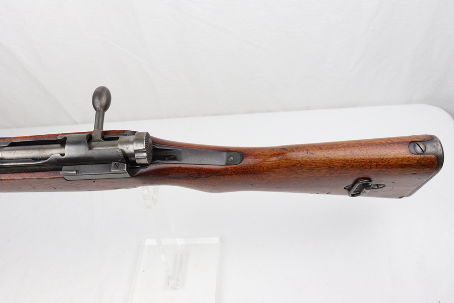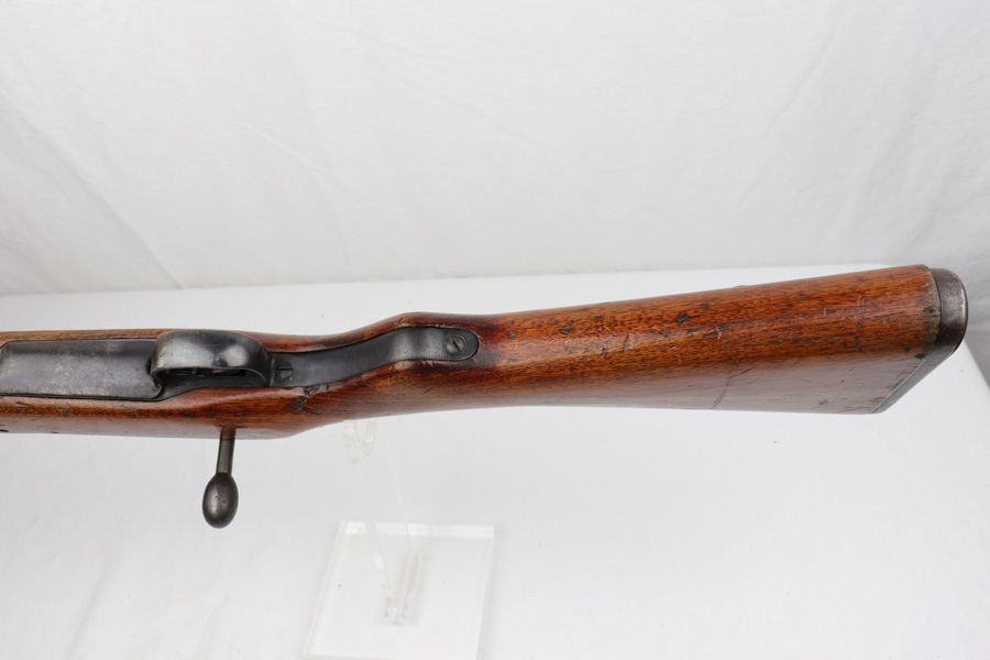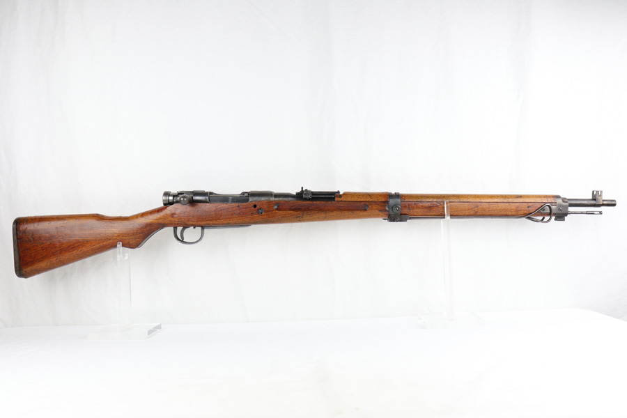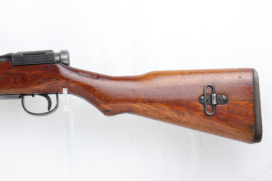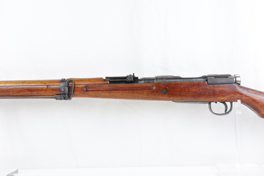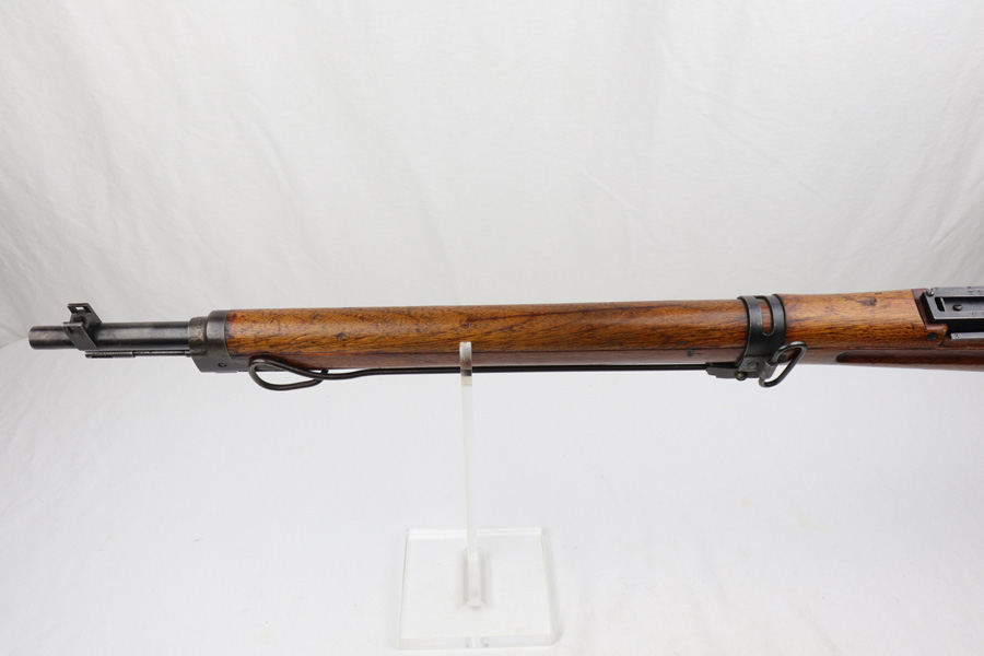 7/8/22 – Early WW2 production Toyo Kogyo Hiroshima Prefecture 31st Series Japanese Type 99 Service Rifle with all matching serial numbers and full, untouched mum marking on receiver. Very scarce battle captured rifle and not an ordinary vet bring back rifle. This is a very early production rifle and has early production original features such as the monopod, chrome lined barrel, full length cleaning rod, and the anti-aircraft sights. Weapon is without dust cover. This is exactly what you are looking for if you want a main line captured in battle Japanese Army rifle. All matching serial numbers including receiver, bolt, safety, and firing pin. Bayonet lug is unmarked and not numbered. Small counterbore at the muzzle end of bore apparently done by the Japanese during the war to improve shooting accuracy. Bore condition looks very nice about excellent, chrome lined. Unnamed US Vet captured rifle during the war the receiver mum on this rifle is entirely intact and untouched as made. Battle captured serial numbers matching Japanese rifles such as this one have always been scarce as most of these rifles were surrendered and mums ground off at the emperor’s direction at the close of WWII. This was the standard early issue 7.7 mm Japanese rifle of the Pacific War. Although it never fully replaced the 6.5 mm Type 38 rifle In the Japanese Army it was the most commonly encountered rifle outside of the the China Theater. The Type 99 rifle was a very innovative design for a bolt action rifle, and while it may have been a dated and obsolete design by the standard of the semi auto rifles such as the Garand, it was very well suited for tropical service in harsh jungle conditions and it was a prized Army and USMC war trophy. Not import marked.