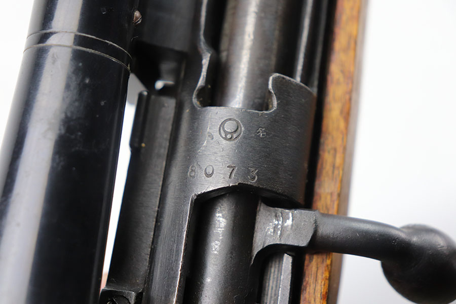 2/12/21 – This is an excellent and original Type 99 sniper rifle with rare scope. Made in 1944 at the Nagoya Arsenal with all matching numbers throughout, except for the firing pin. Matching bolt, receiver, cocking knob and bayo lug. The mum is almost completely intact but does have a small strike in it. Correct inspectors proofing on the underside of the stock. Serial dates this gun to 1944 and is one of a very small batch reported in the 8000-8999 range. The scope is very rare, one of 1000 made by Takatihio. Serial is in the correct range for these scopes, and only 50 examples are reported. Optics are crystal clear with just a few specks in the lower area. Comes with rare, original muzzle cover and a cleaning rod. The correct scope case and belt for this model are also listed on our site: https://www.legacy-collectibles.com/accessories/miscellaneous/123120-5s.html