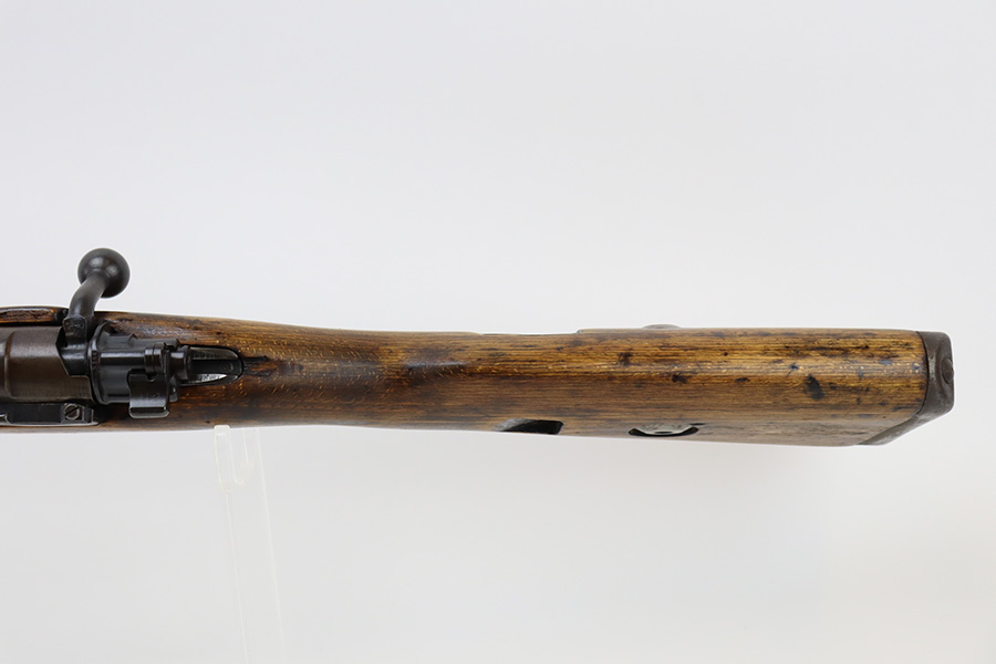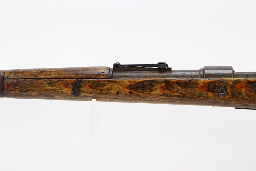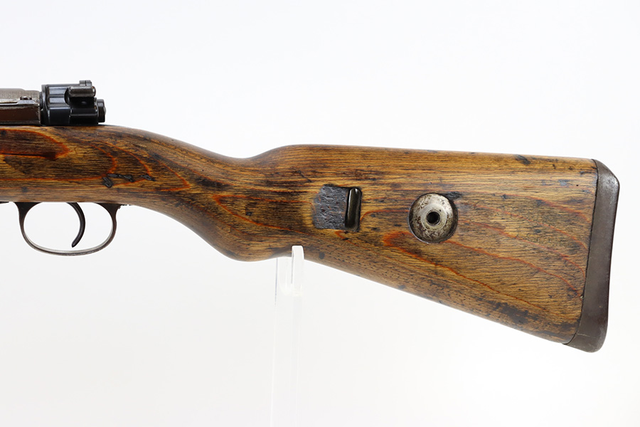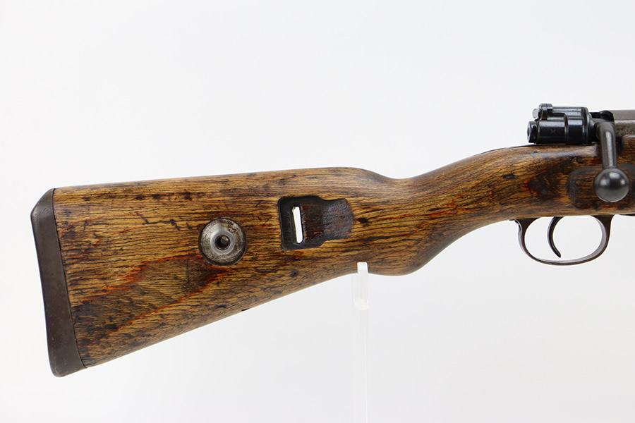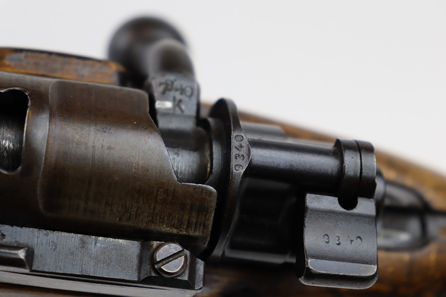 04/02/2024 – For sale is a K98k made by JP Sauer in 1943 during WW2. The rifle is clean but the finish is heavily worn. Much of the original bluing is gone and replaced with patina. The rifle is mismatched serials throughout. The stock isclean but there is a major crack developing from the front of the magazine towards the rear barrel band. The bore is clean and bright.