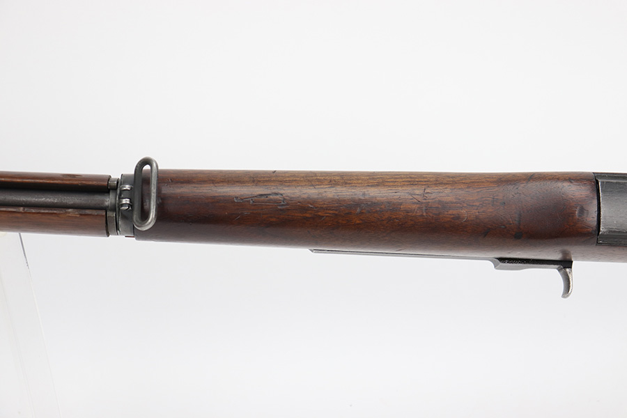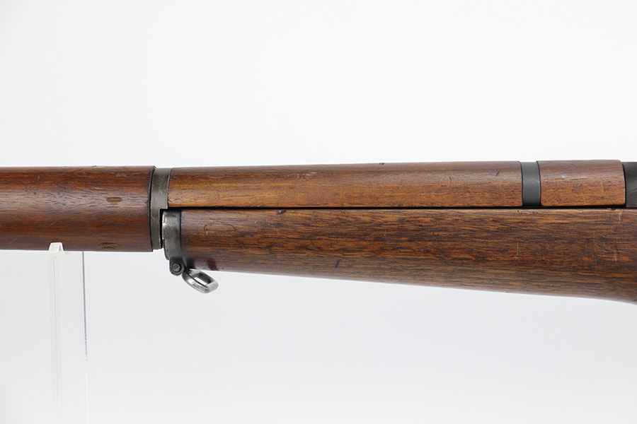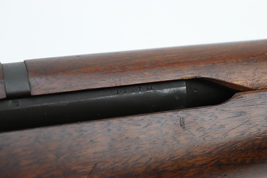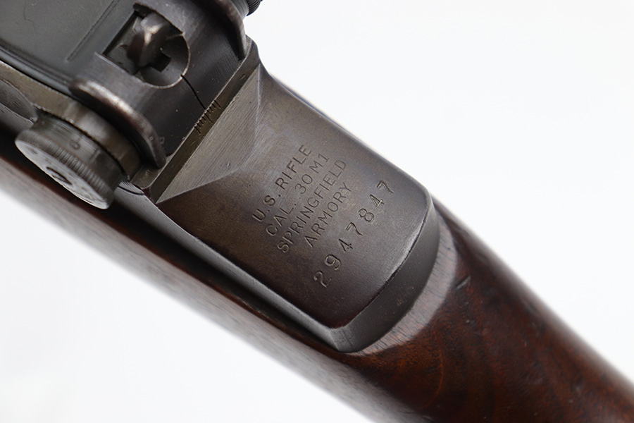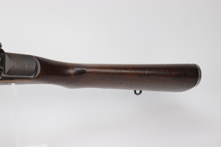 6/15/23 – This is a very nice example of a Springfield M1 Garand issued to the US military during WW2. The serial number on the receiver dates it to June of 1944, the same month as D-Day. The barrel is Springfield marked and dated July of 1944. The stock is a replacement. Overall, the metal parts have retained about 80% of their finish. The majority of the wear is along the gas tube and around the muzzle. There is general high edge wear and some light spotty wear on the floor plate. No major damage to the wood furniture, but there are minor dings, dents, and bruises throughout. The bore has great rifling, but there is tiny pin-pricking throughout.