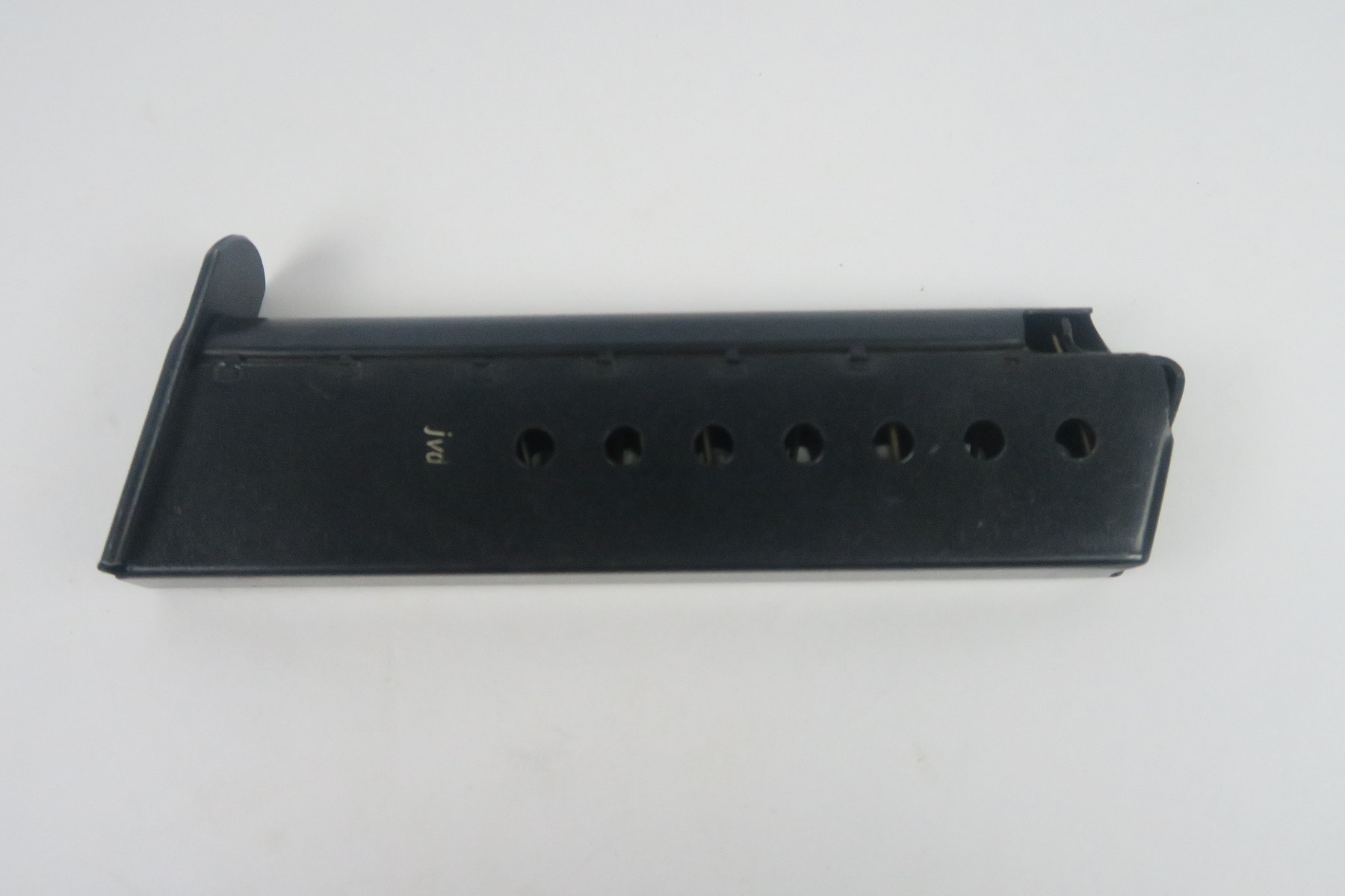 2/5/18 – This is a mint condition “jvd” P.38 magazine. The magazine is in mint condition with “jvd” stamped on the side of the frame. There are no other markings on the spine or base of the magazine. Guaranteed original and fully functional.