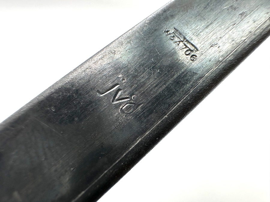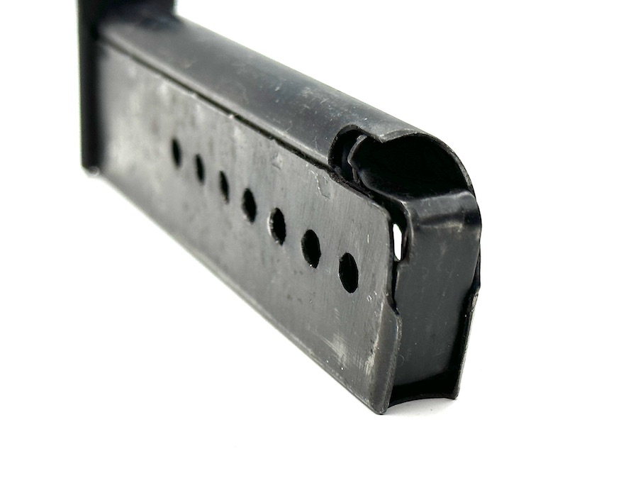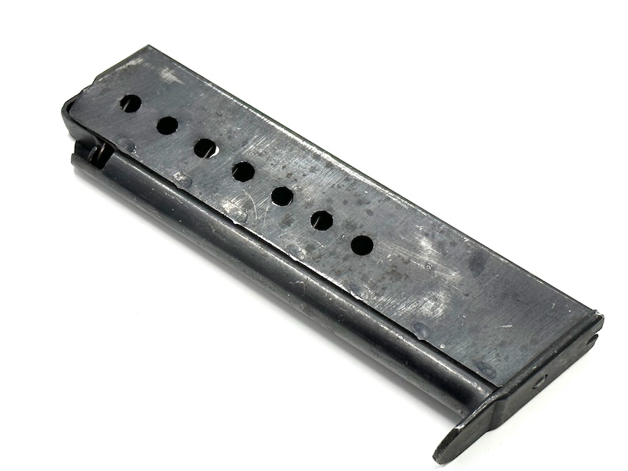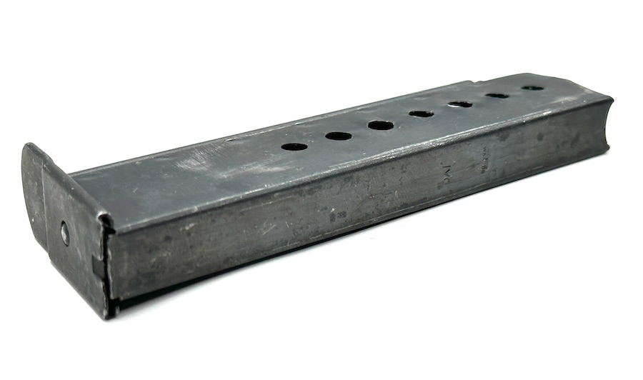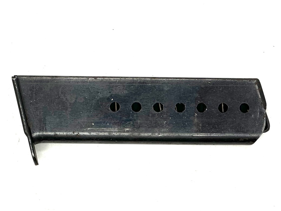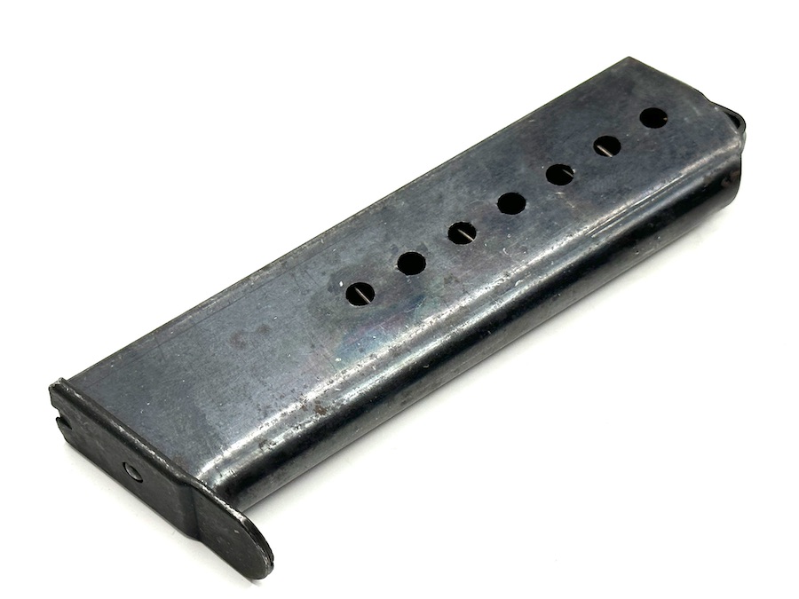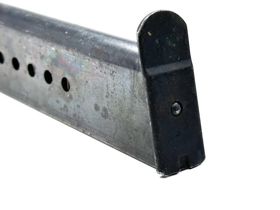 5/24/23 – This is an original jvd Walther P.38 Magazine from 1944. This magazine retains about 75% of its original bluing finish showing some honest wear patina and minor surface rust, despite that it has a fully functional spring with decent retention. The spine has a Waffenamt stamp with a code that reads “WaA708” and the letter “jvd” in the middle of the spine.