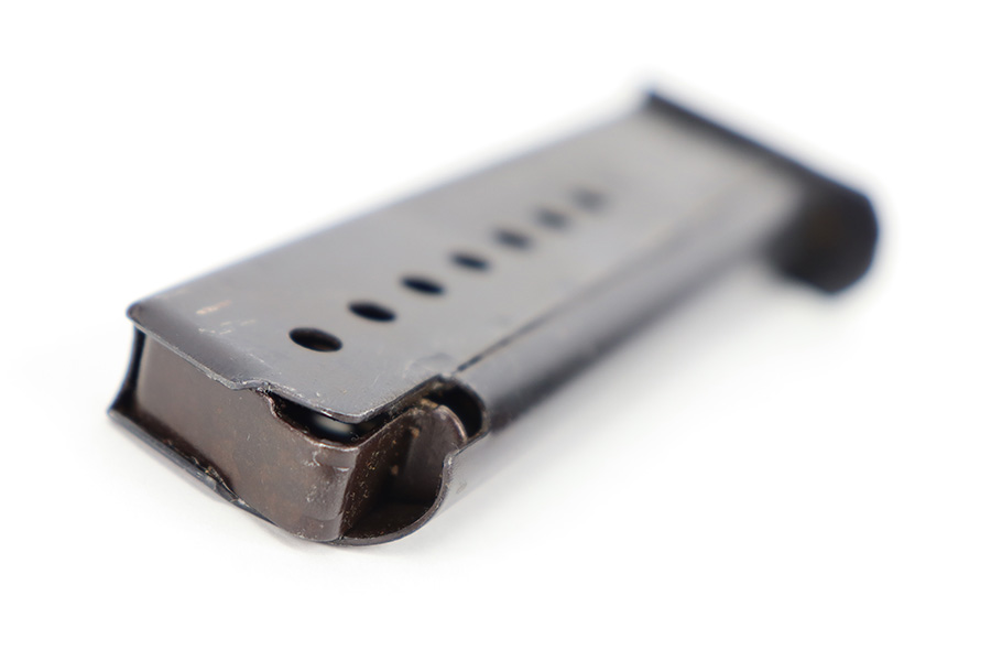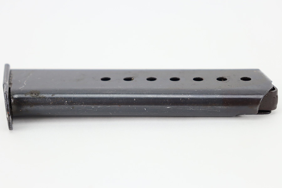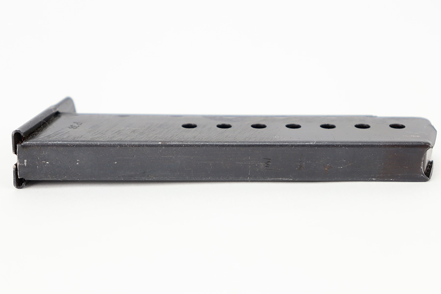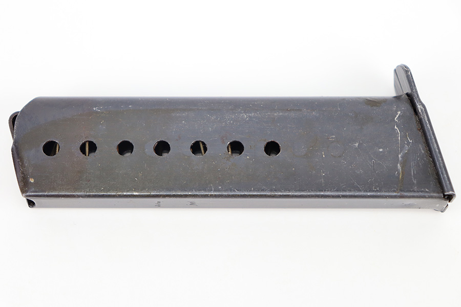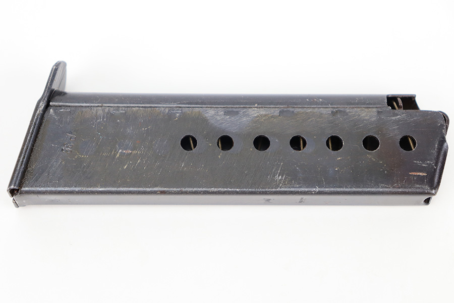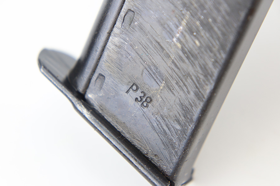 12/27/23 – This is a WW2 original P.38 magazine. The magazine is maker stamped “jvd” with a waffen military proof on the spine. There’s also a P.38 designation stamp on the left side of the tube. Great condition with all original finish and some rough machine marks on the tube, but minimal finish loss. Strong, functional spring.