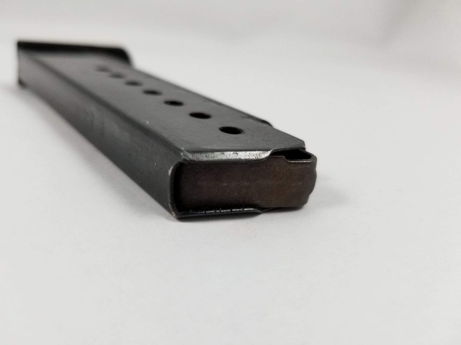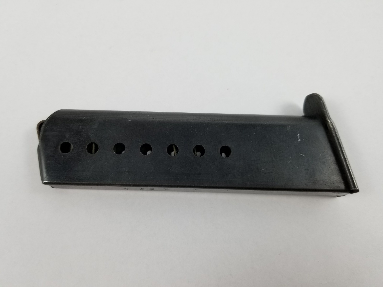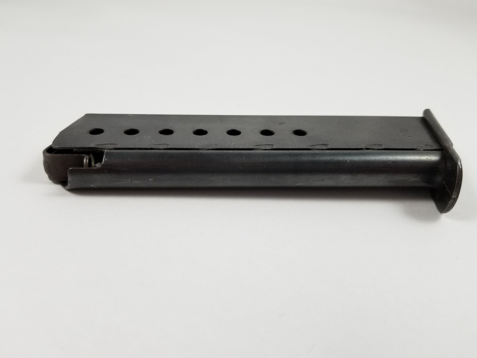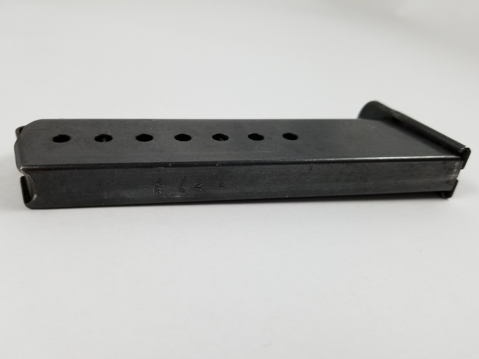 3/4/18 – This is an original, minty WW2 P.38 magazine. The spine has two waffen WaA706 proof stamps and two “jvd” maker stamps. The spring is strong and has smooth action. Guaranteed original and fully functional.