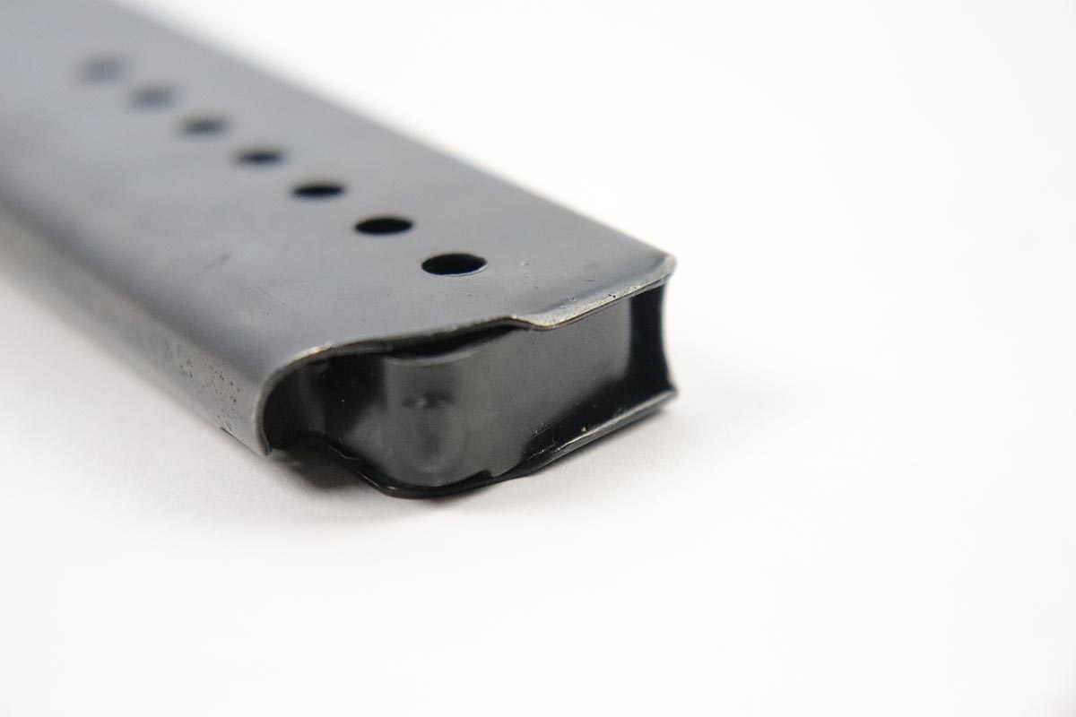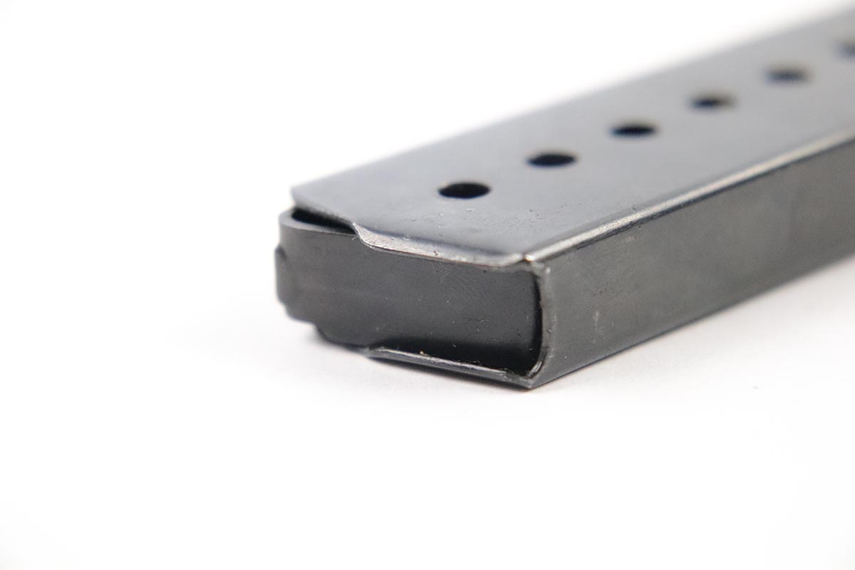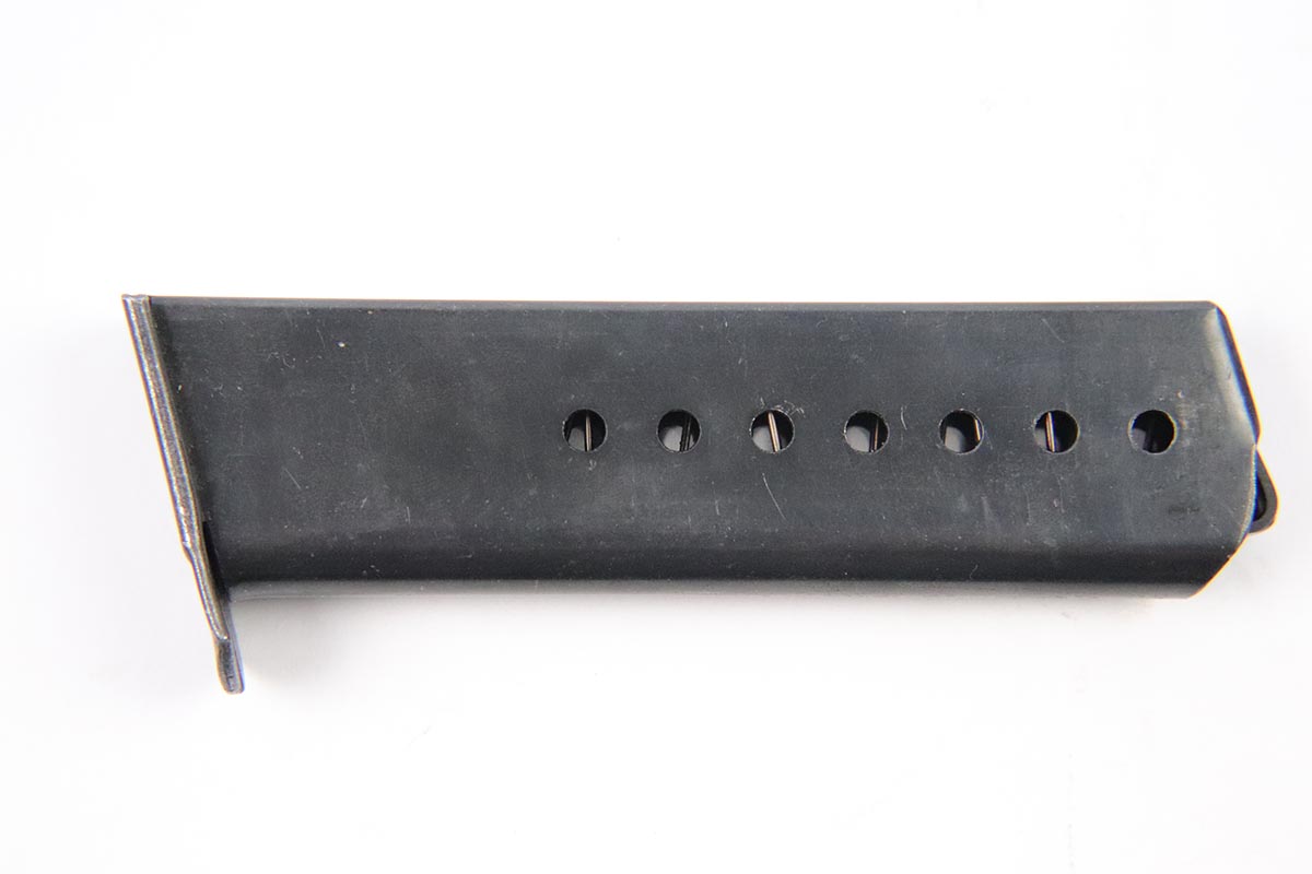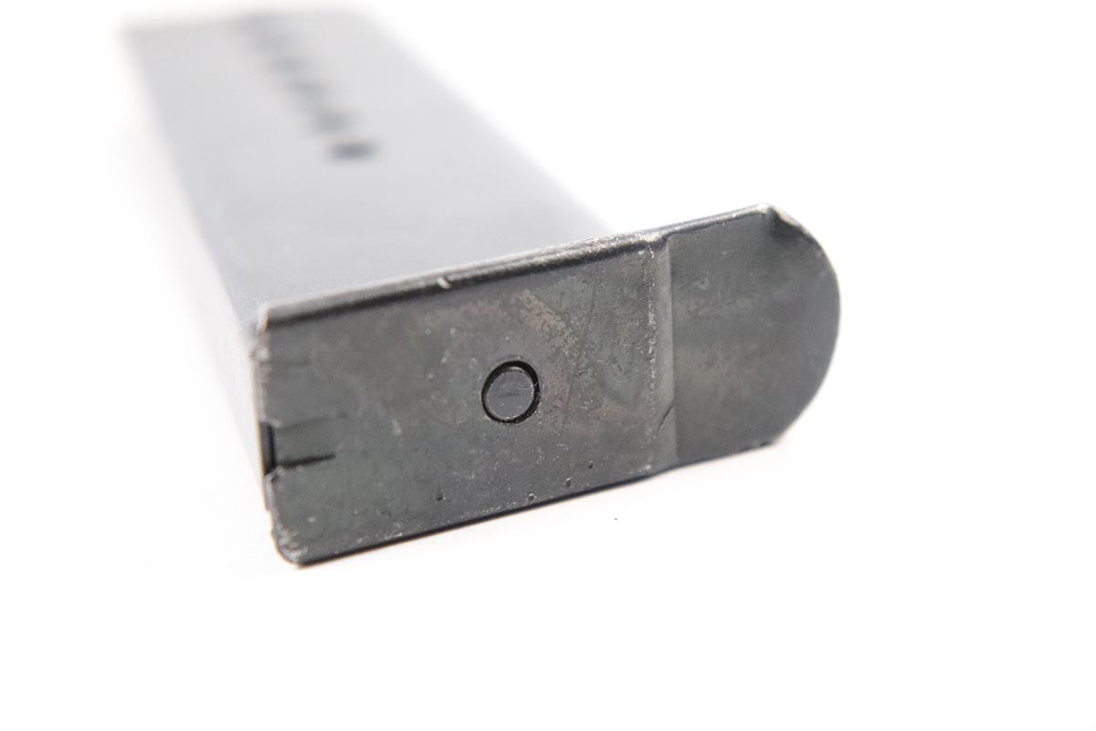 5/15/18 – This is an excellent, WW2 original P.38 magazine made by jvd. The spine of the magazine is “jvd” stamped with a waffen proof WaA706. The left side of the magazine is “P38” stamped. There is no rust or pitting, and the spring is fully functional.