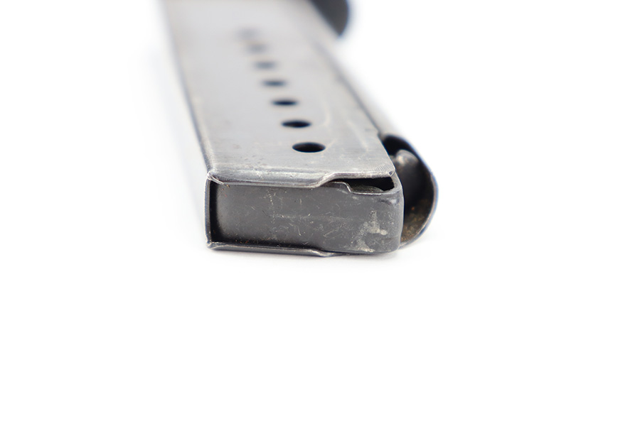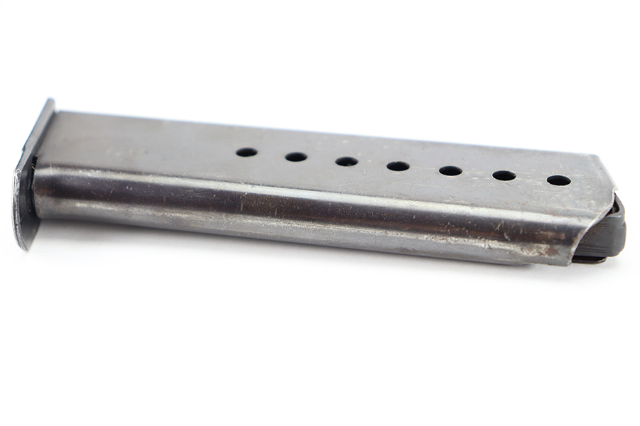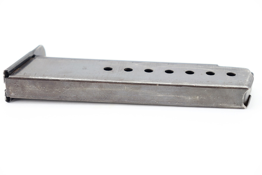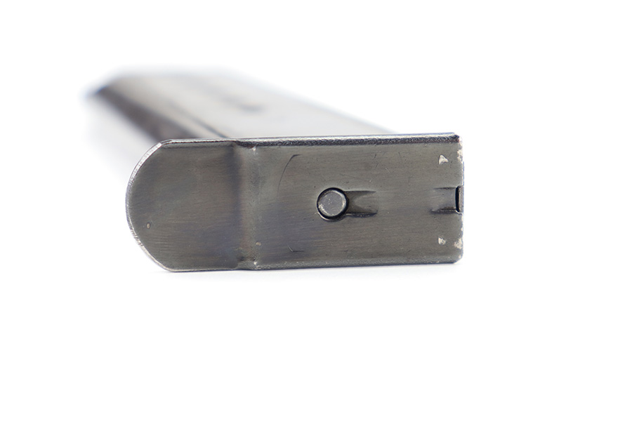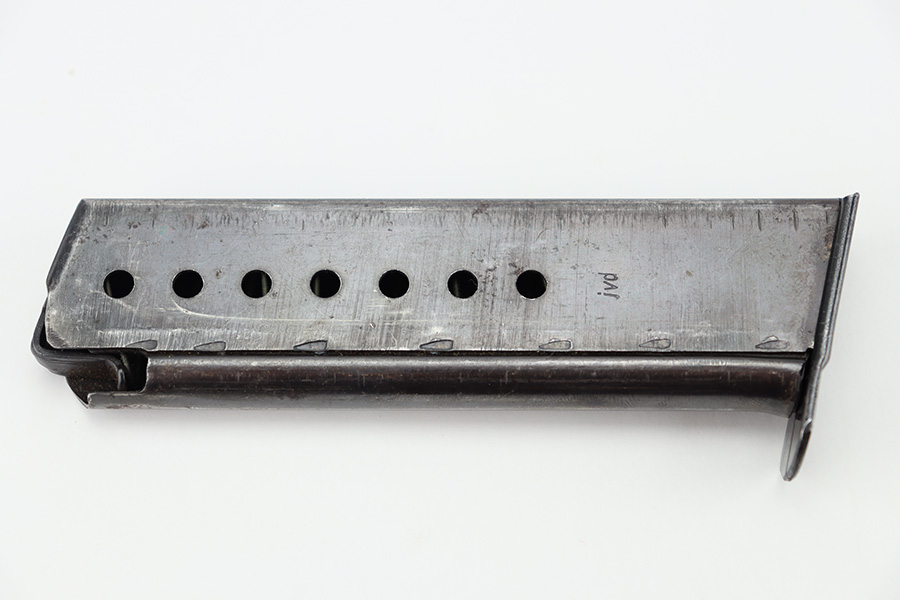 11/16/23 – This is an original WW2 production P.38 magazine made by the subcontractor, JVD. The magazine has a “jvd” stamp on the left side of the tube. No other markings or stamps. The finish is all original and excellent, except for on the base plate of the magazine, which is a replacement. Priced accordingly. Strong, functional spring.