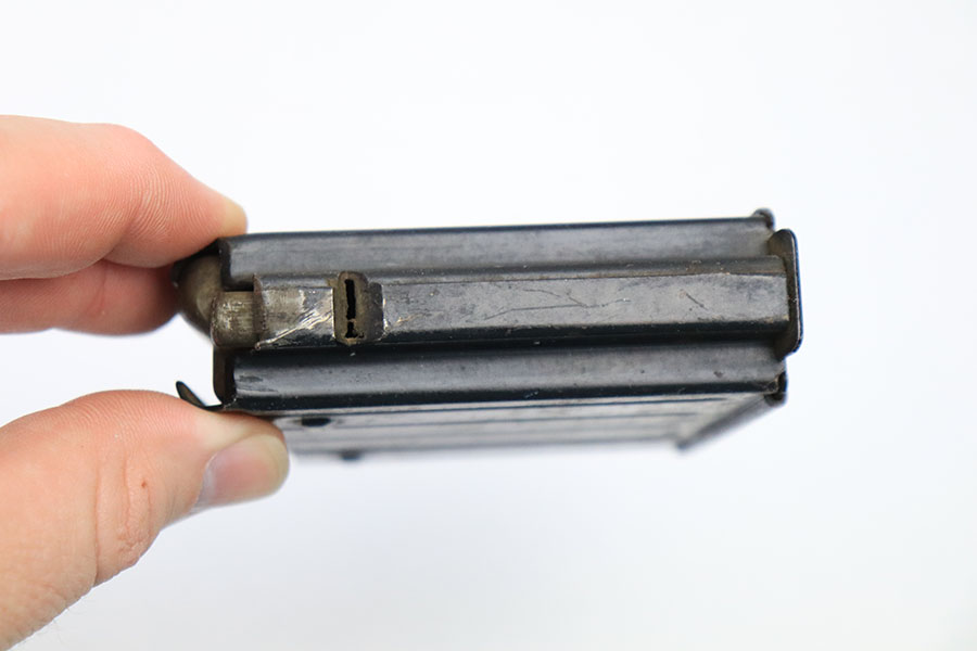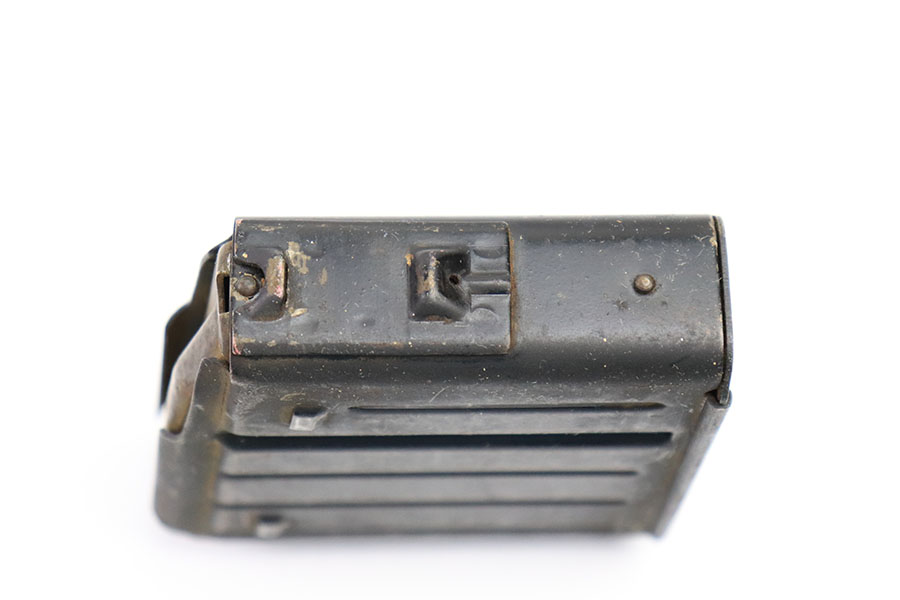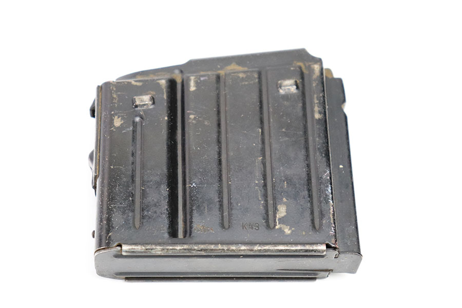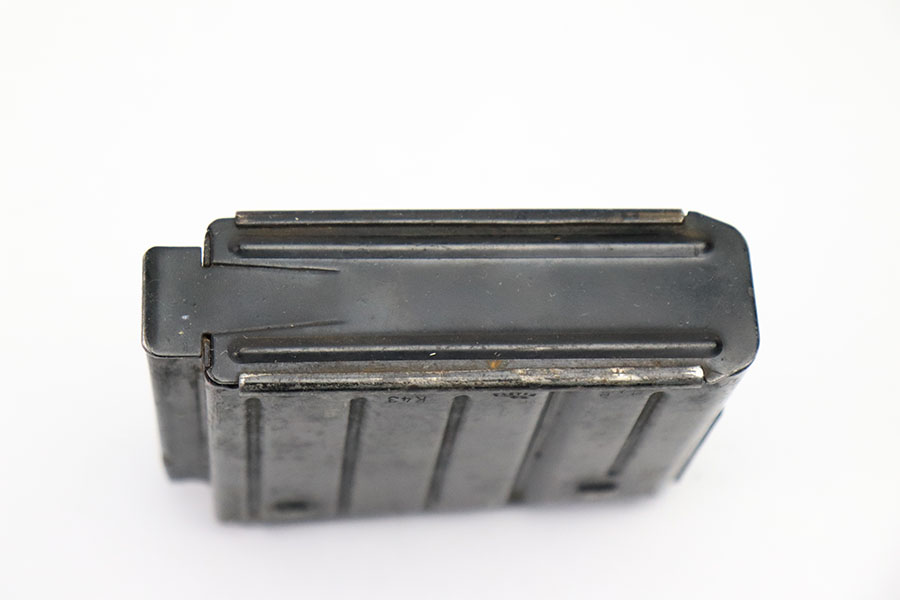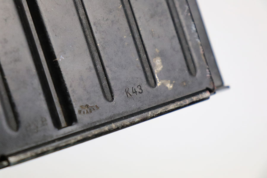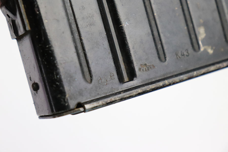 10/10/22 – This is an original WW2 K43 / G43 magazine. The magazine is in great overall condition with most of the black finish still intact. There’s some mild surface wear from typical use and aging. No excessive wear. Maker stamped, waffen proofed, and K43 stamped on one side. The spring is strong and fully functional.