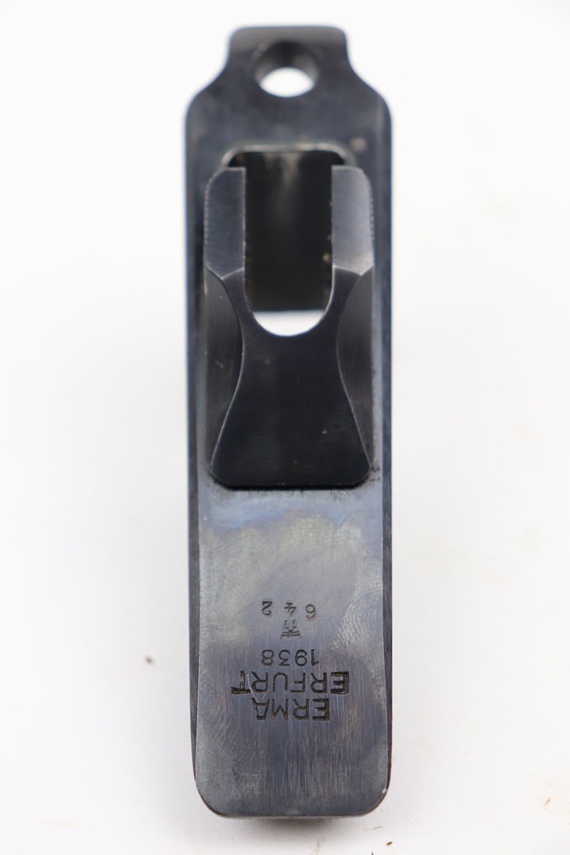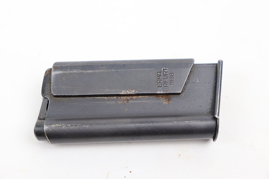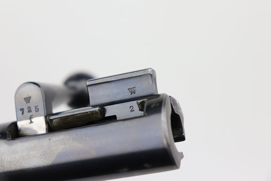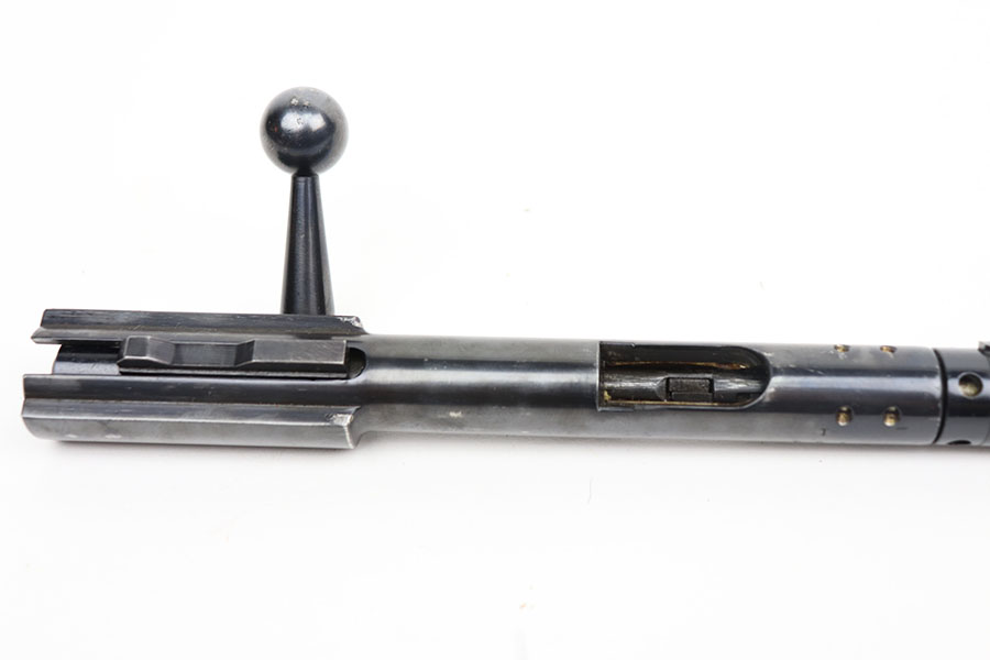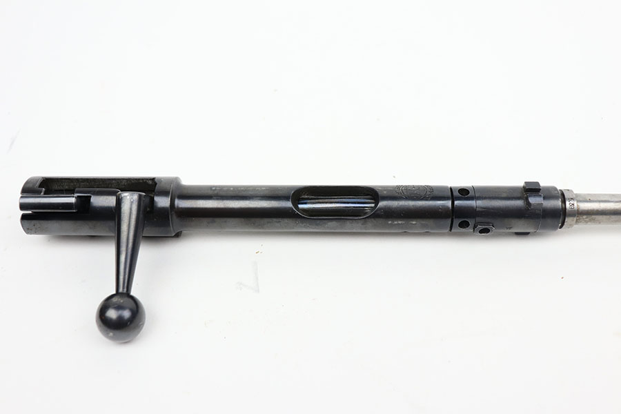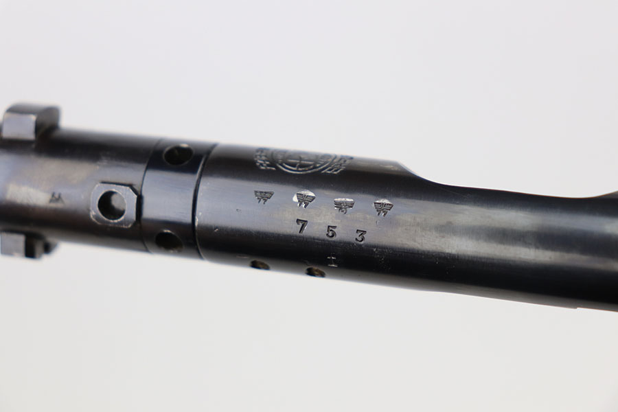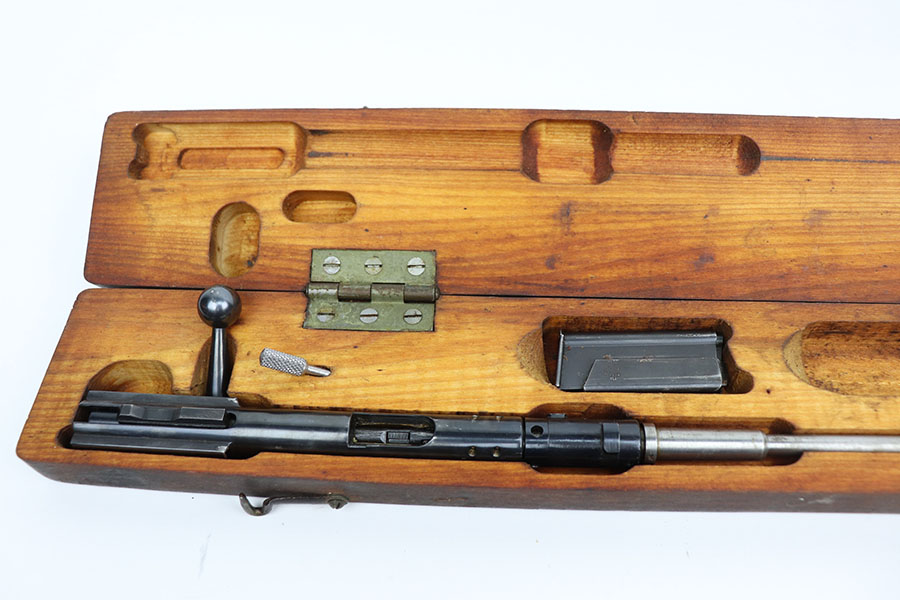 3/12/21 – This is a .22 caliber conversion kit for a K98 rifle. The conversion kit is complete except for one magazine that is missing. Only the magazine / floorplate and the receiver / barrel are serial numbered, and they do not match each other. The condition on all of the parts is excellent however with most of the finish in tact and minimal exterior wear. The bore is in excellent condition with minimal wear and strong rifling. The wood box has no cracks or chips.