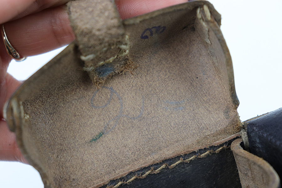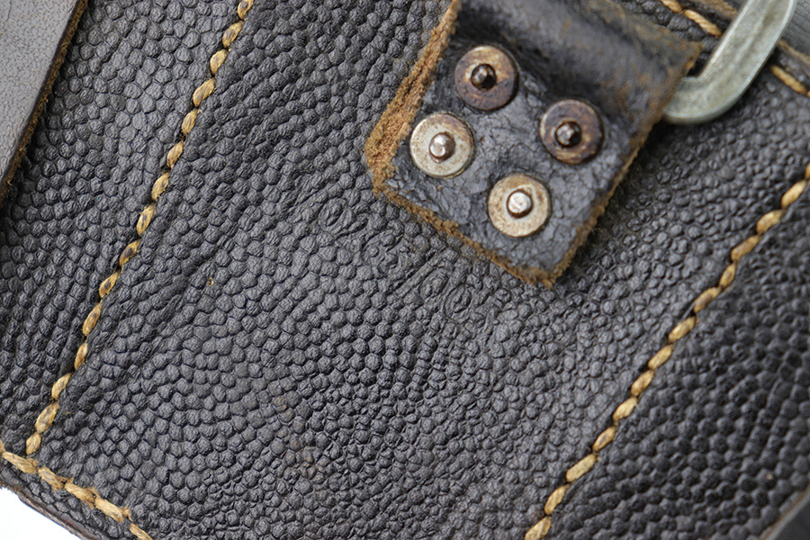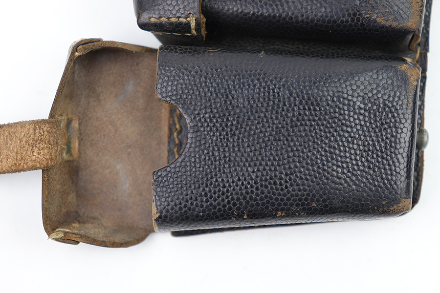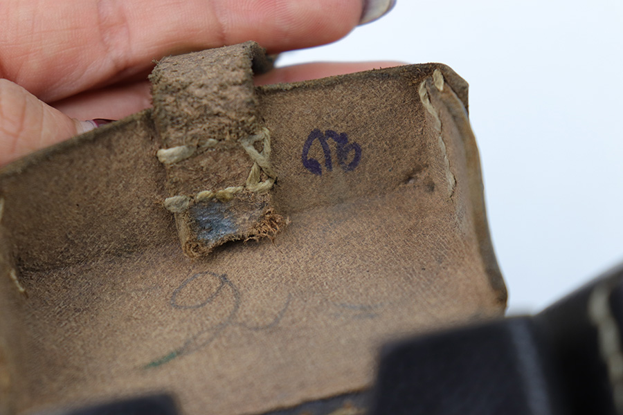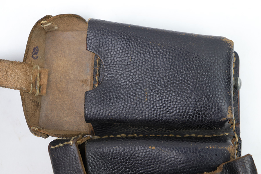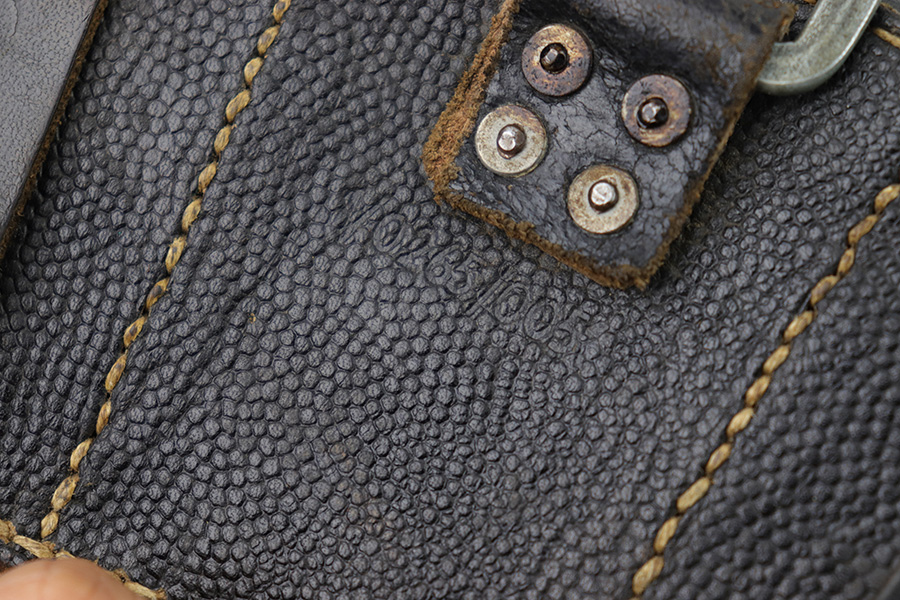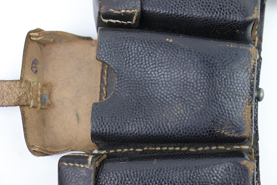 1/18/23 – This is an original WW2 K98 leather ammo pouch. Great condition with nice pebble grain black leather and all original stitching. Stamped on the back with a RBNr. used during later wartime production.