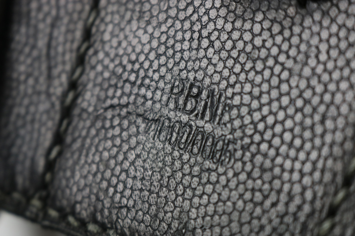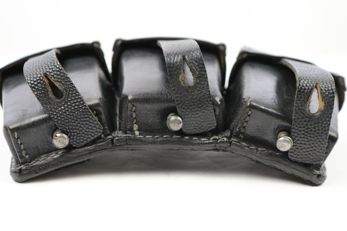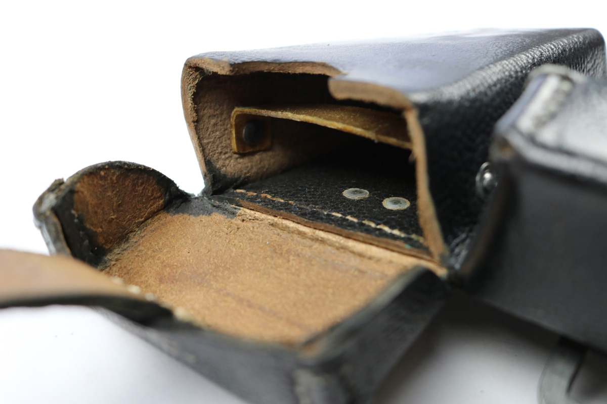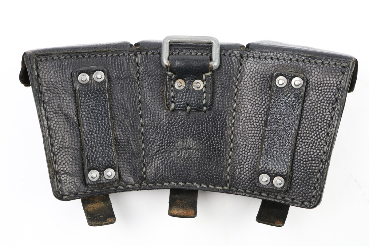 6/28/18 – This is an original WW2 K98 Ammo pouch. Pebble grain leather is clean, in tact, and excellent. All original stitching in tact as well. Stamped on the back with a unit number and “RBNr”. Guaranteed original.