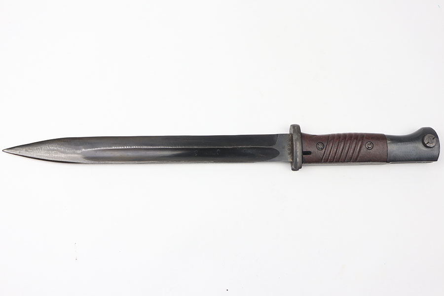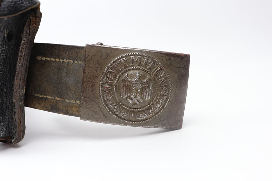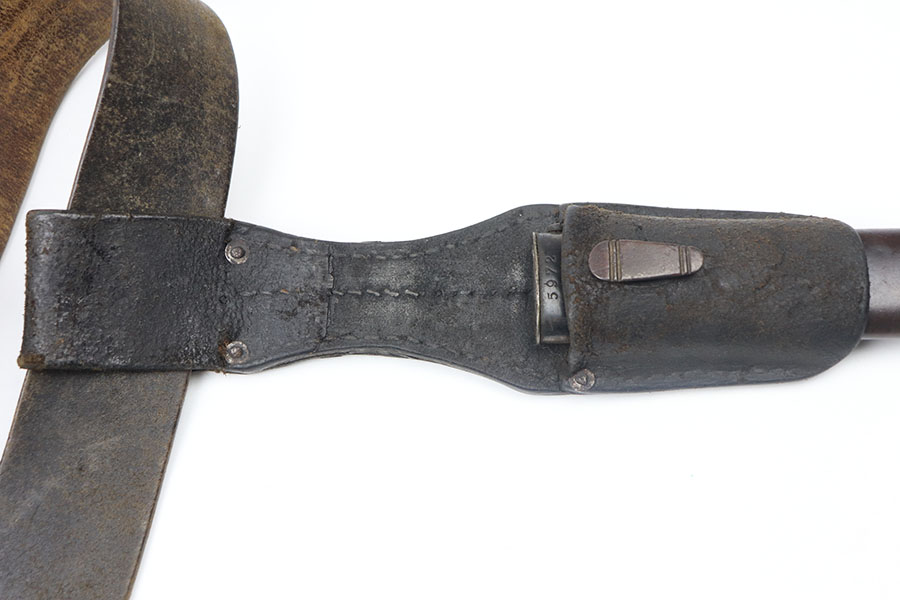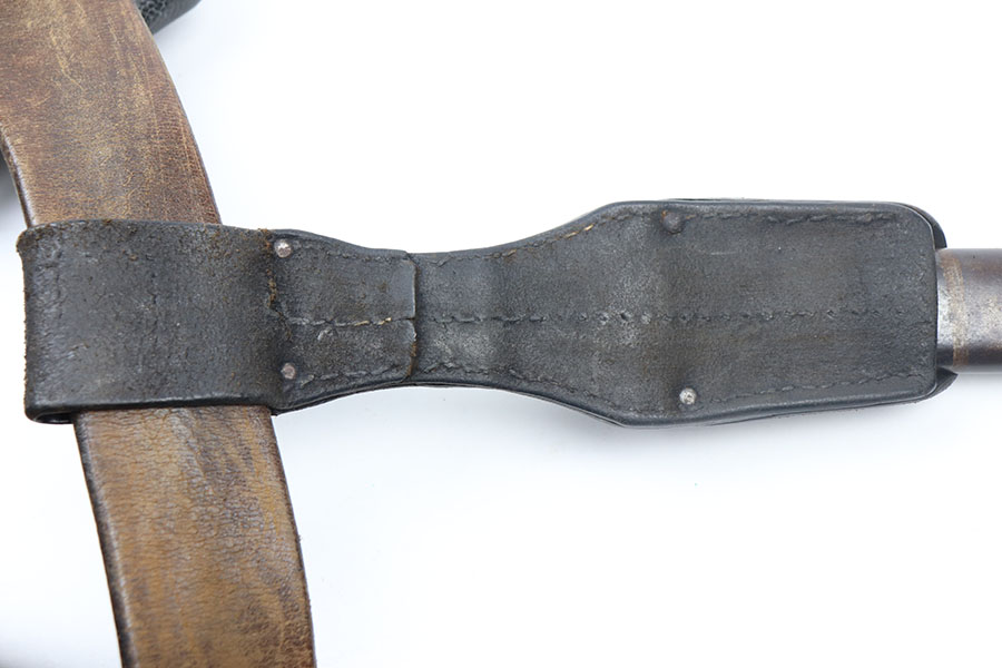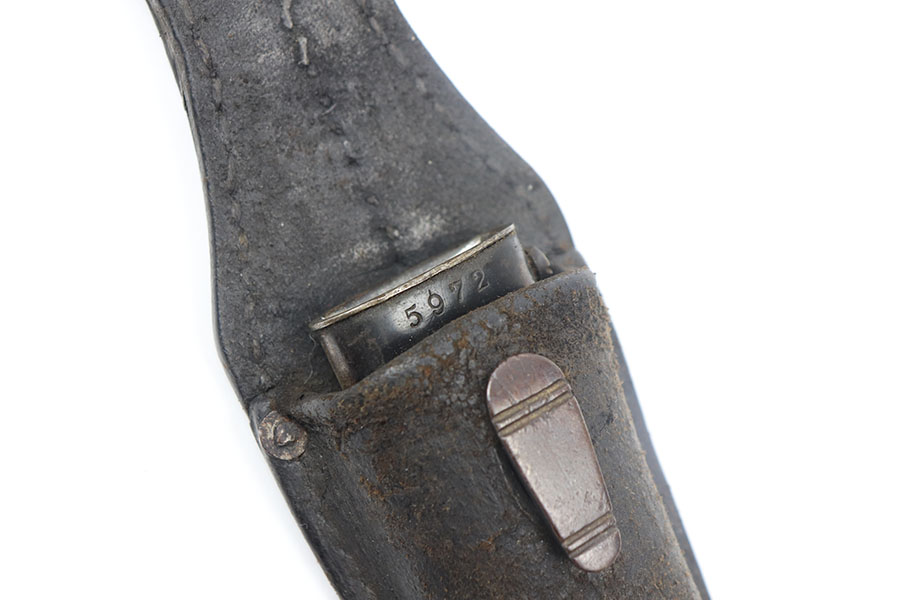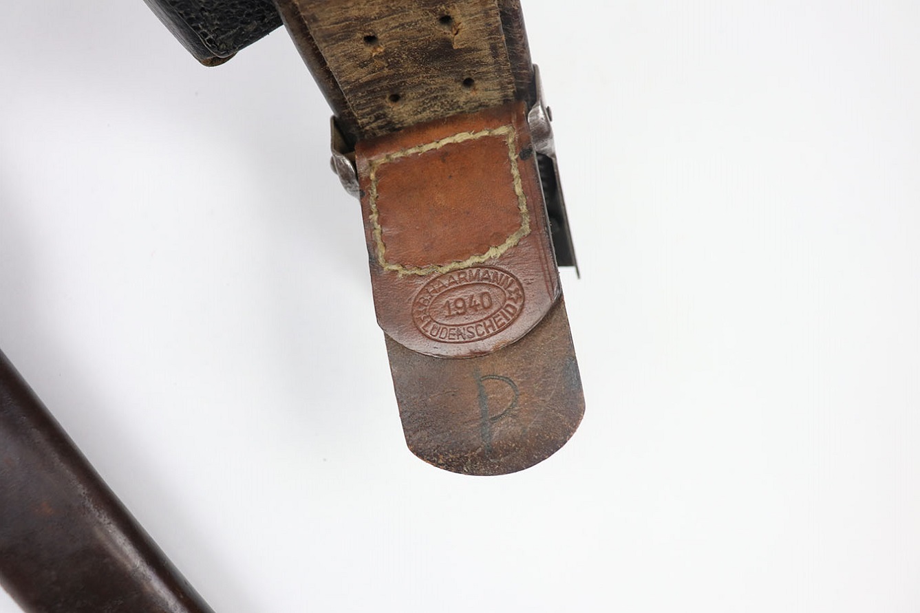 6/4/21 – This is a nice WW2 German accessory rig for a K98 collector. Included is an original belt, buckle, two ammo pouches, and k98 bayonet. The buckle is an enlisted man’s buckle, with leather tab dated 1940. The belt is completely intact with some mild use and aging wear throughout. the two ammo pouches are complete and in great condition despite some mild surface mold on one of the pouches. The bayonet has a very nice blued blade, dated 1943 and “fnj” maker stamped. The scabbard doesn’t match but is also in great condition with no dents and some mild brown patina throughout. The leather frog is slightly worn but still completely intact and doesn’t appear to have any visible maker markings or stamps.