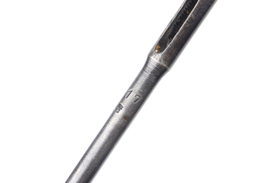 4/7/23 – This is an original 12.5 inch K98 cleaning rod from WW2. The cleaning rod is numbered “17” with a small waffen proof stamp underneath. The rod shows mild finish loss throughout, but no rust or pitting.