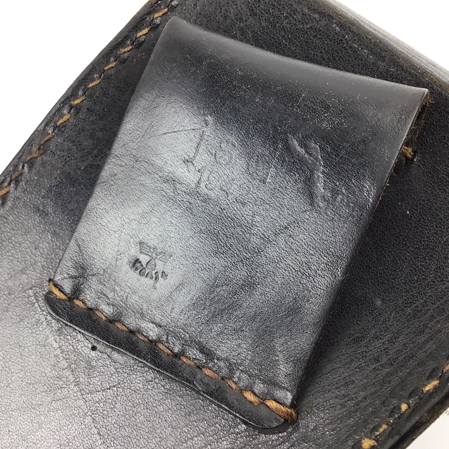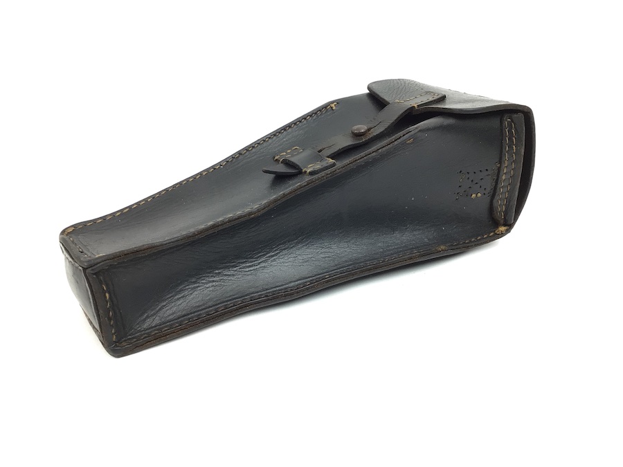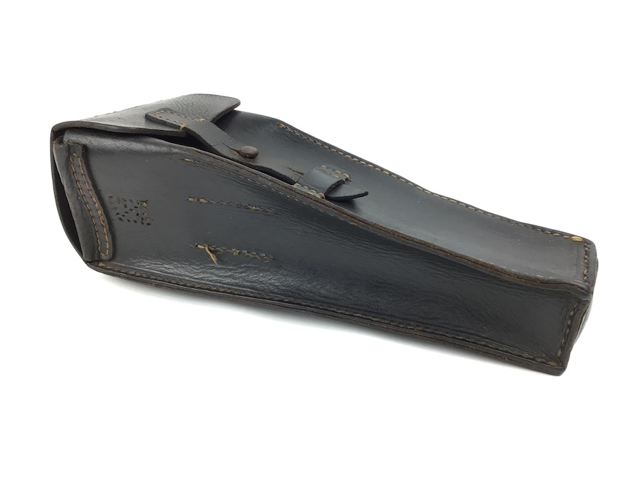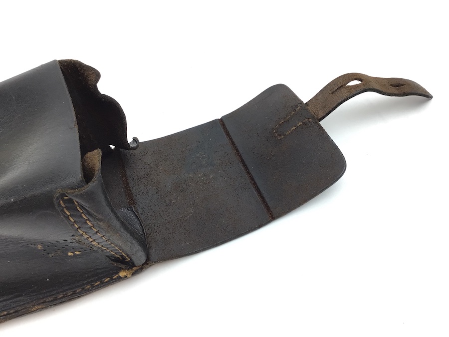 7/13/21 – Original and great condition, Mauser K98 grenade launcher and black leather carry pouch. The launcher is maker stamped “fnh” along with a military waffen stamp “WaA78”. The numeral “2” is stamped on the barrel. Clean barrel with great rifling. Some minor wear and pitting, but still in great shape. The case is maker and date stamped on the belt loop “jsd 1942”. Also waffen stamp “WaA14”. Although missing the carry strap, this piece has original and intact stitching. Strong leather and minimal wear. Clean interior.