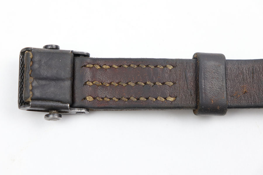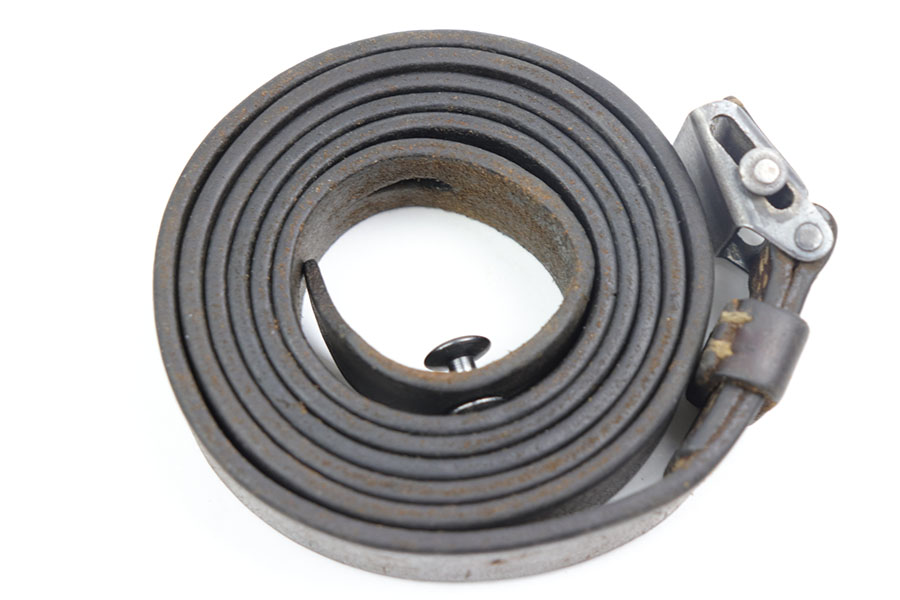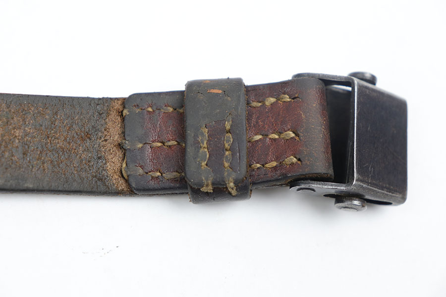 12/9/20 – This is an original WW2 German K98 rifle sling. Great overall condition with no weak areas or notable flaws. No markings, but shows typical aging and style indicative of WW2 German production.