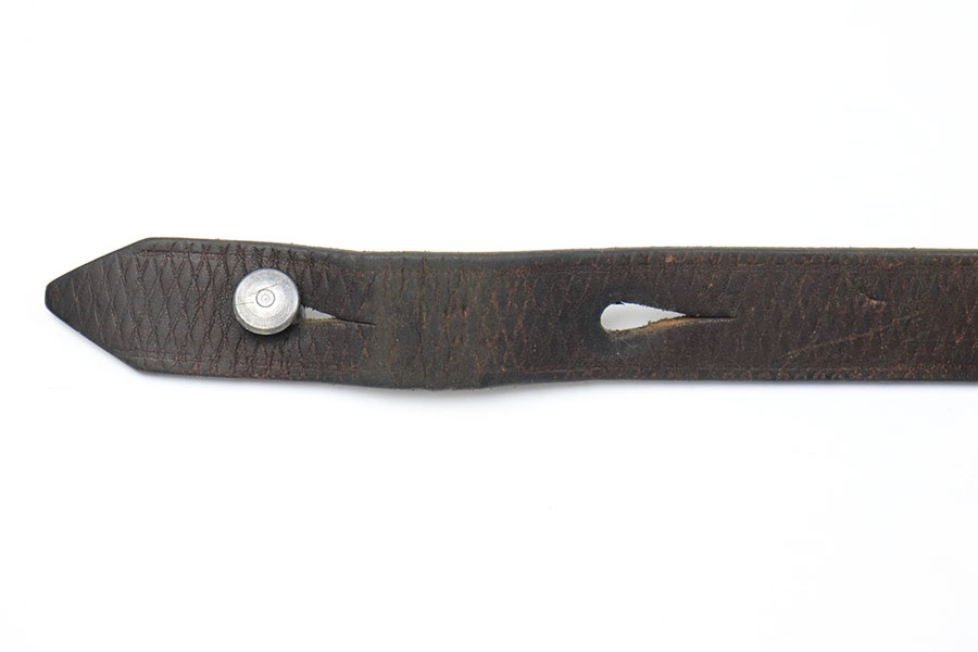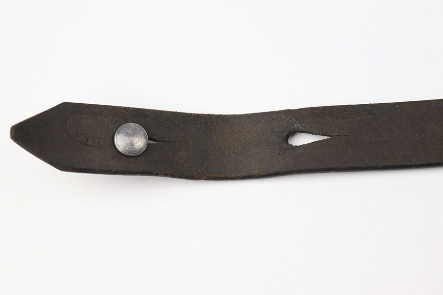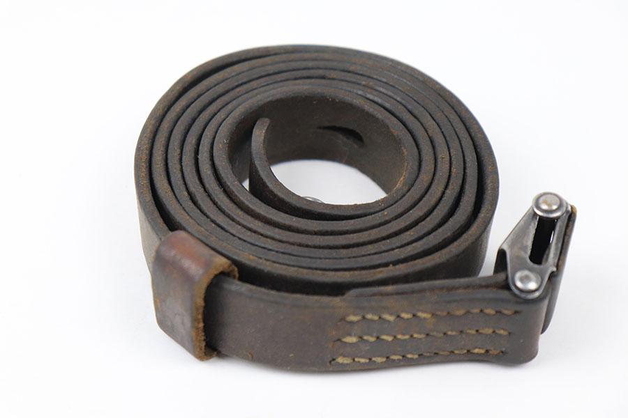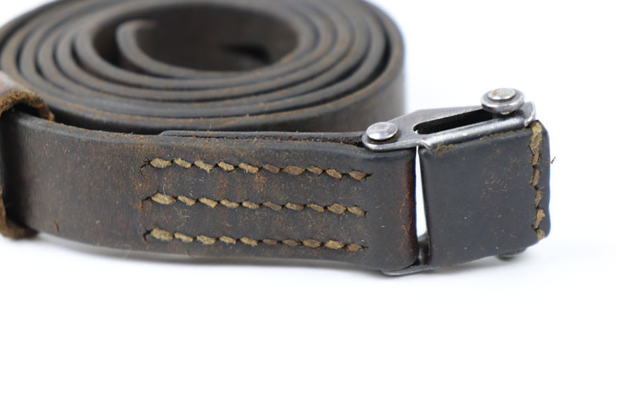 7/29/21 – This is an original K98 leather sling. The sling is in great overall condition with mild signs of use and aging but no major cracks or issues. The tail end of the sling appears to be maker stamped, but the stamp is barely legible. Measures 54 inches long.