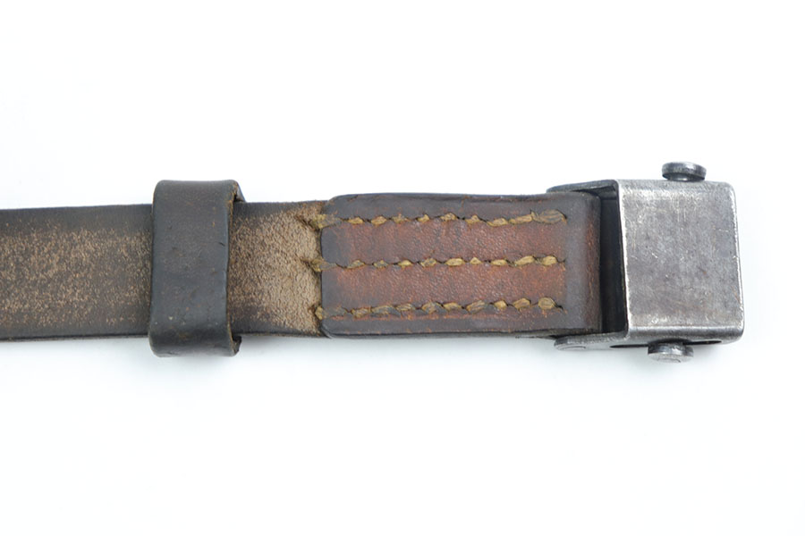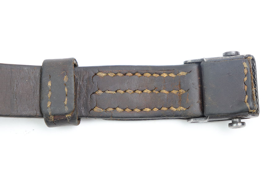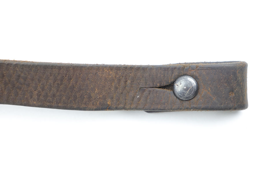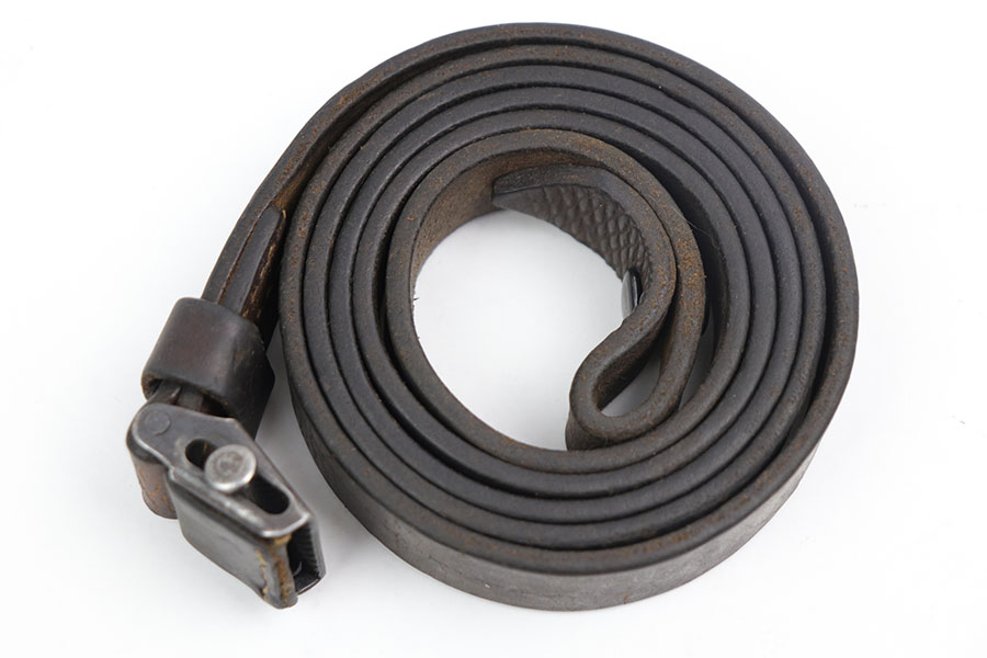 12/16/20 – This is a leather K98 or similar 8mm Mauser Rifle sling. There are no markings or stamps, but the leather and style both indicate WW2 production. There is some light surface wear in various areas, but generally this sling is in great condition. Shows normal signs of aging and use.