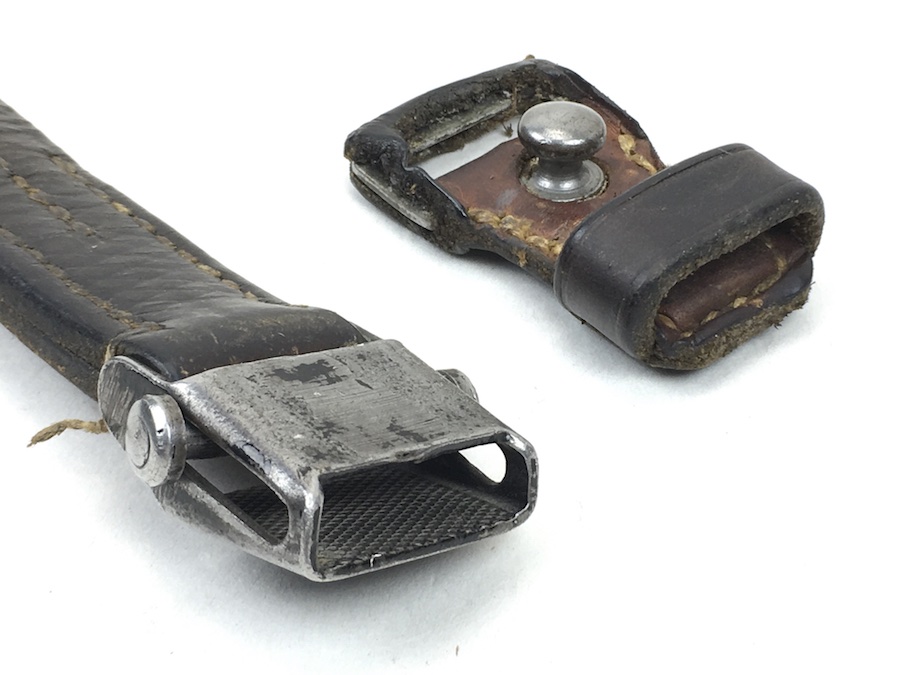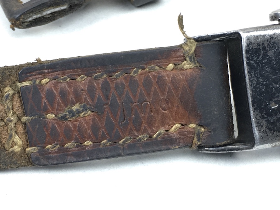 7/5/19 – This is an original WW2 era leather strap for a K98 rifle. The strap is maker stamped “jme” on the rear of the leather at the clasp. The leather is soft but completely in tact with no notable flaws. Some of the original herring bone texture is still visible on the exterior. The stitching is all original as well without issues. Guaranteed original.