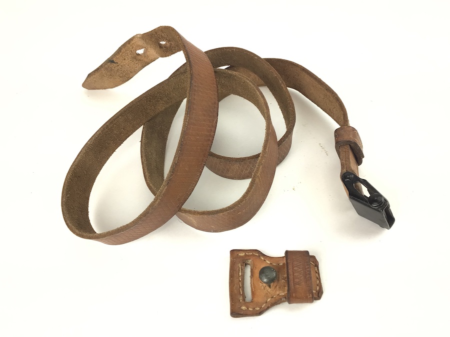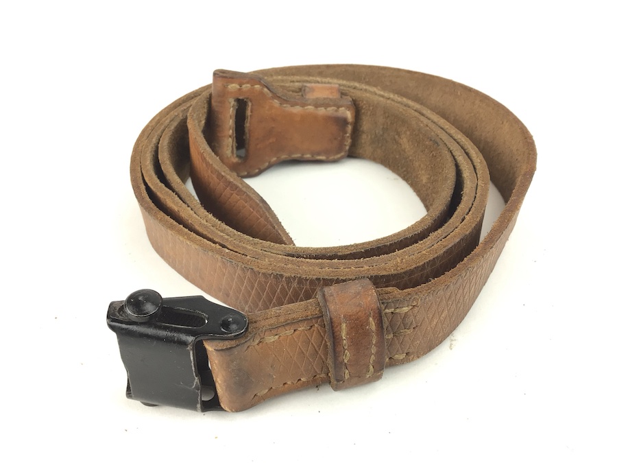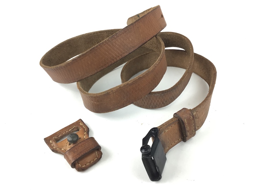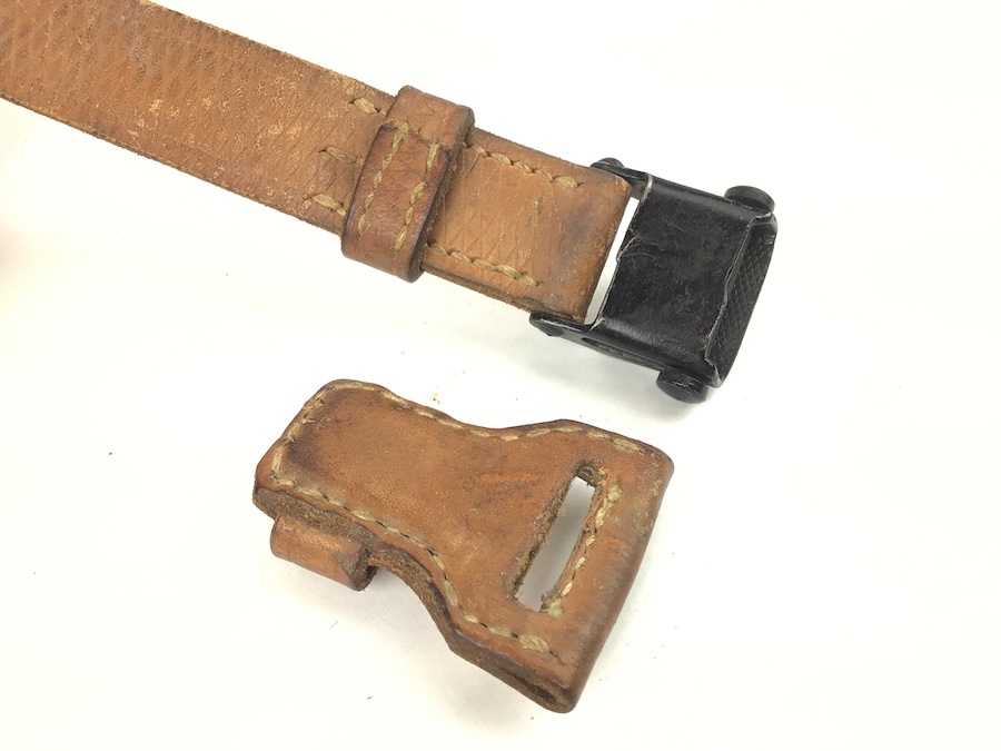 9/28/21 – Original and excellent condition. This is a late WWII or immediate post WWII sling for the German K98 rifle. Nice coloring and herringbone texture. All original and tight stitching.