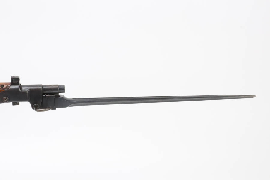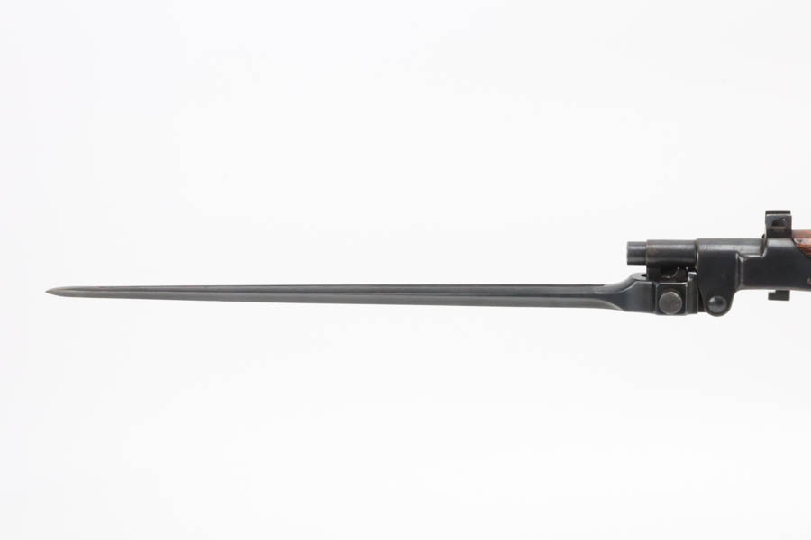06/25/2024 – For sale is an Arisaka Type 44 Carbine used by the Japanese Cavalry units. These carbines feature an underfolding spike bayonet. This rifle retains a nice deep bluing throughout but the Imperial Mum has been ground. The stock and handguard are in great condition but the usual dings and wear marks are seen on Arisakas from use. The bore is fairly bright on the lands but dark in the grooves. The rifling is visible when shining a light. The rifle is mismatched throughout.