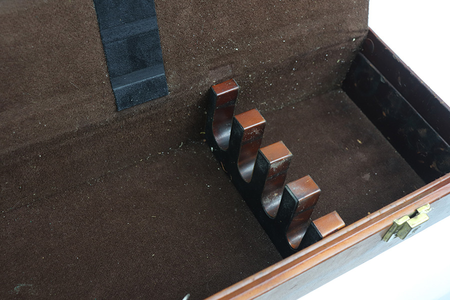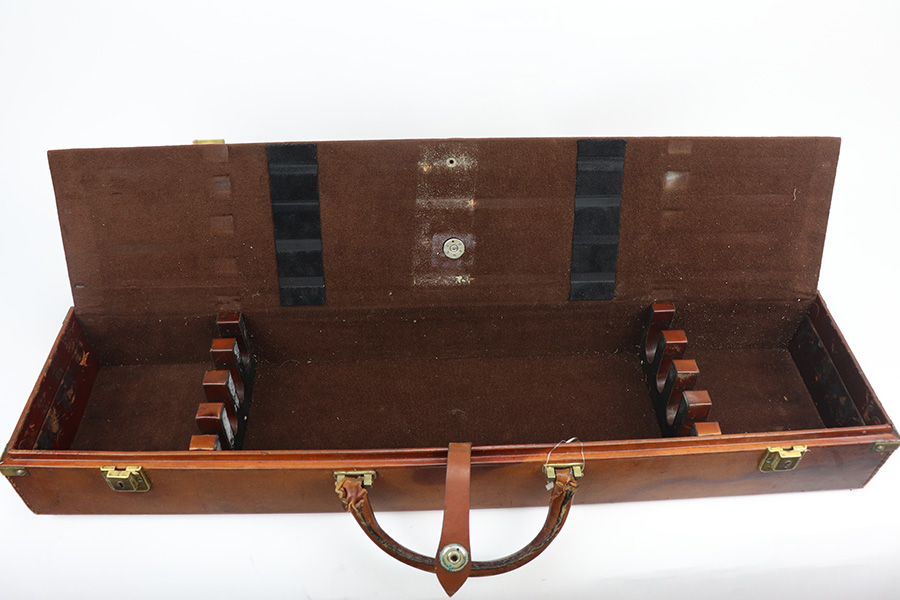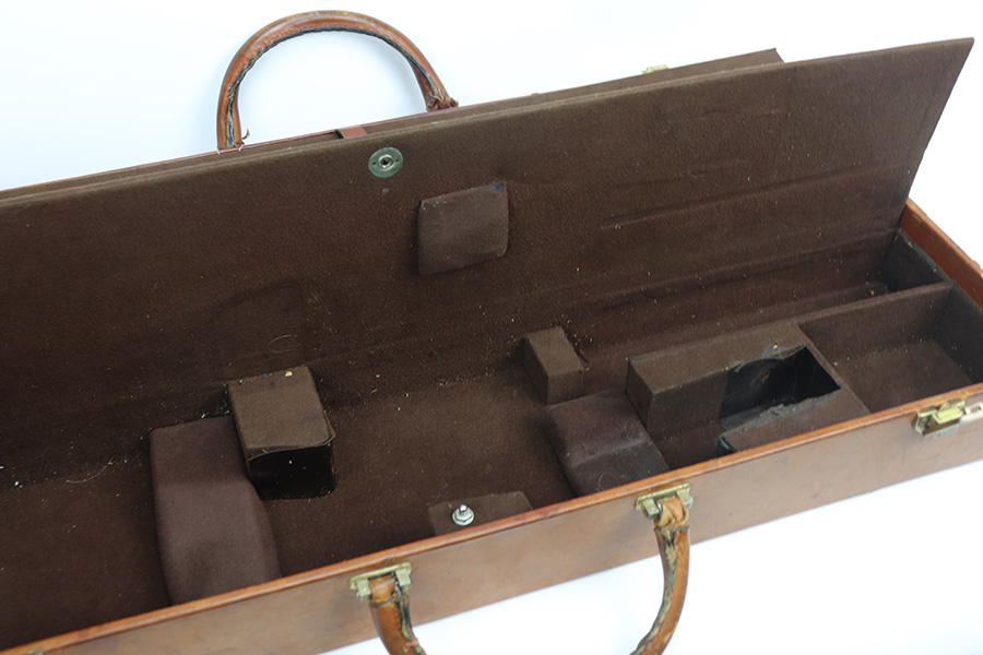 8/6/21 – This is a super nice leather carry case for a Krieghoff K32 Over Under Shotgun, of 1960s-70s vintage. Would accommodate up to 28 inch barrels in 4 calibers: 12, 20, 18 and .410 gauge. Excellent condition. Near impossible to find without a gun.