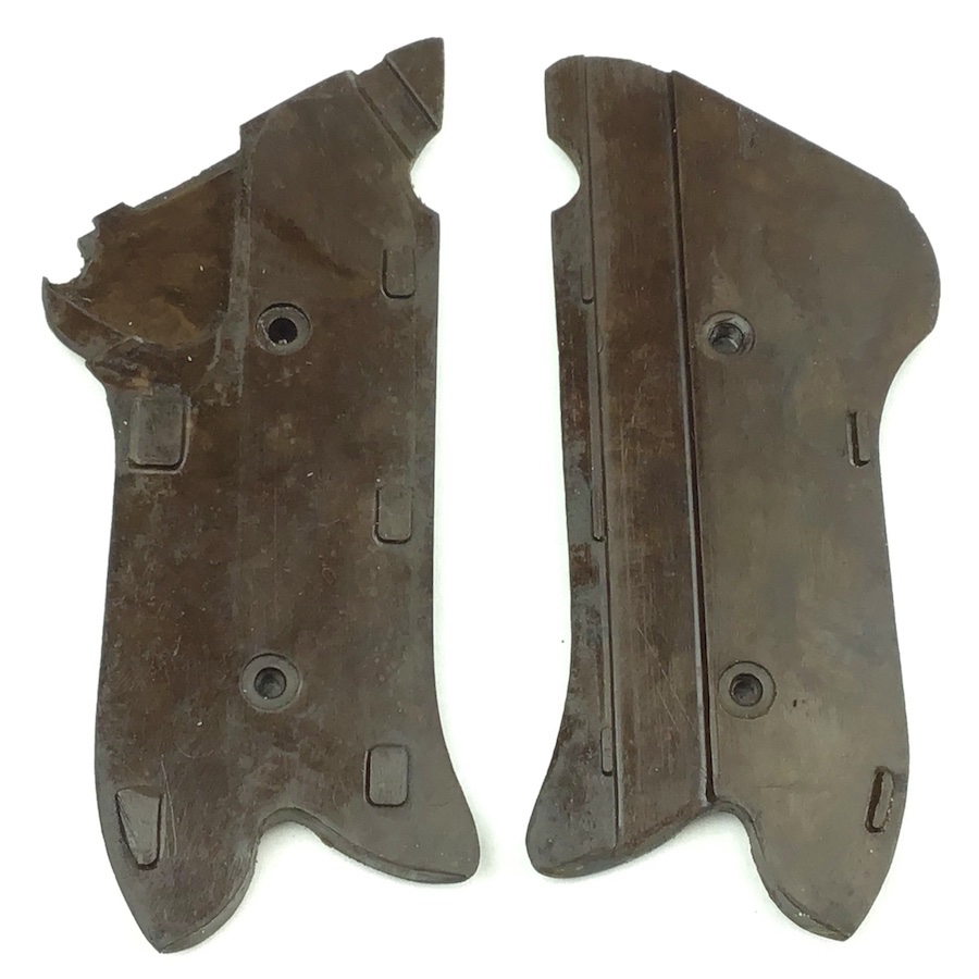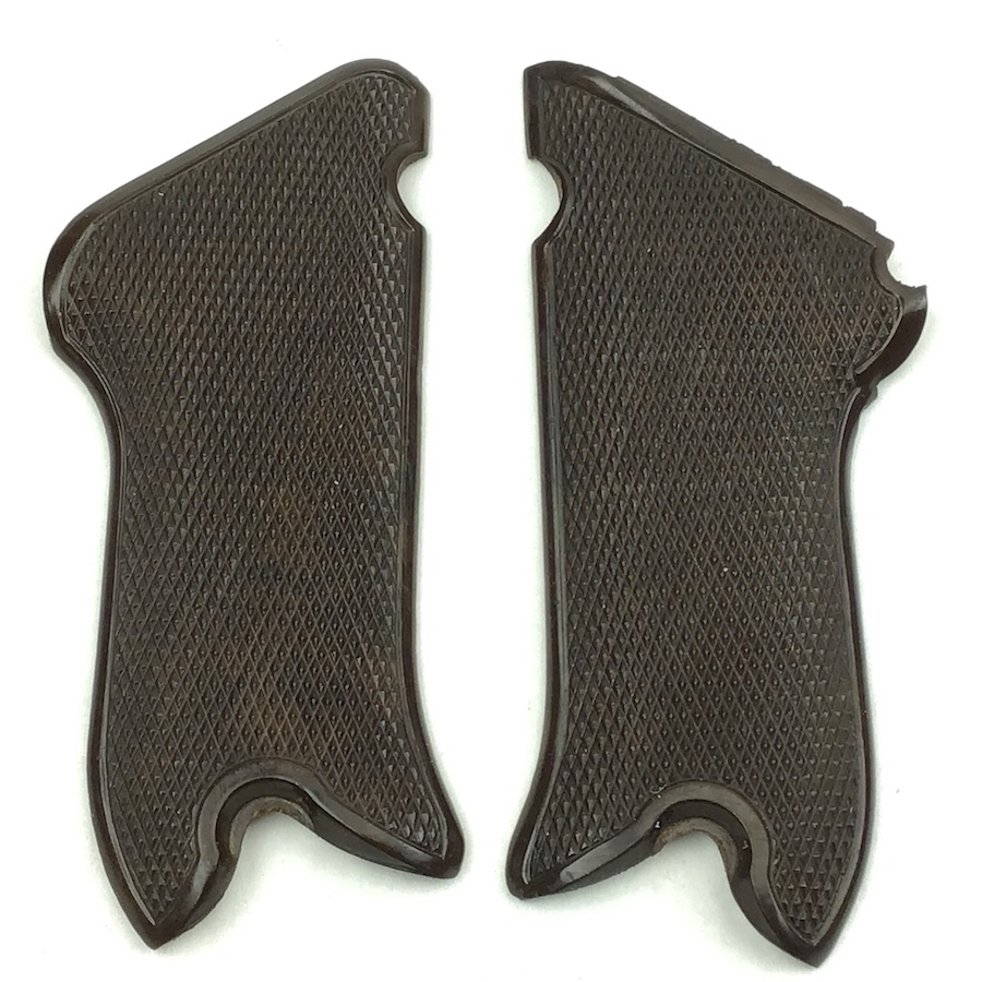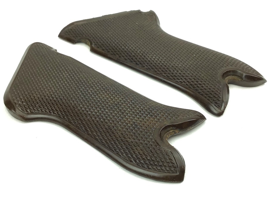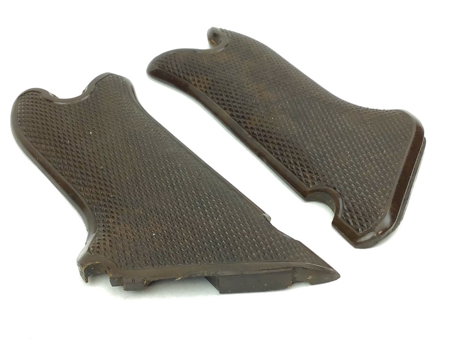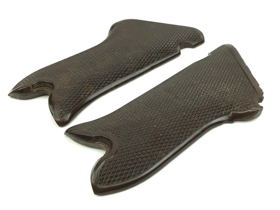 1/5/21 – This is an original pair of Krieghoff Luger grips. The grips are a dark brown (blood red) bakelite material which are specific to Krieghoff grips. The grips have a strong exterior checkering. The interior of the grips are excellent as well with no markings. No cracks or chips! Guaranteed original and authentic.
