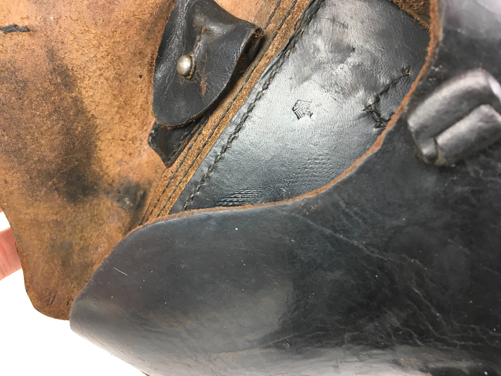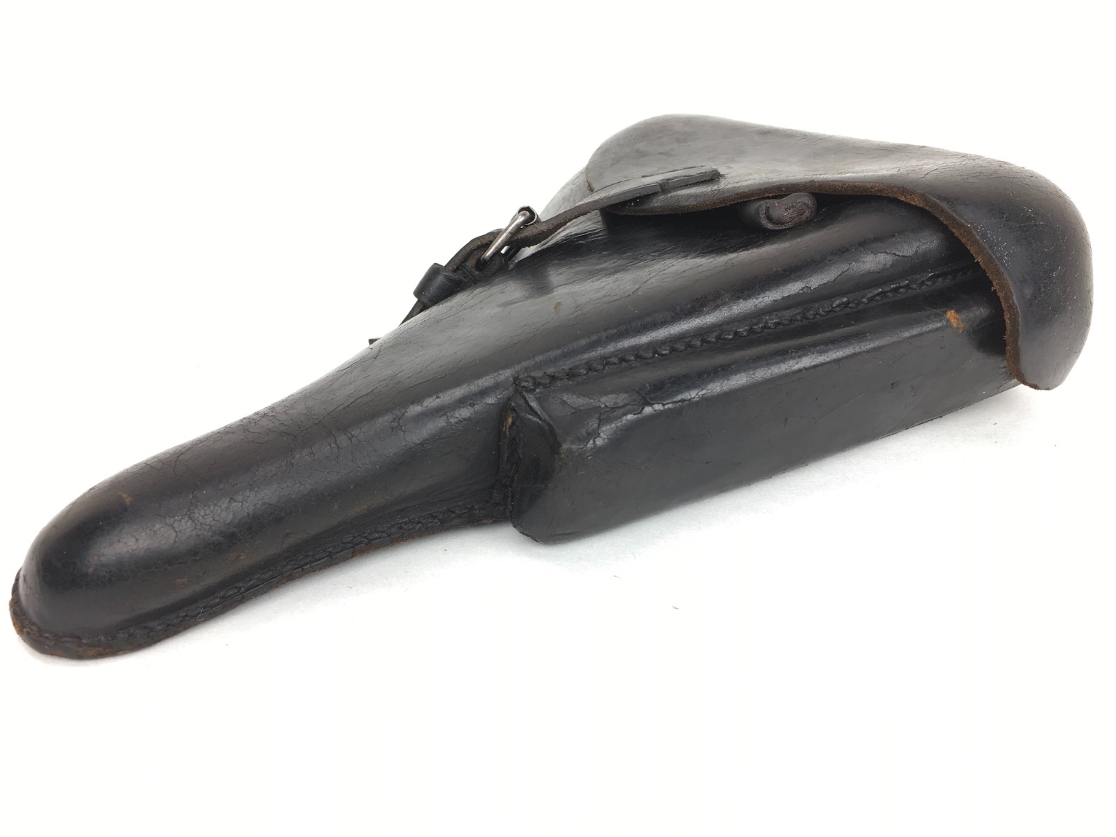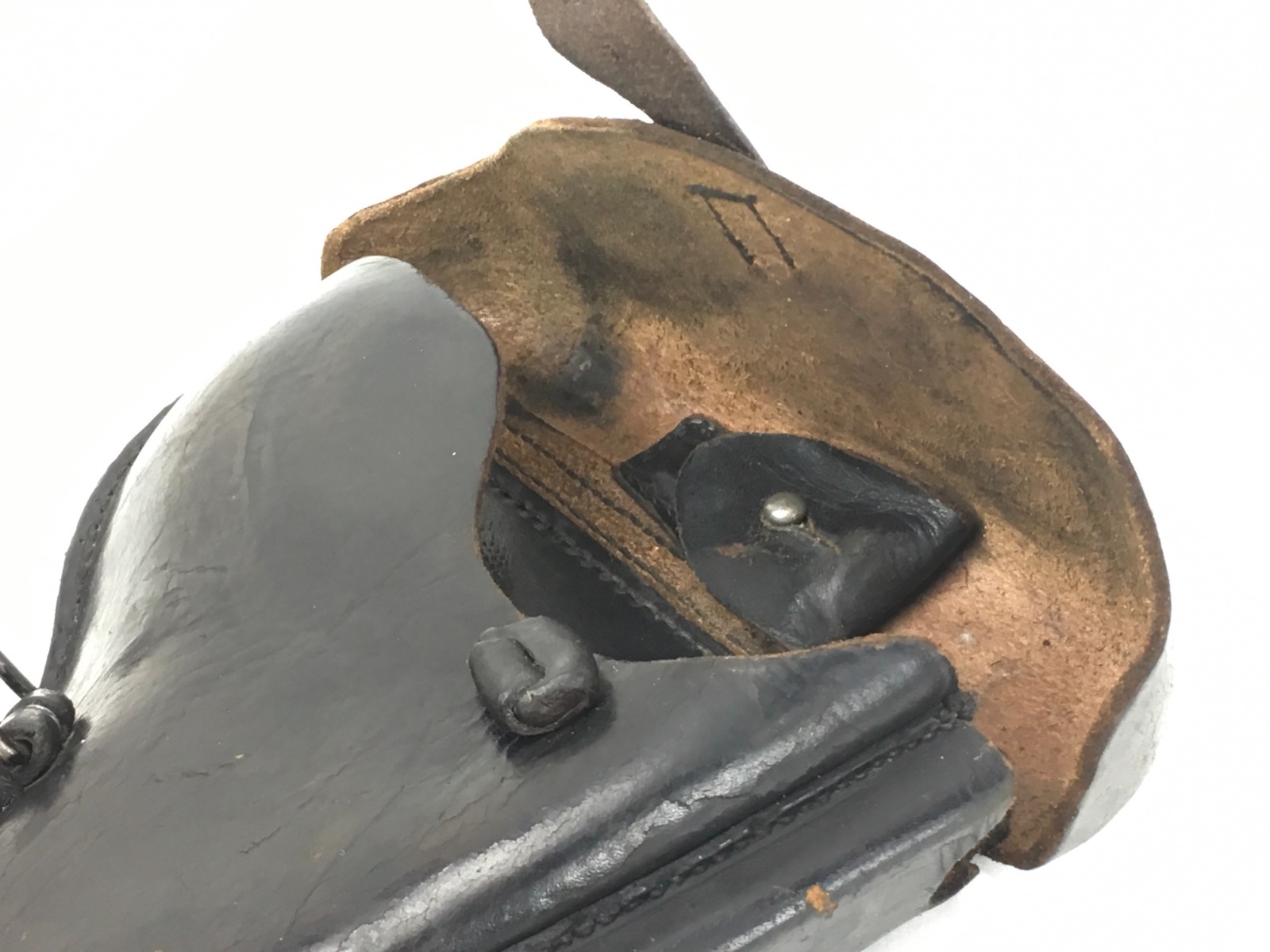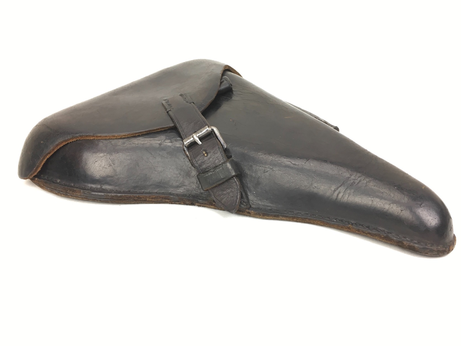 3/14/19 – This is an original WW2 production Krieghoff Luger holster. The holster has strong black leather and black stitching. Minor surface cracking on the mag pouch and on the front leather. The interior leather has the Krieghoff eagle/2 stamp. The closure strap and buckle are in great shape and function properly. Clean interior and secure lift strap. Overall the holster is strong and guaranteed all original.