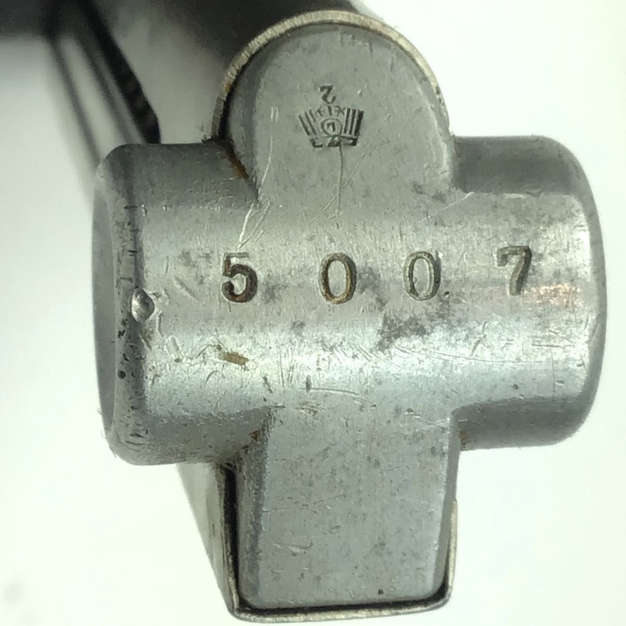 11/29/21 – Original and excellent condition. Krieghoff Luger magazine. Base is stamped with serial# 5007 along with the Luftwaffe Eagle. Strong smooth spring.