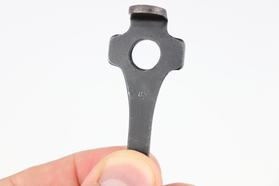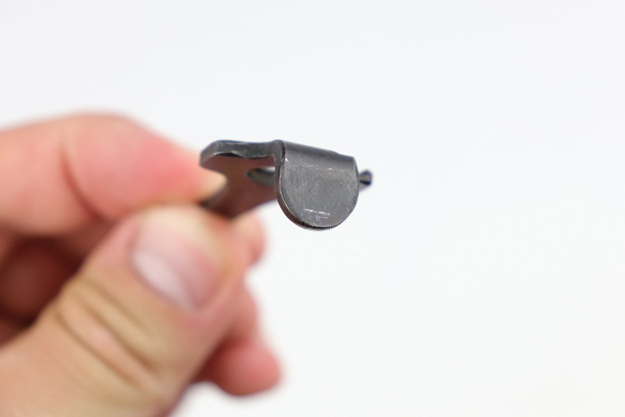 8/8/19 – This is an original Krieghoff Luger tool from WW2. The tool, as shown in photos, has a faintly stamped Krieghoff eagle/2 on the front center of the tool. The proof is a little difficult to see, but we confirmed it as Krieghoff and original under magnification. The tool is in great overall condition with minimal wear. There’s also a telltale machine mark on the top “hat” of the tool – see photos.