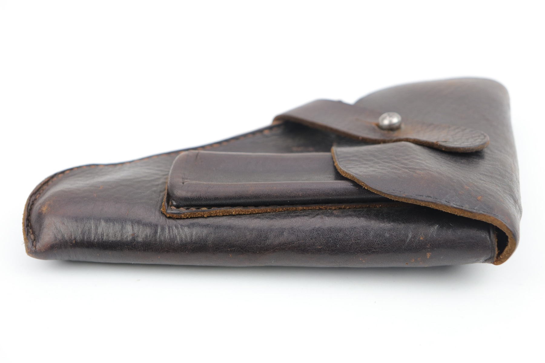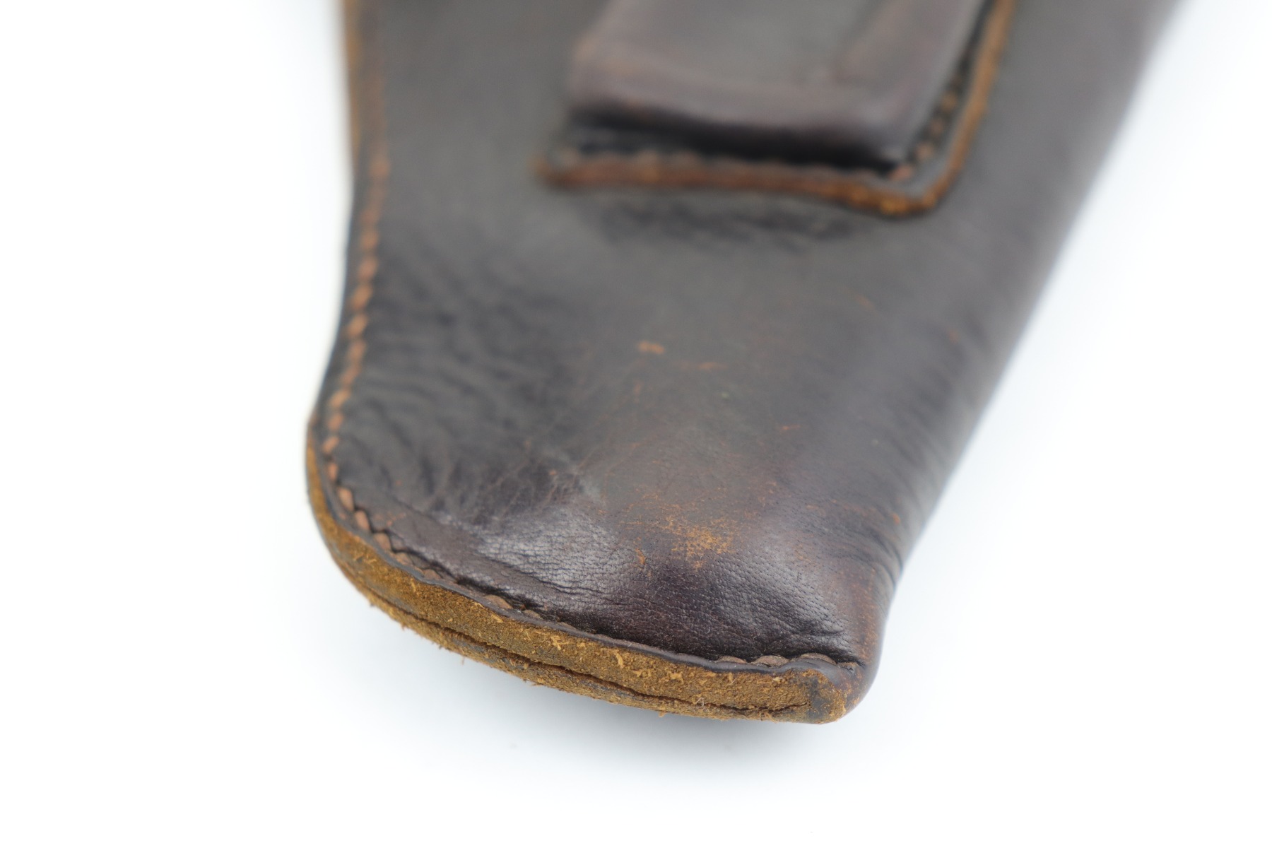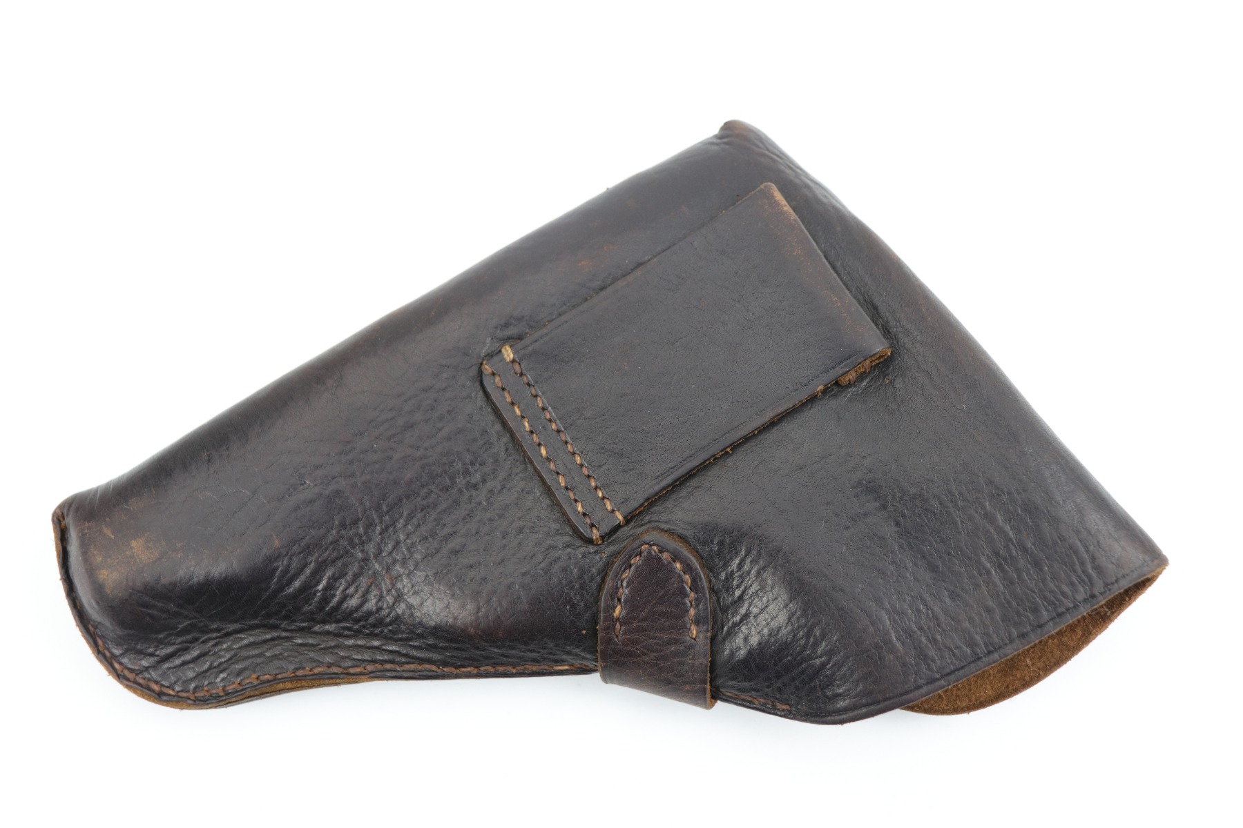 1/19/21 – This is an original and rare WW2 leather AKAH holster for a Kriegsmarine Mauser Model 1934 or an HSC. It is quite rare as it is both AKAH and Kriegsmarine marked under the closure strap. Both markings are faint but visible. Overall, the leather is in excellent condition – soft with light surface marks here and there. Most of the stitching is intact. These holsters are very hard to find.