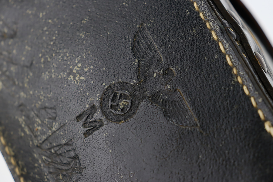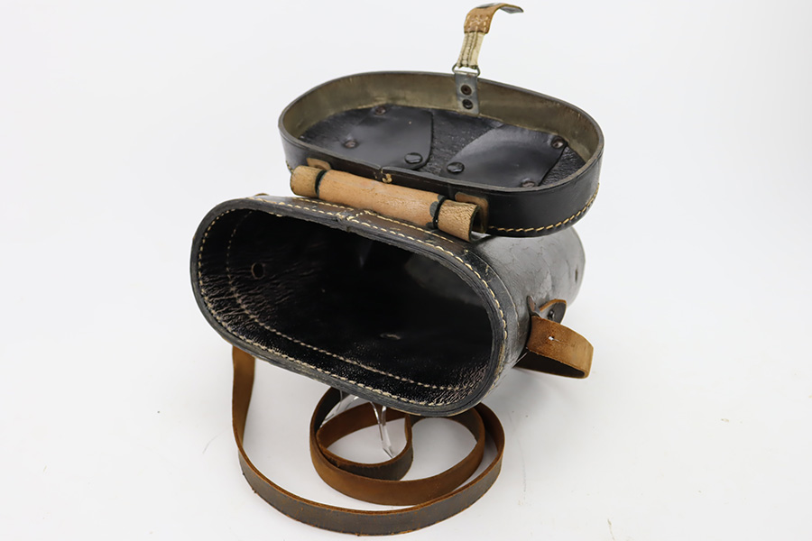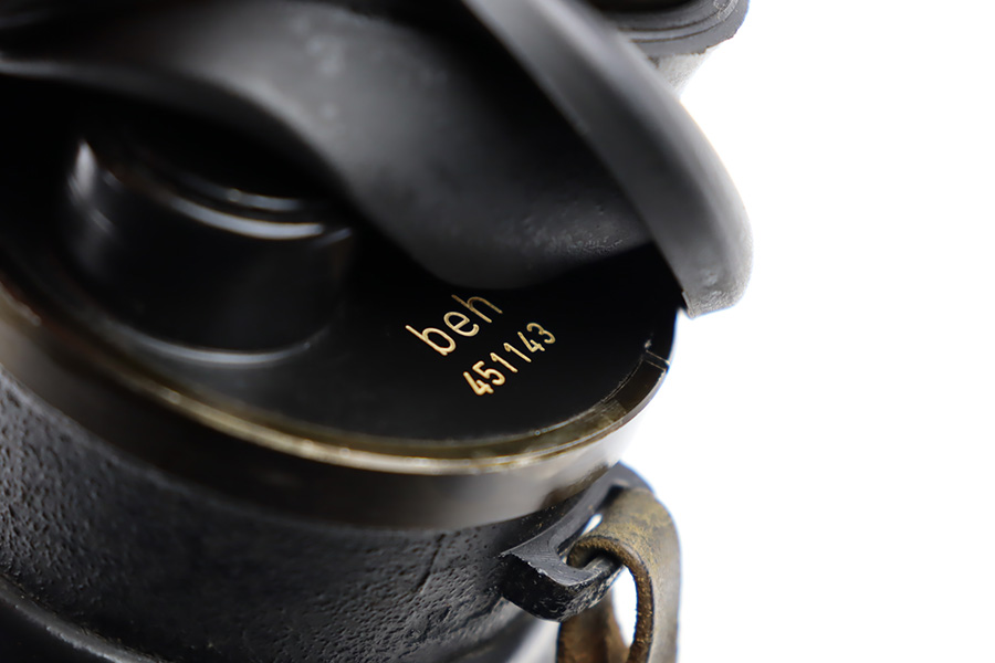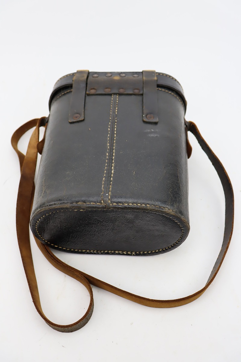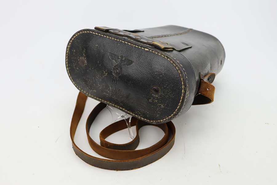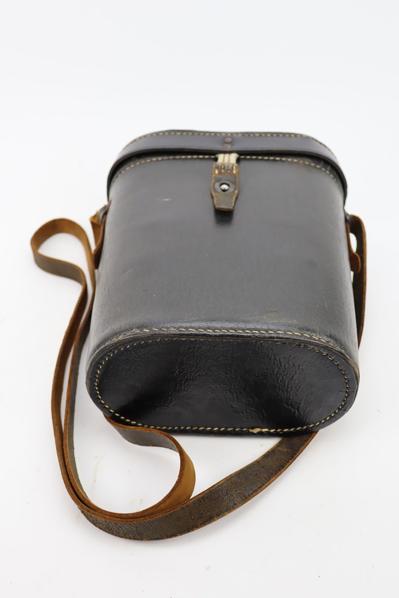 10/17/23 – This is a pair of WW2 original German Navy (Kriegsmarine) binoculars. The binoculars come with an original 1944 dated leather + ersatz carry case, and an original leather carry strap/sling. The binoculars are marked “beh 7×50” on the face of the left side. The right side has no markings or stamps. The exterior of the optics are in great condition. The outer rim of the lenses on each end of the binoculars have minty condition rubber covers. The optics are crisp, clear and have fully functional adjustment knobs. The case is Kriegsmarine stamped on the top lid, and the front is maker and date stamped.