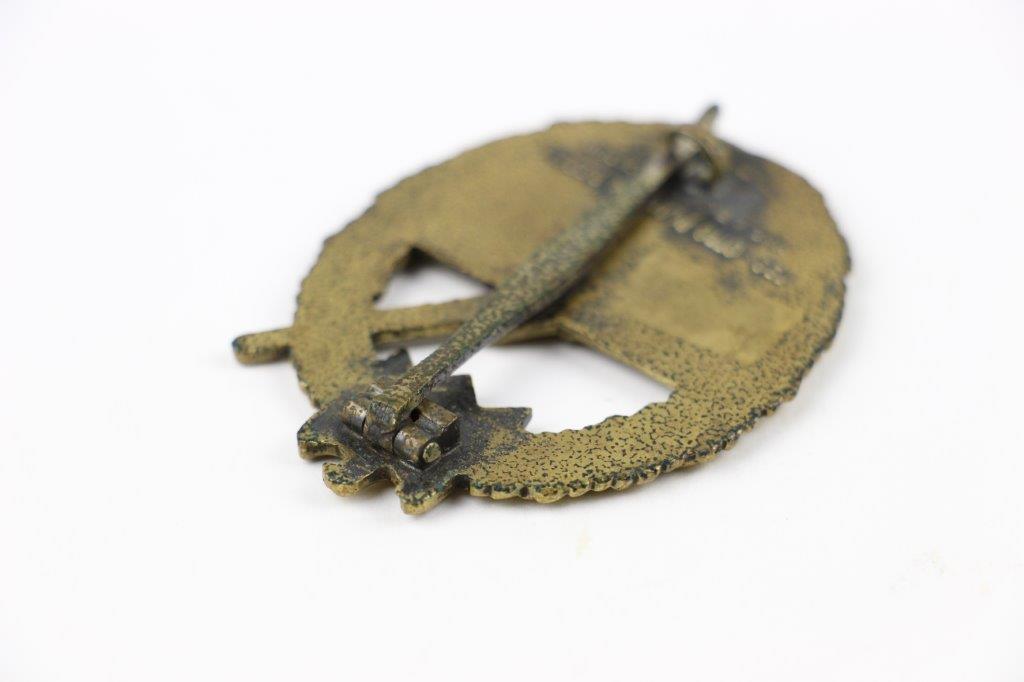 3/21/24 – This is an original WW2 German Kriegsmarine Coastal Artillery Badge by C.E. Junker. The badge shows honest wear and surface patina throughout. Some rub wear and natural aging on the front of the badge, but the detail is still distinct. The reverse has speckling patina and some roughness to the closure clasp, but the clasp is original and functional. The reverse is maker stamped as shown, with some traces of original finish present near the marking. The natural aging throughout is unmistakably original. Priced based on condition.
