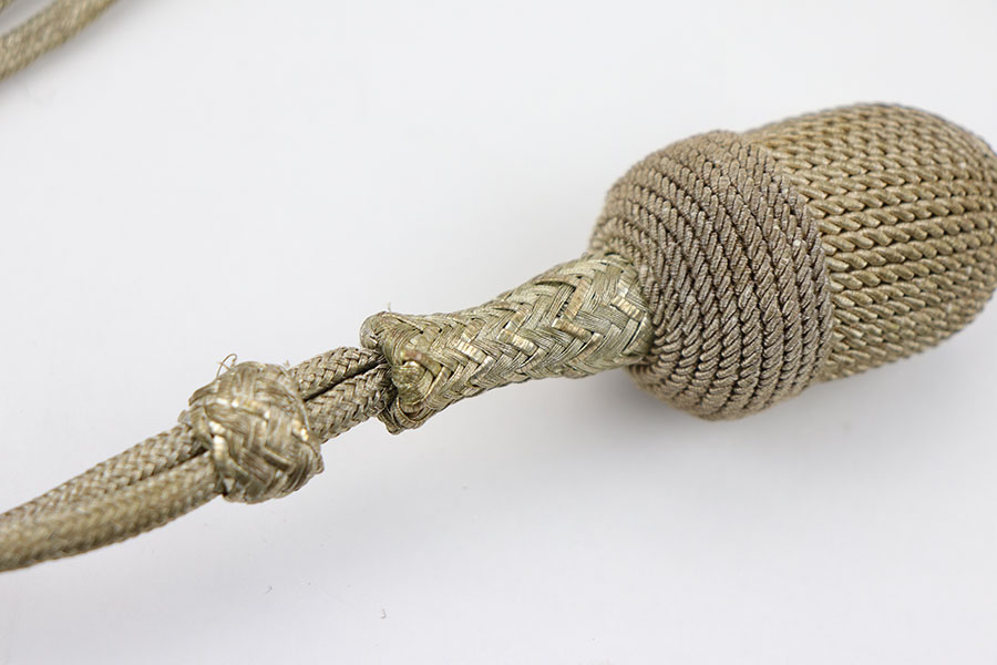 2/17/20 – This is a WW2 original Kriegsmarine Naval Officer’s Dagger Portepee. The portepee has a goldish-silver finish and in excellent condition. All original and authentic from WWII – a great addition to any Kriegsmarine dagger.