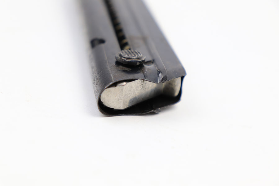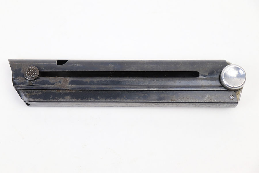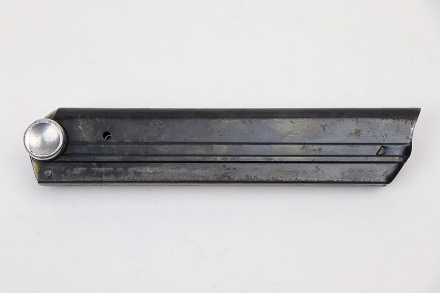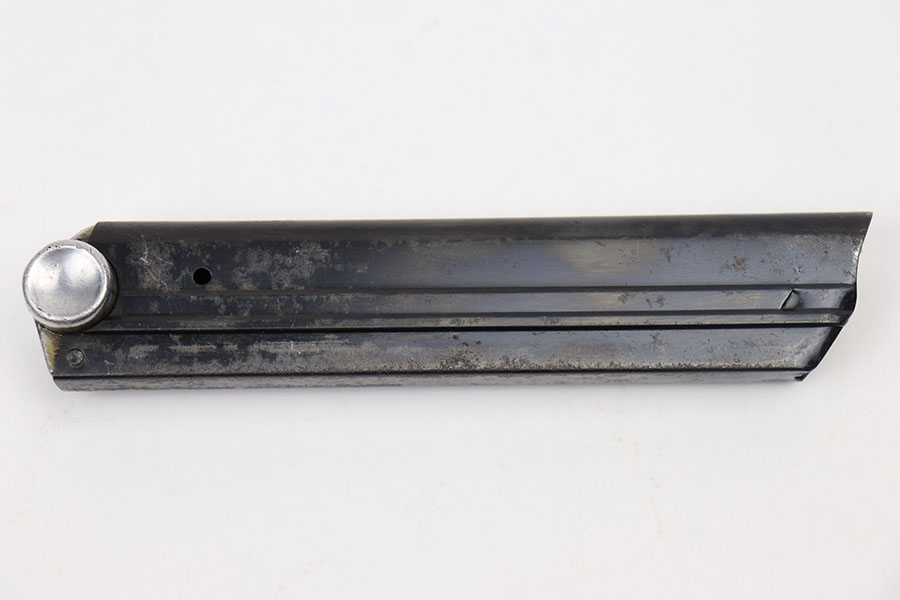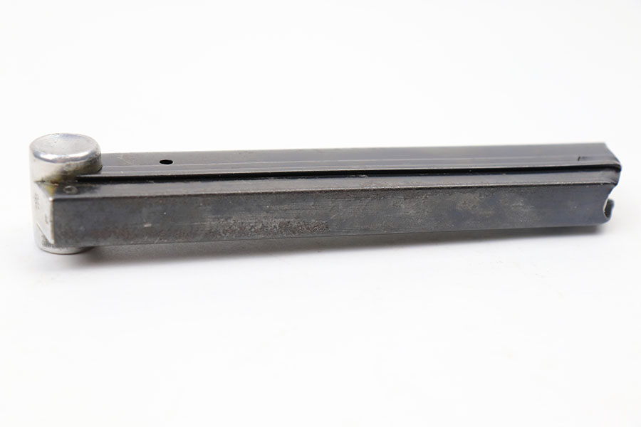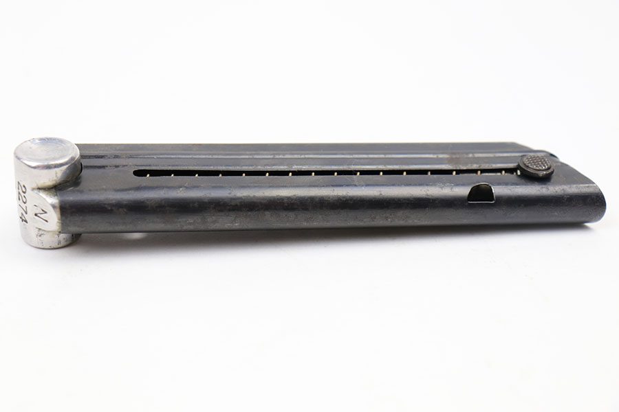 2/26/21 – This is an original WW2 production navy Luger magazine. The magazine is Nordsee property marked, serial numbered, and droop winged eagle/63 Mauser proof stamped. The base appears to be polished, and the price is reduced accordingly. The blued body of the magazine has minimal finish loss but there is small pitting in various areas on the tube. The spring is strong and fully functional.
