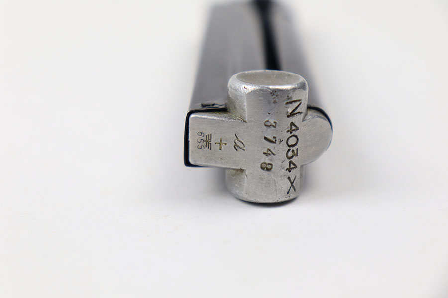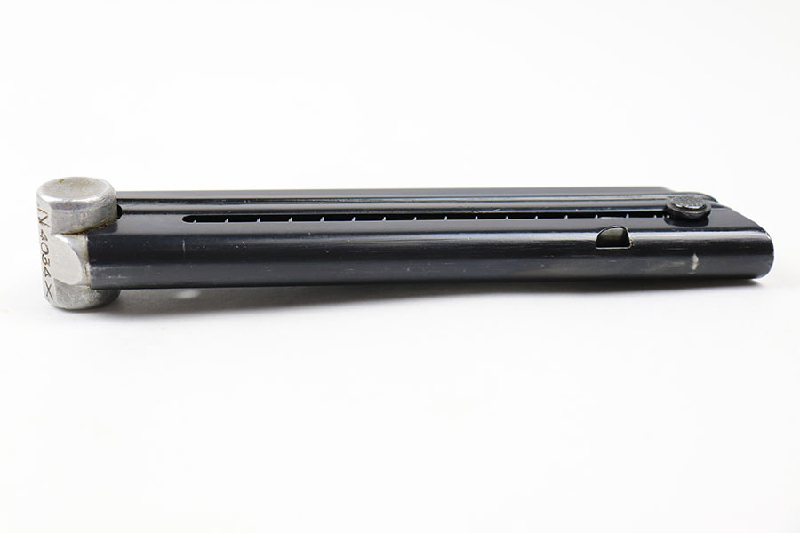 7/15/21 – This is a rare WW2 navy luger magazine. The magazine is in great condition with excellent bluing on the tube and an aluminum base. The base is property stamped “N4034X” serial numbered, and eagle 655 military proof stamped. The spring is strong and fully functional.