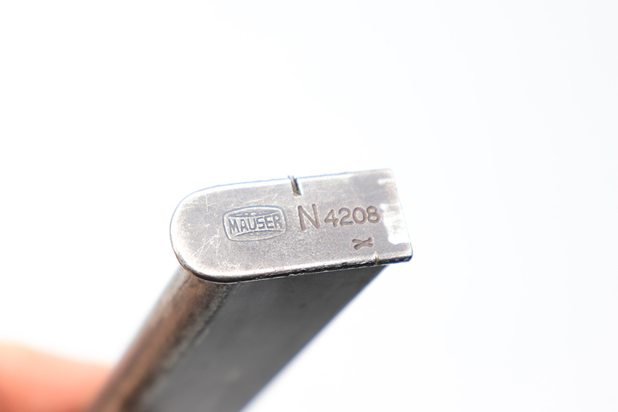 4/14/22 – This is an original Mauser model 1934 magazine. The base of the magazine is stamped with a Kriegsmarine property proof stamp.