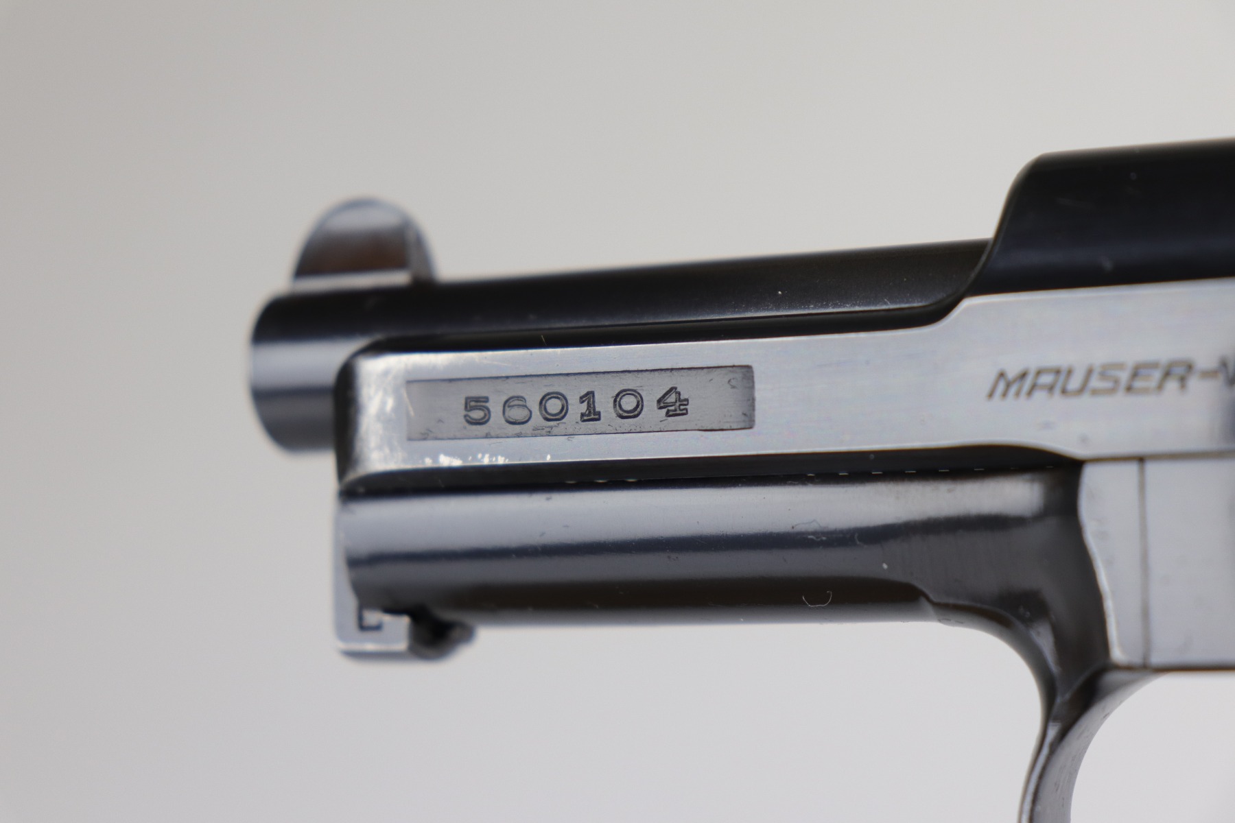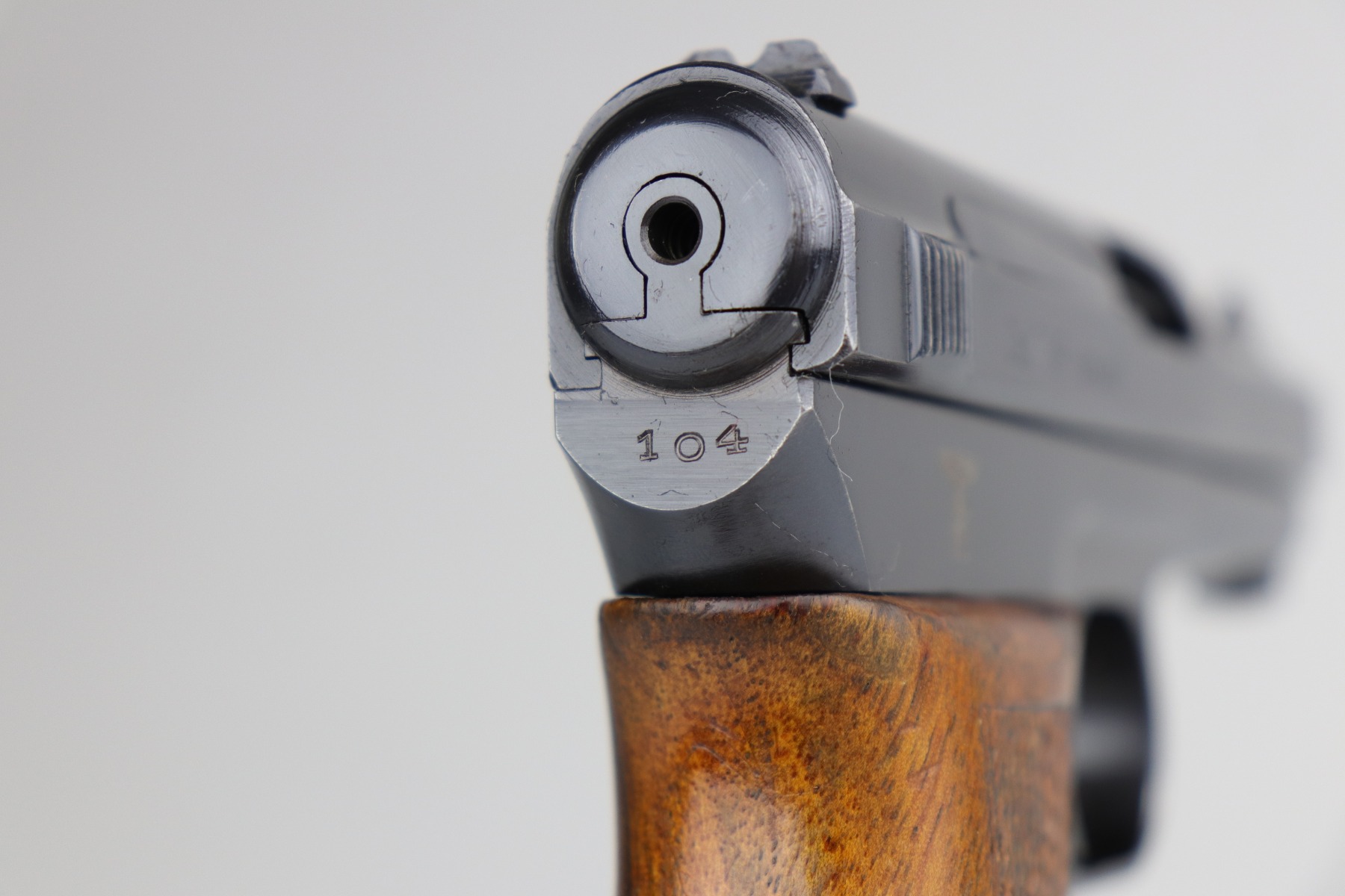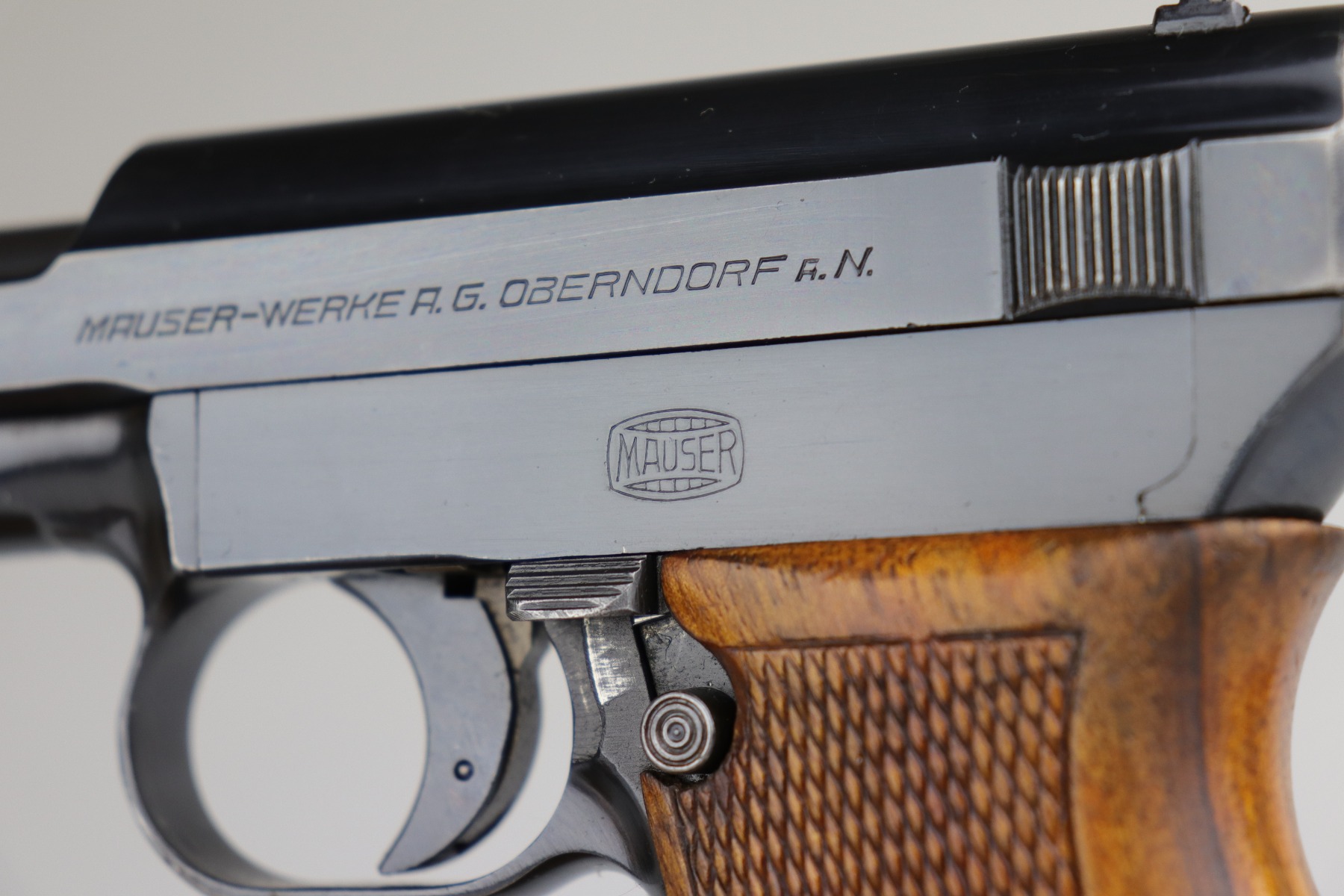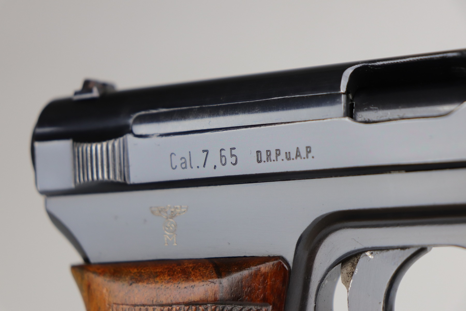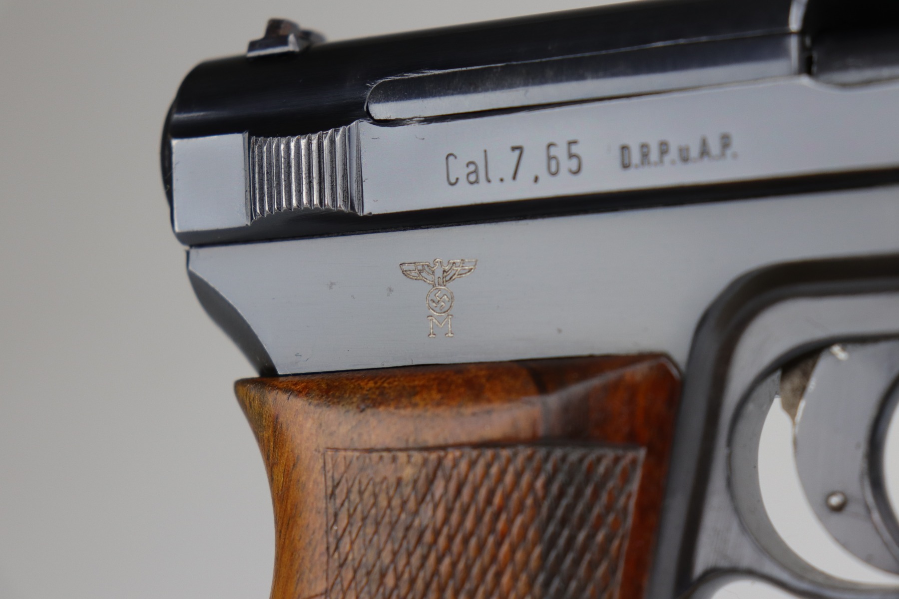 11/2/20 – This is a Mauser Model 1934 issued to the Nazi Kriegsmarine in 1934. About 23,000 Mauser 1934’s were procured and marked by the Nazi Navy from 1935 to 1941. This particular example is of the fourth variation, characterized by the Kriegsmarine marking on the right side of the frame and without a property number on the front strap. It is crown U proofed and all matching. It is in excellent condition, retaining about 95% of its original finish. There is minor muzzle wear, small spots of wear on the right side of the slide, and an area of wear on the front strap. The grip is original and excellent. The bore is excellent – shiny with strong rifling. NOTE: The listing comes with only ONE magazine, which is marked with Mauser banner on the bottom but no naval markings.