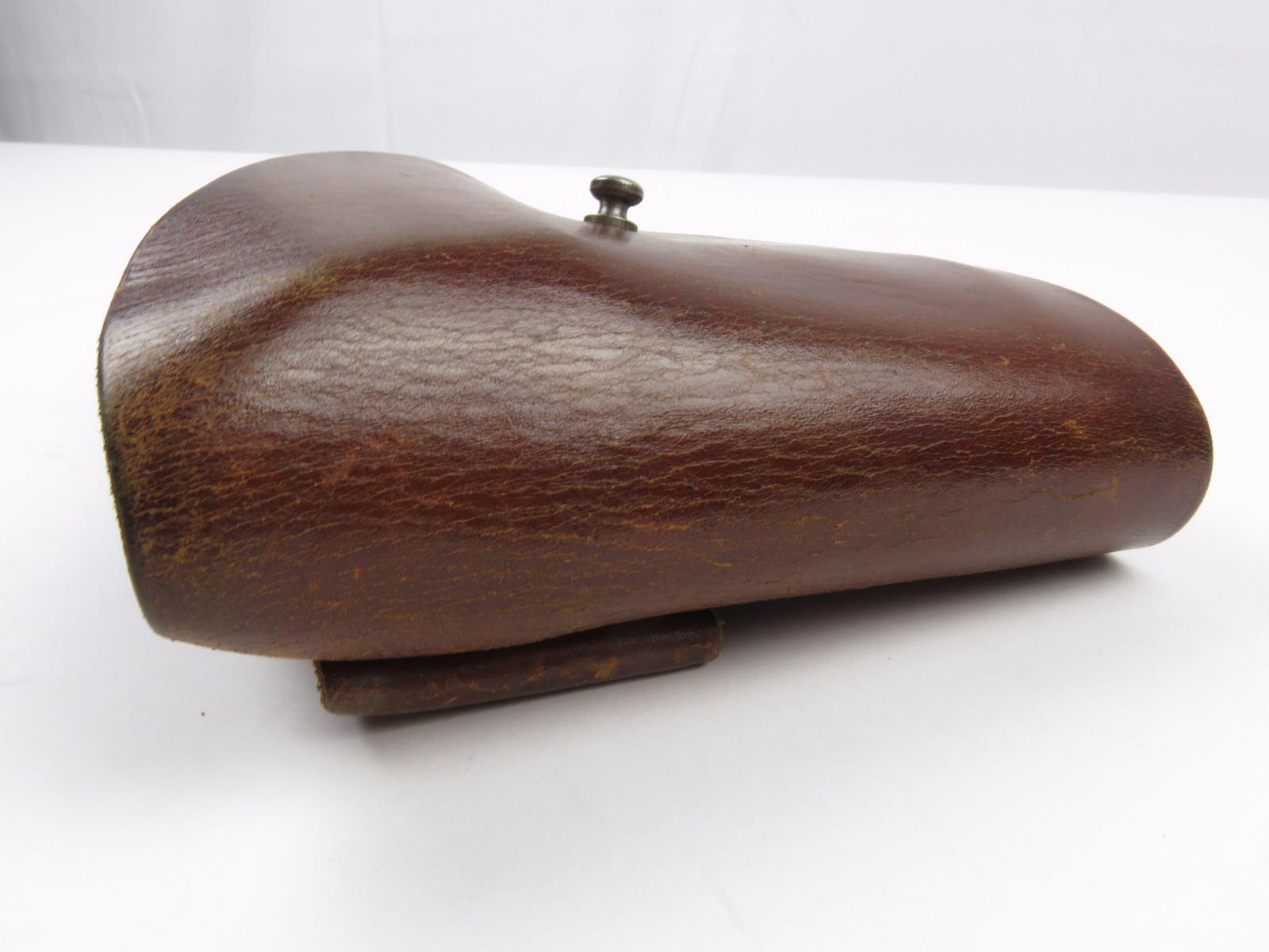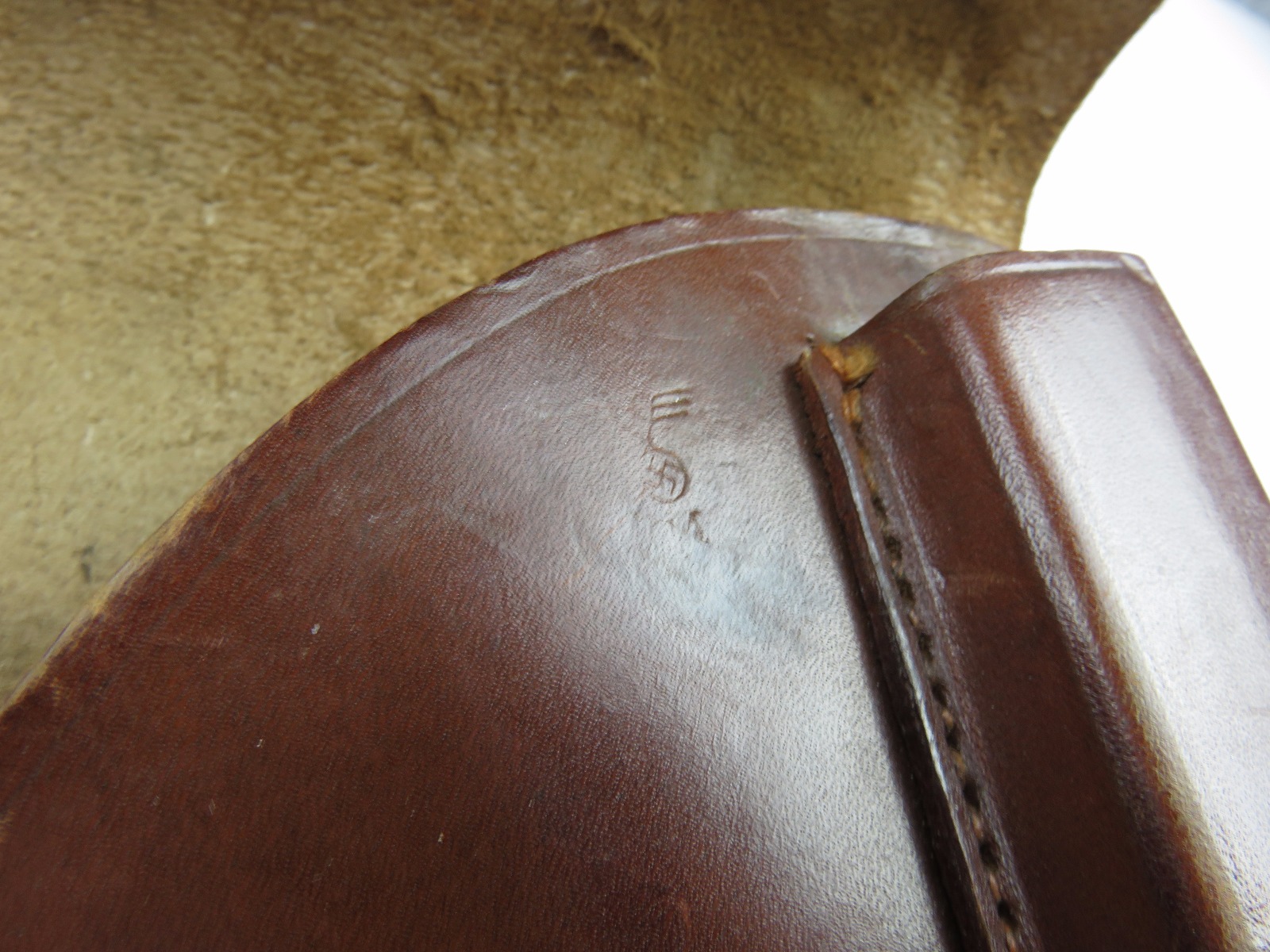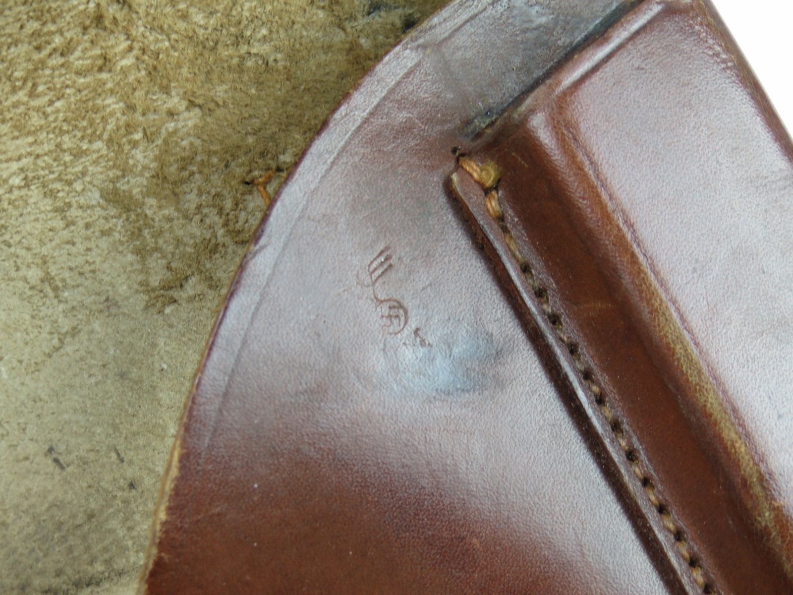 11/6/17 – This is an original WW2 production nazi navy (Kriegsmarine) holster. The holster is perfect for a Mauser HSc, or model 1934 (although this may be a little big for the 1934). The holster has very nice clean interior and exterior leather. Under the closure strap is a faded, but completely original eagle/M kriegsmarine stamp. The stitching is excellent and completely in tact. The top leather has some light surface wrinkles. Guaranteed original and authentic.