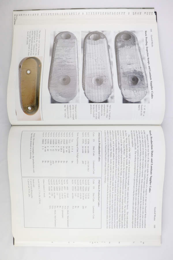 8/17/19 – Excellent condition hardcover. This book gives a brief history of each manufacturer of the late war German K98k Mauser. It is filled with photographs of the rifle’s features, original documentation, and serial data tables. Each chapter details serialization, and stock configuration, and gives a timeline of the introduction of Kriegsmodell features for each maker.