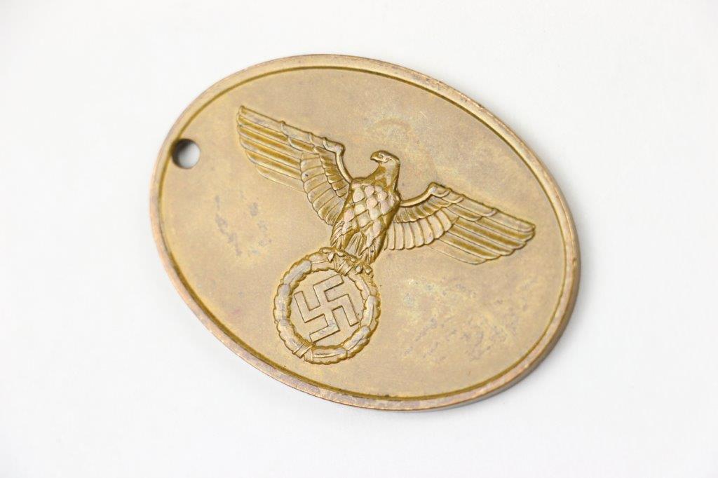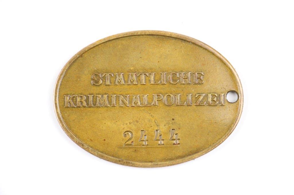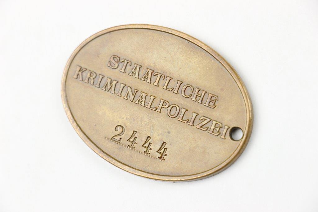 4/22/24 – This is an original WW2 German Kripo Badge, also known as a warrant disc. These were carried by the criminal police and allowed for “surprise” inspections and was the equivalent of a police warrant today. The badge has been cleaned, and shows natural aging and patina throughout. The details on the eagle logo on one side are in great shape with distinct features. The reverse is numbered “2444”, as shown. Verified as original. A somewhat sinister piece of WW2 history.