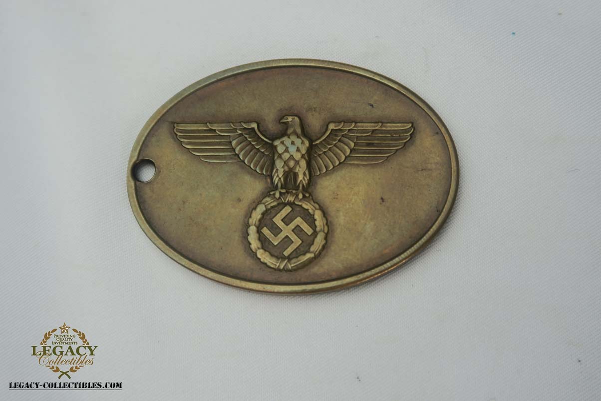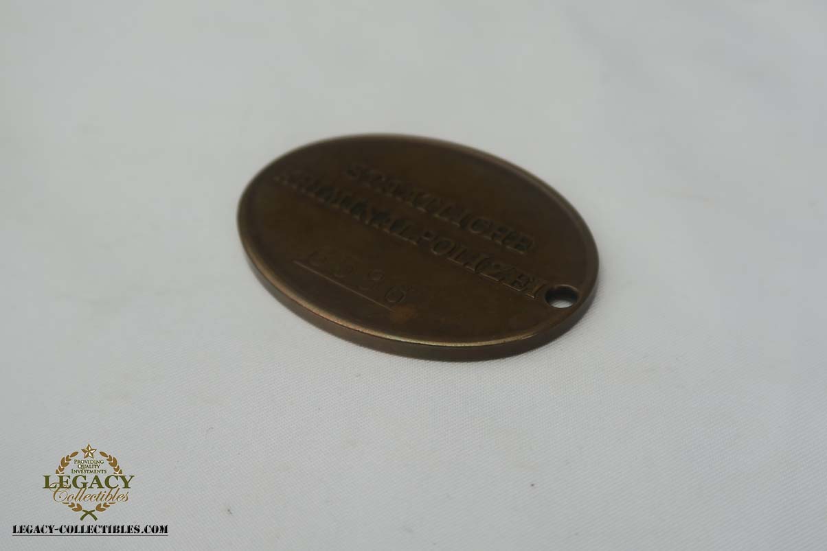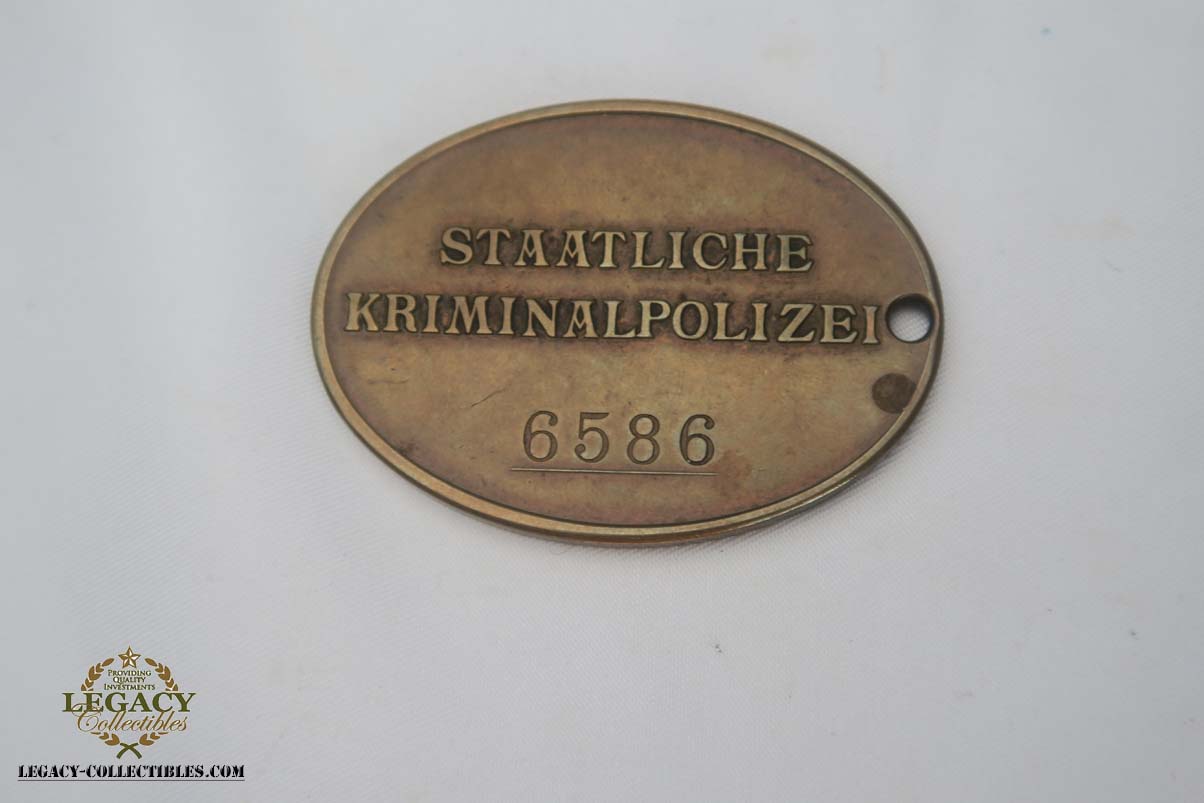 7/7/17 – This is an original, and rare Police German Kripo Badge/Disk. These were worn and used by German detectives during WW2. The detective division was called the Staatliche Kriminalpolizei or “Kripo”. There were three types of badges/disks used by the Germans: Gestapo, Staatliche Kripo and Gemeinde Kripo. Staatliche is the state level (this badge), and Gemeinde was the local level. This is guaranteed original and authentic from WW2.  Excellent condition.