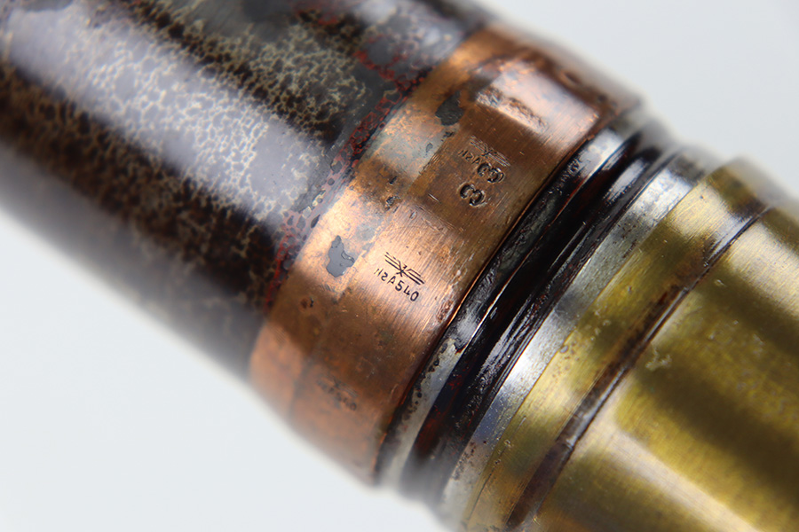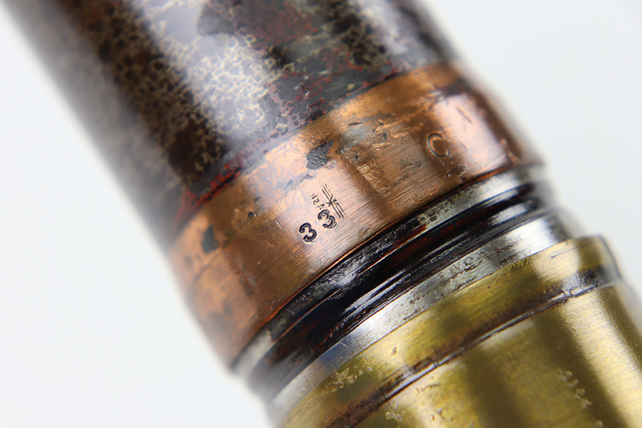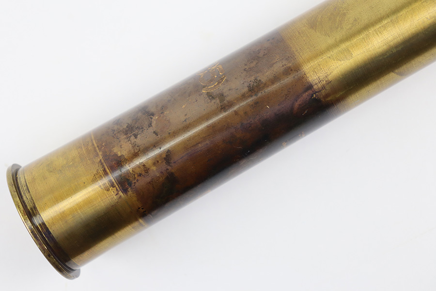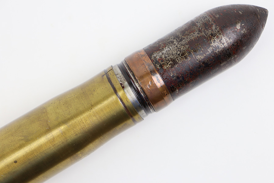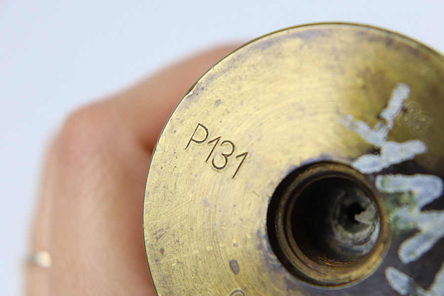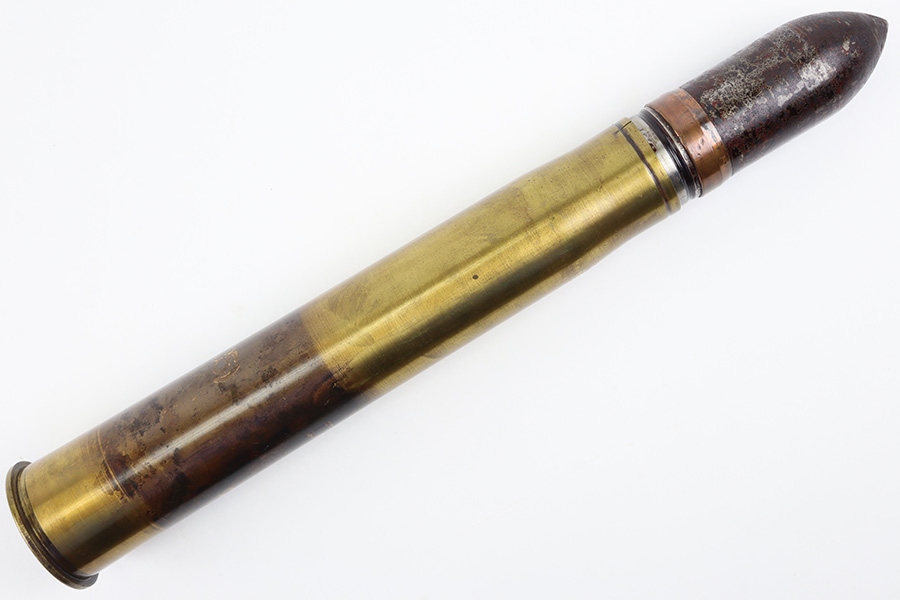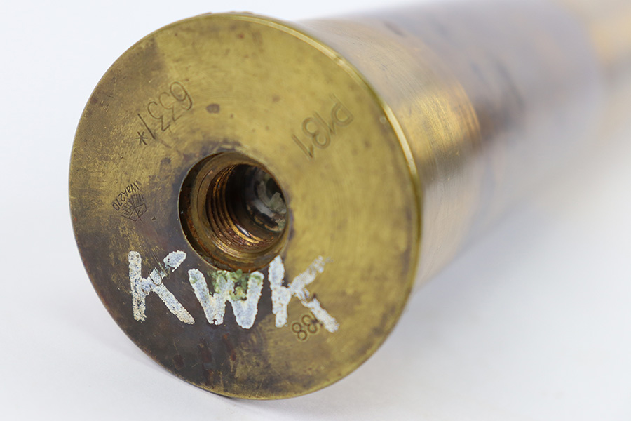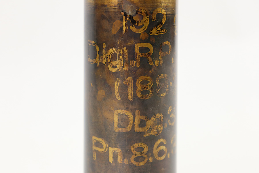 10/26/23 – This is an original 1936 dated German Panzer II or Panzer III 37mm tank round. The round is inert, and has markings on the side of the casing that look like they were burnt on with a stencil of some kind. Great overall condition with some natural patina and aging wear. The base of the shell is maker marked, waffen proof stamped, and 1936 dated.