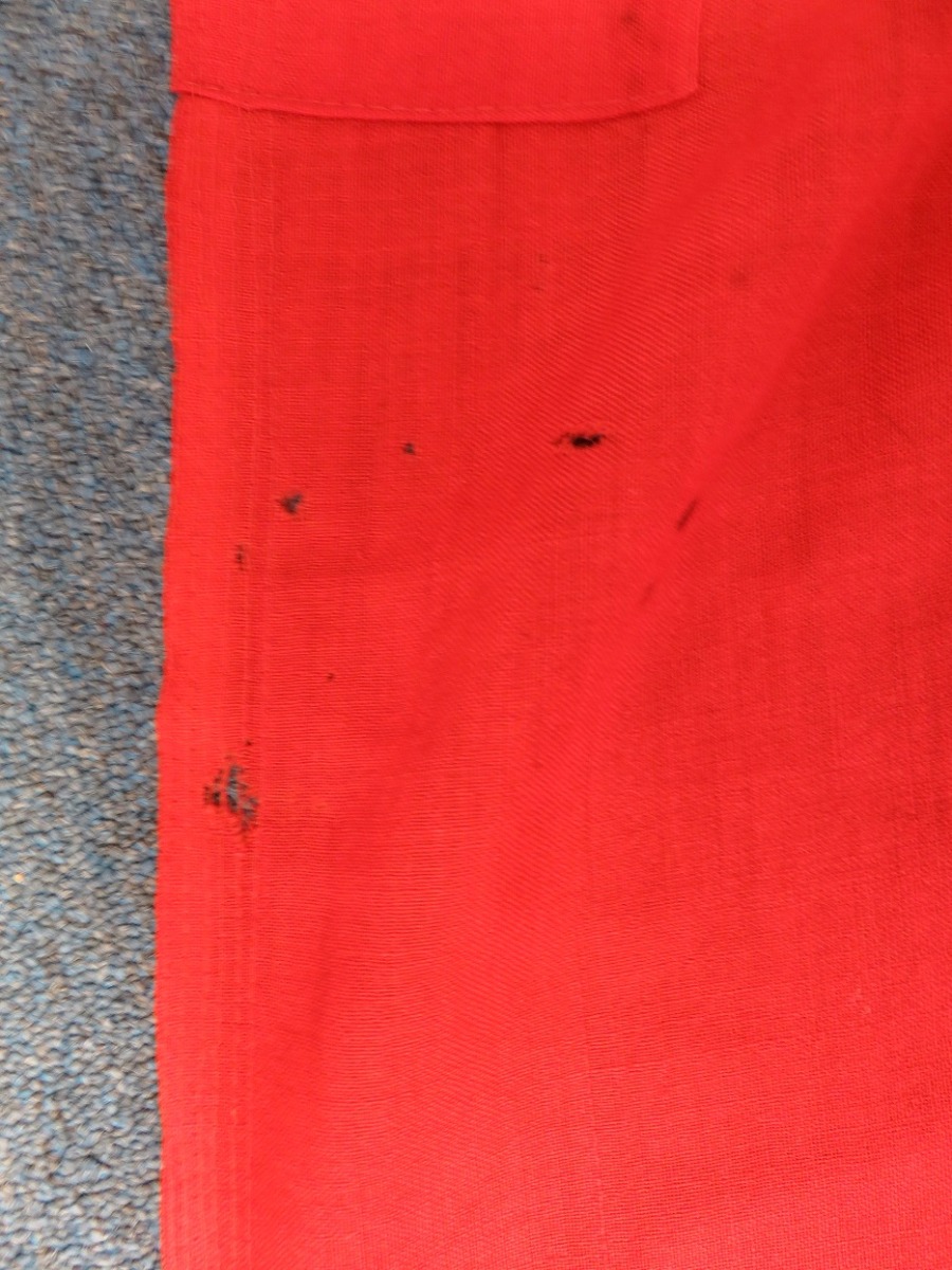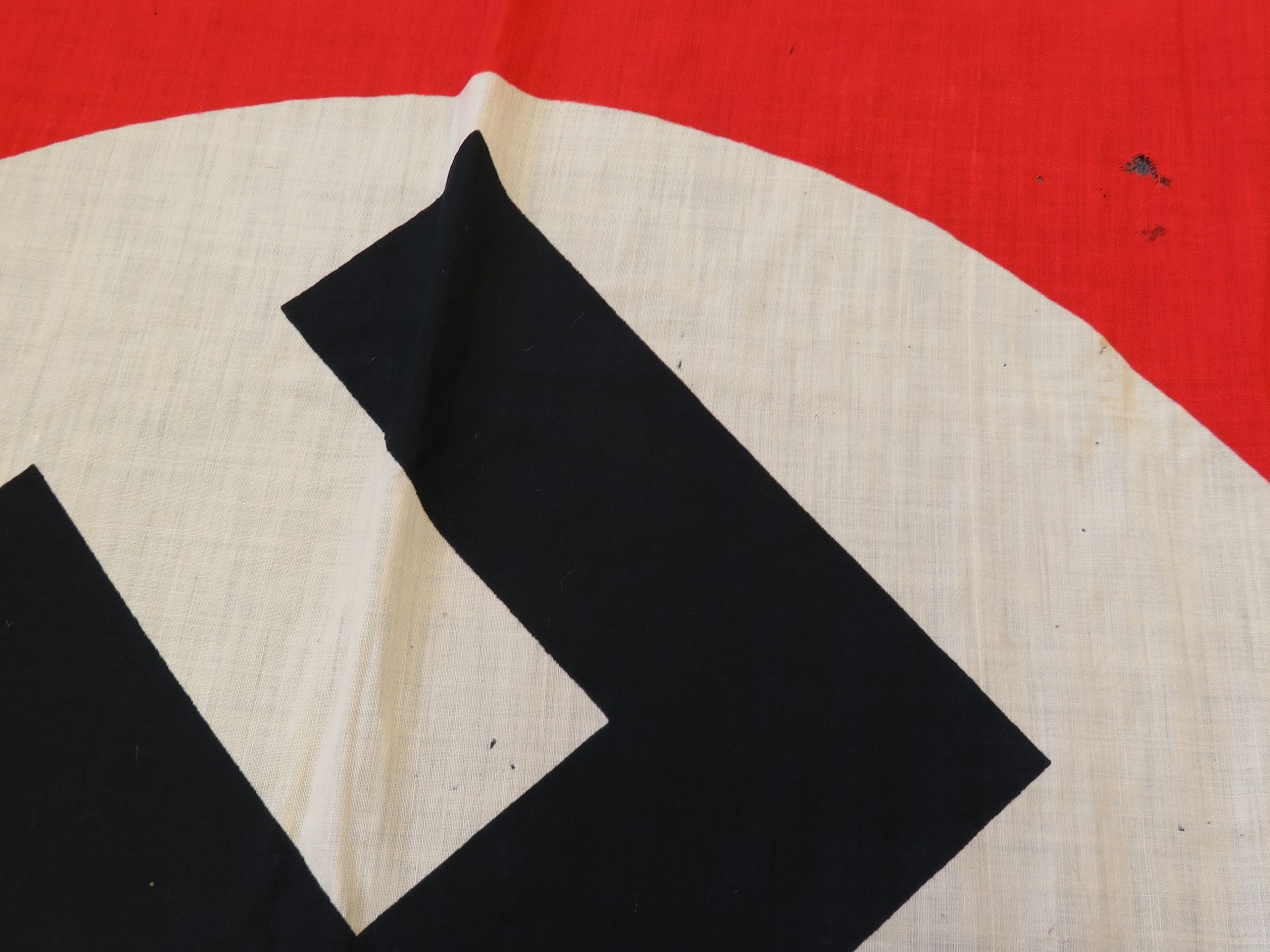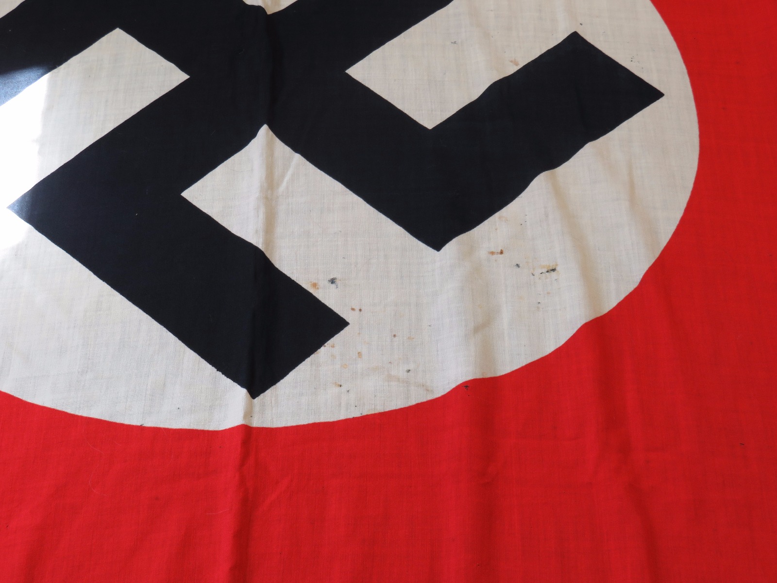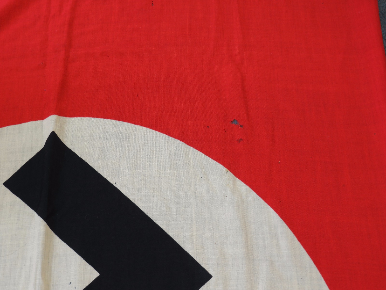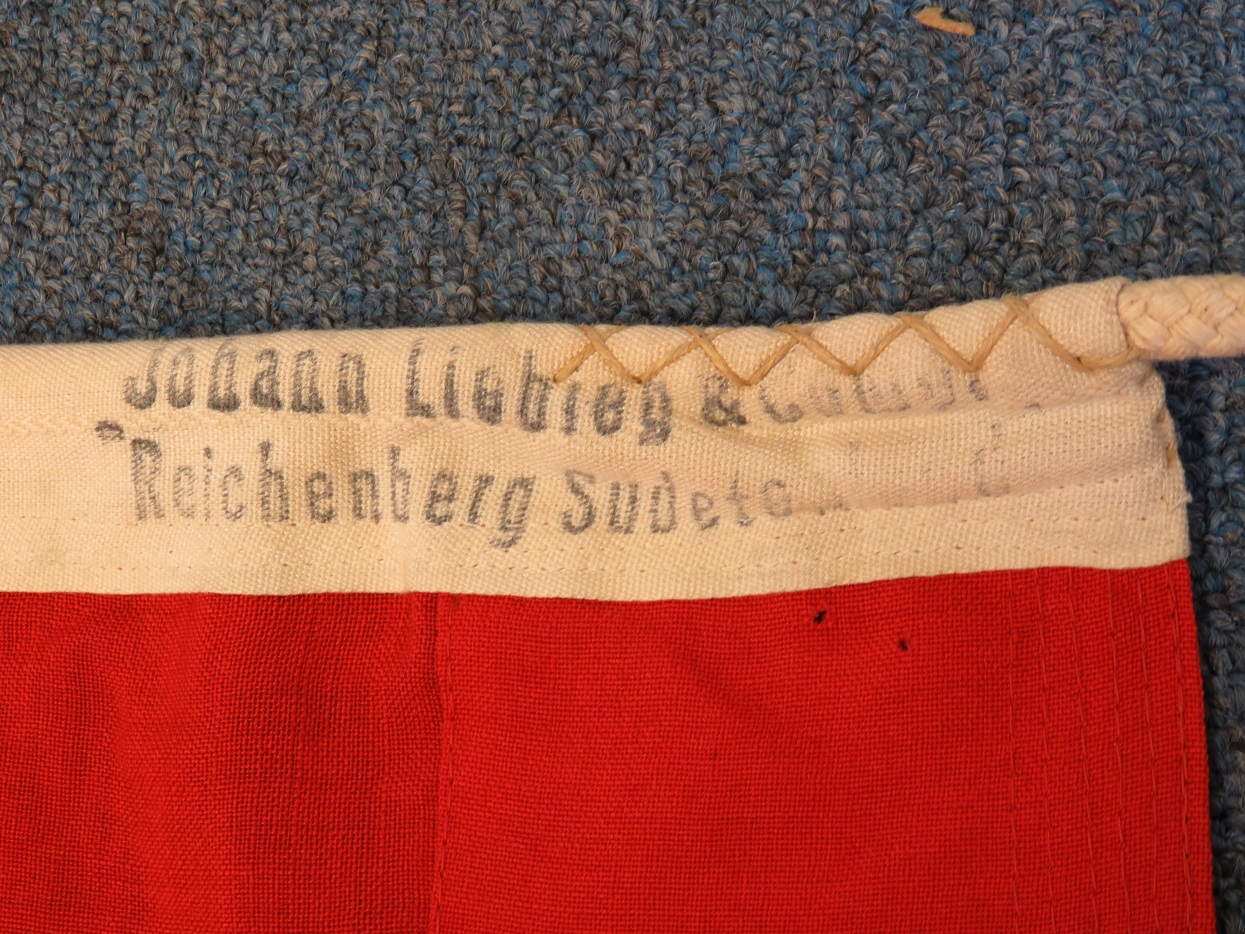 7/12/17 – This is an original Kriegsmarine Banner Flag. The flag is a large German Navy variation with all original threading and ink stamps. The top of the banner is ink stamped with a Kriegsmarine eagle/M and “Gosch 150 x 250”. In inches, this banner is 98 x 57.5. The top of the banner is also ink stamped by the maker “Johann Liebieg & C…”. There is some wear on the flag. Various small holes are normal due to aging and improper storage. There is some minor staining near the nazi emblem as well. Please see photos. Guaranteed original !