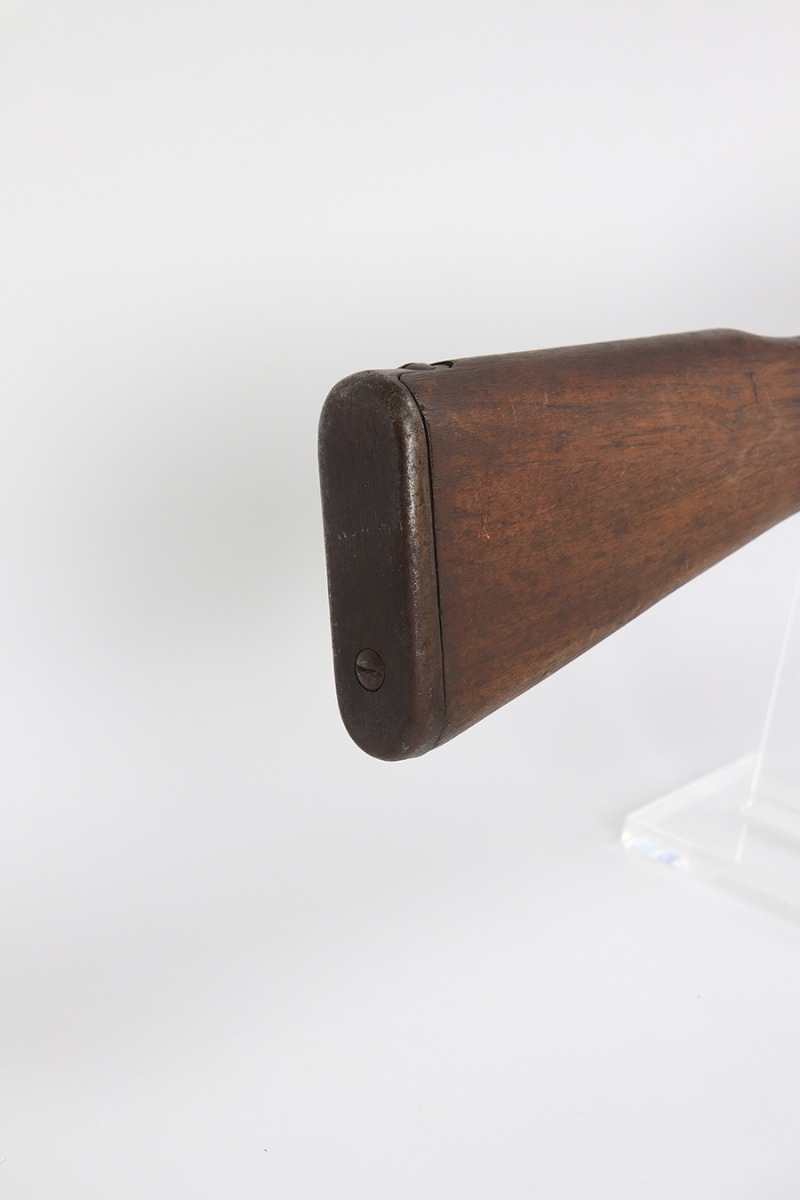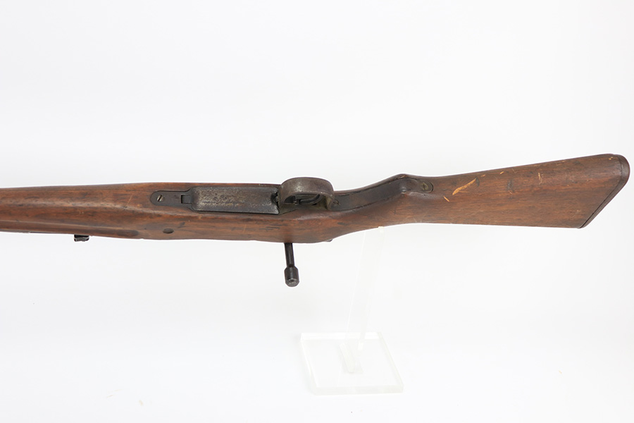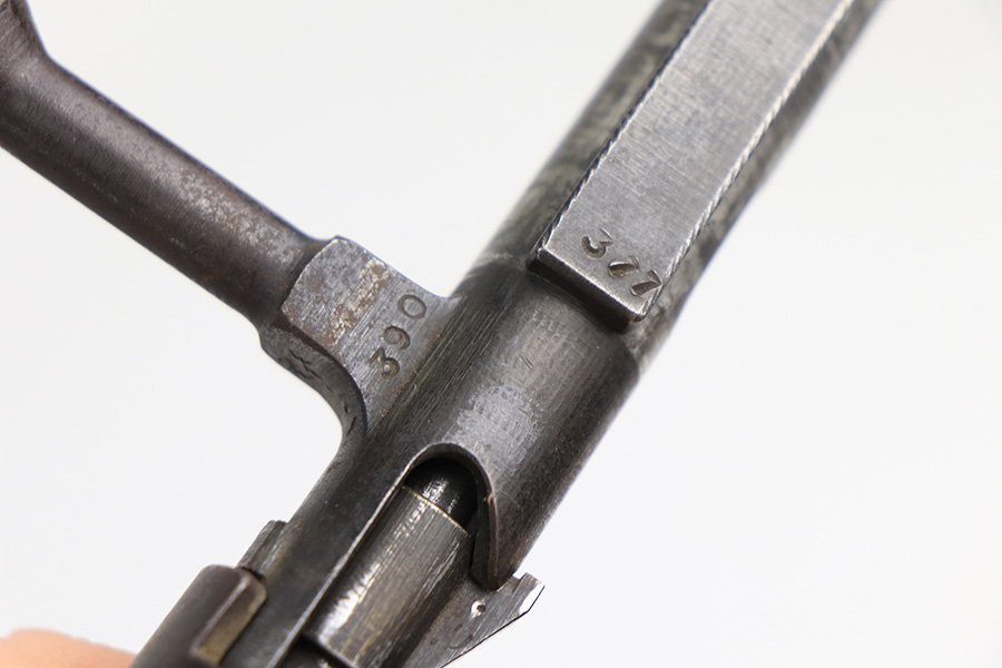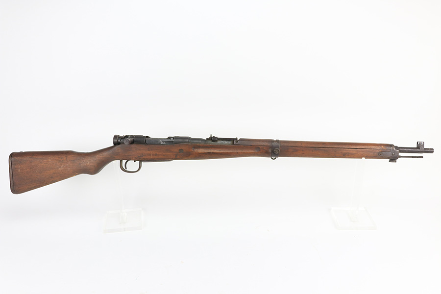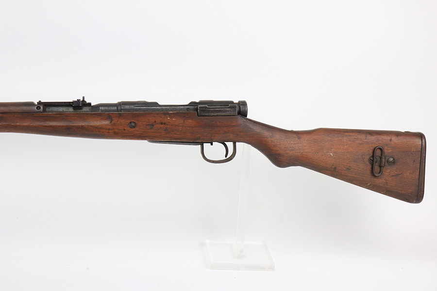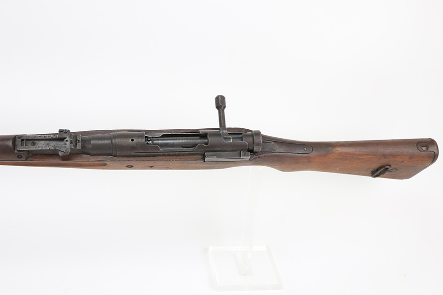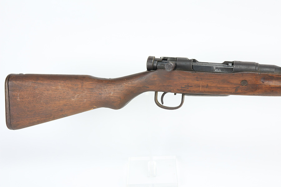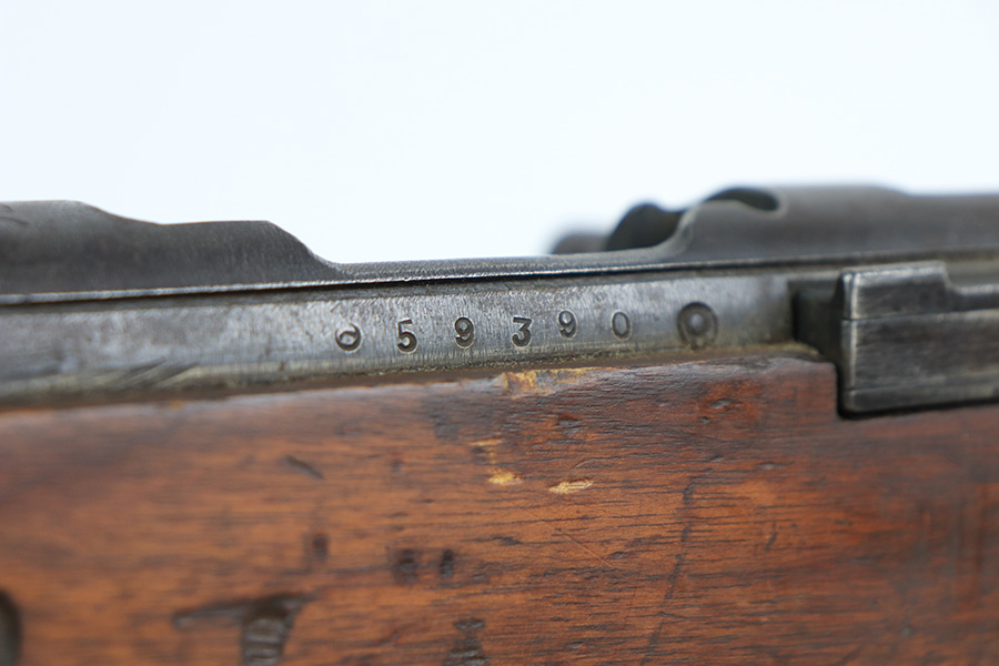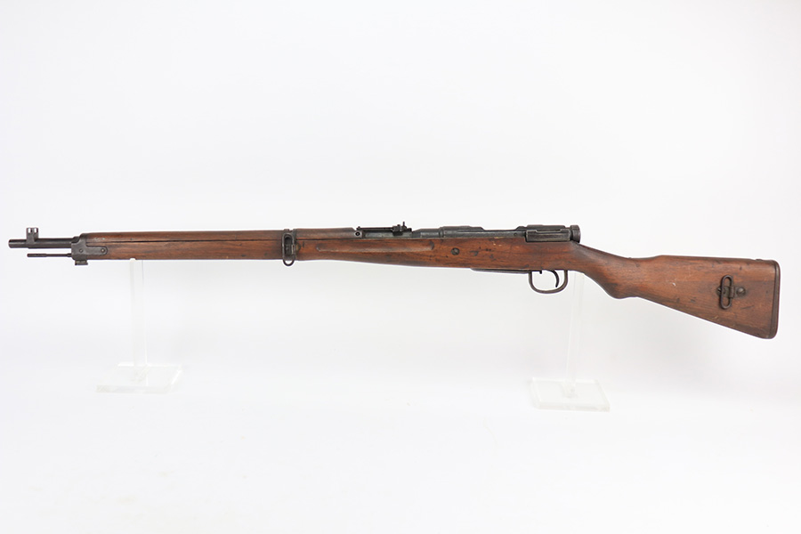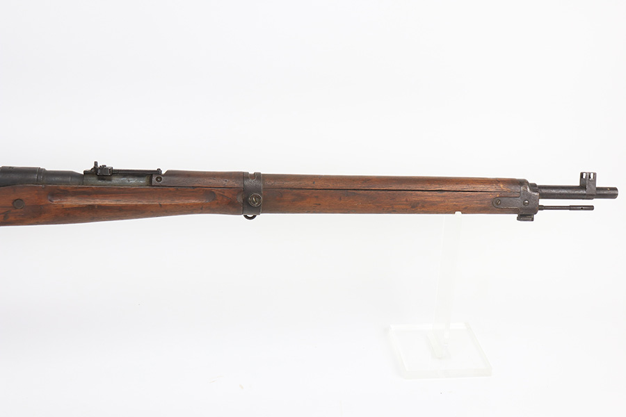 2/28/22 – This is a very nice example of a “last-ditch” Arisaka Type 99 rifle issued to the Japanese military at the very end of WW2. The gun is all matching except for the side rail on the bolt. Unfortunately, the original Imperial mum stamp on the receiver has been ground. Comes with an original cleaning rod. Overall, there is very little actual finish loss. However, there is light brown patina and spotty oxidation covering all of the metal parts. The stock is very nice with only minor dings and scratches here and there. The bore is stone-mint.